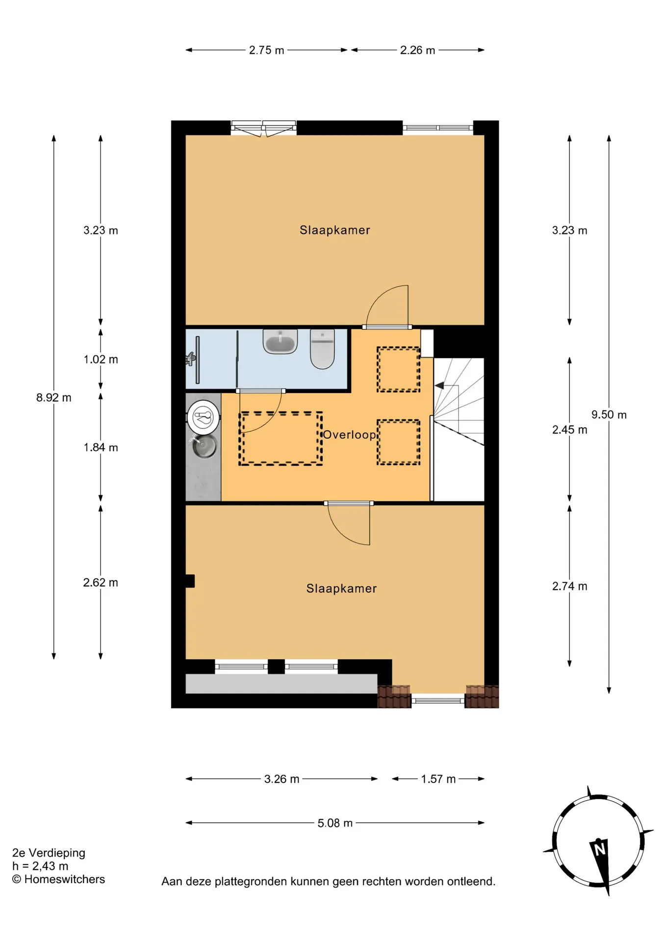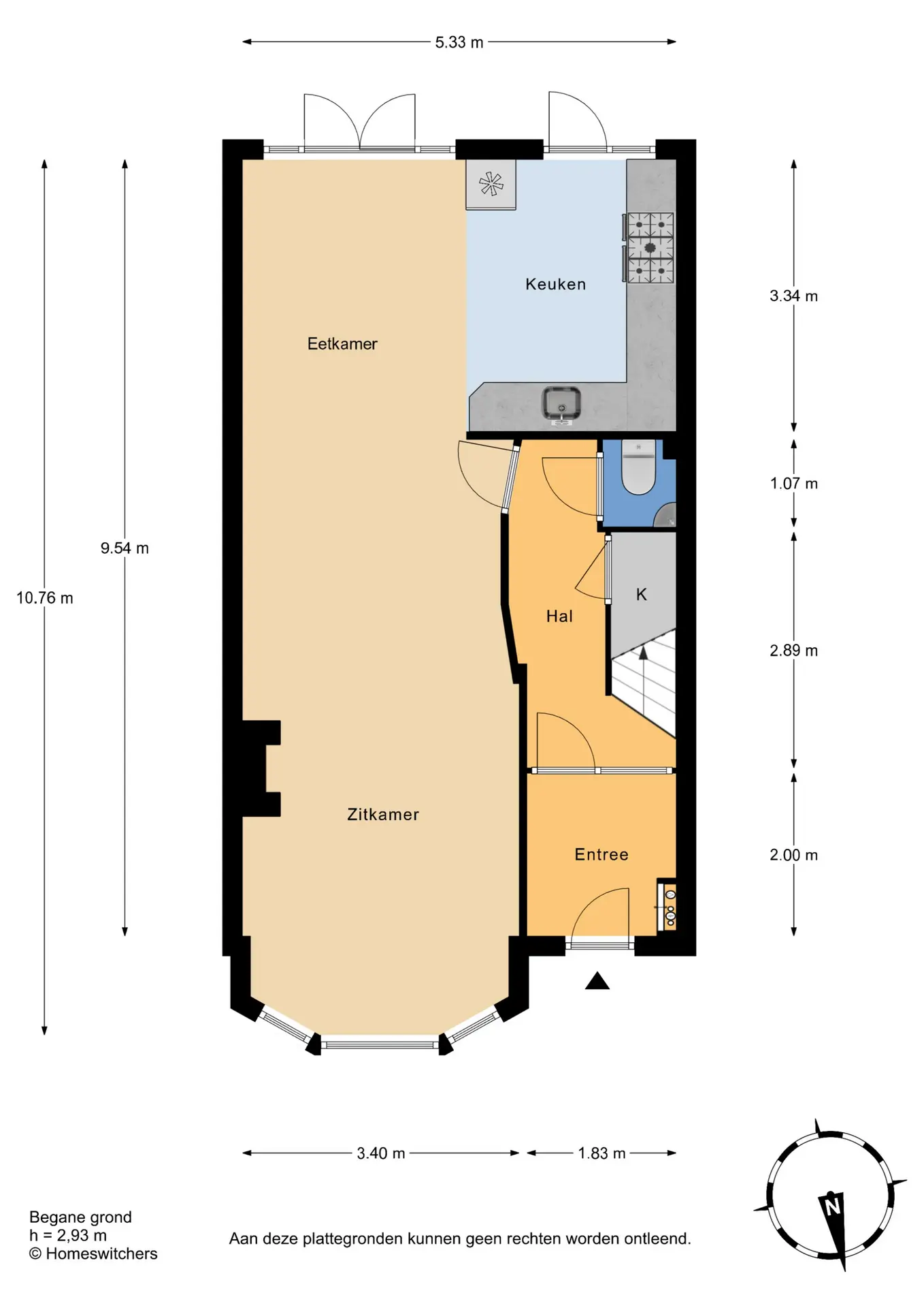 "Bovenstaande informatie is door ons met de hoogst nodige zorgvuldigheid samengesteld. Door ons wordt echter geen enkele aansprakelijkheid aanvaard voor enige onvolledigheid, onjuistheid of anderszins, dan wel de gevolgen daarvan. Alle opgegeven maten en oppervlakten zijn indicatief. De woning is gemeten met gebruikmaking van de Meetinstructie, die is gebaseerd op de normen zoals vastgelegd in NEN 2580. De Meetinstructie is bedoeld om een meer eenduidige manier van meten toe te passen voor het geven van een indicatie van gebruiksoppervlakte. De Meetinstructie sluit verschillen in meetuitkomsten niet volledig uit, door bijvoorbeeld interpretatieverschillen, afrondingen of beperkingen bij het uitvoeren van de meting. Hoewel wij de woning zorgvuldig hebben opgemeten, wordt noch door ons kantoor, noch door de verkoper enige aansprakelijkheid aanvaard voor afwijkingen in de opgegeven maten. Koper wordt in de gelegenheid gesteld om de opgegeven maten te (laten) controleren”.