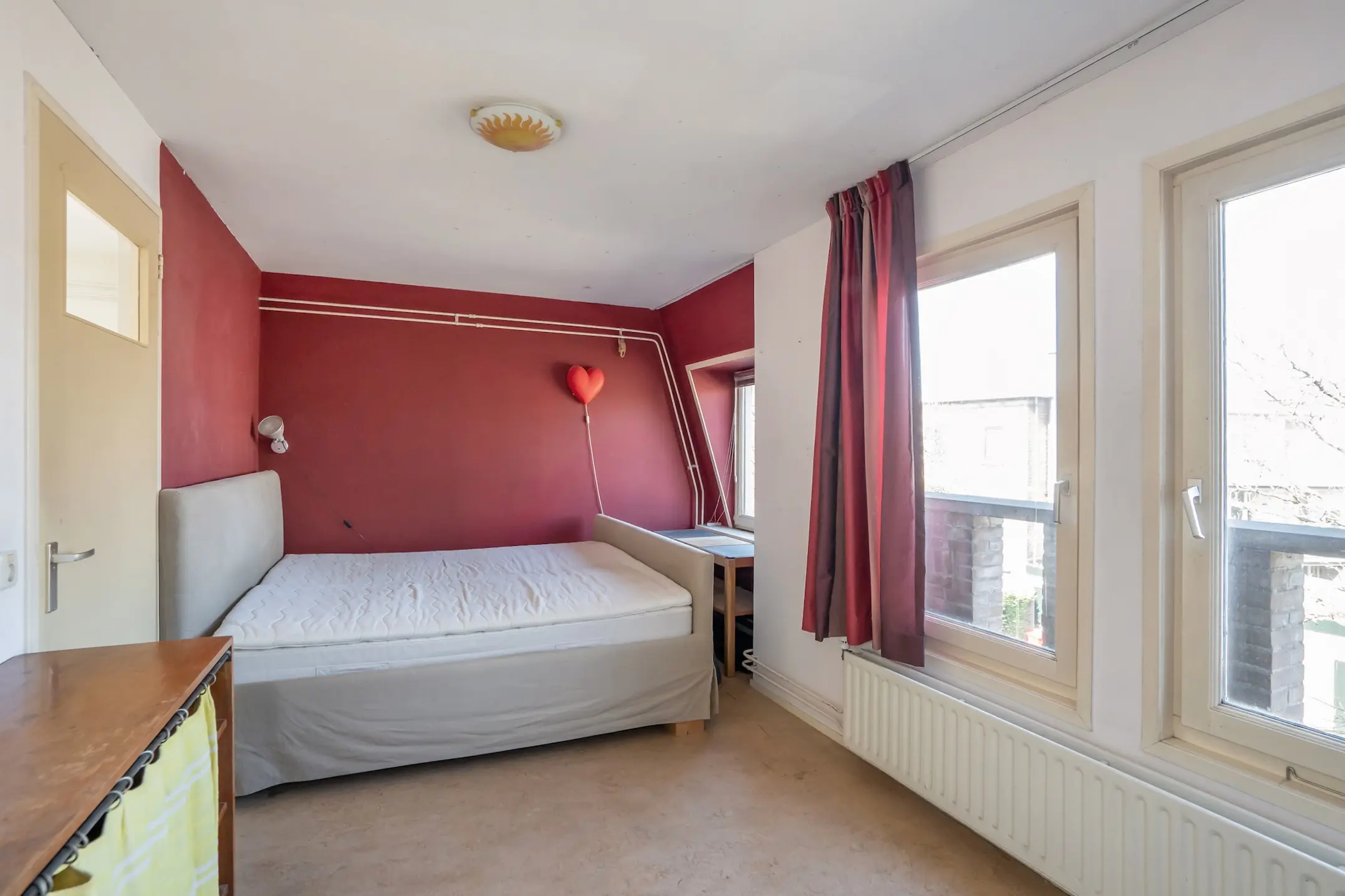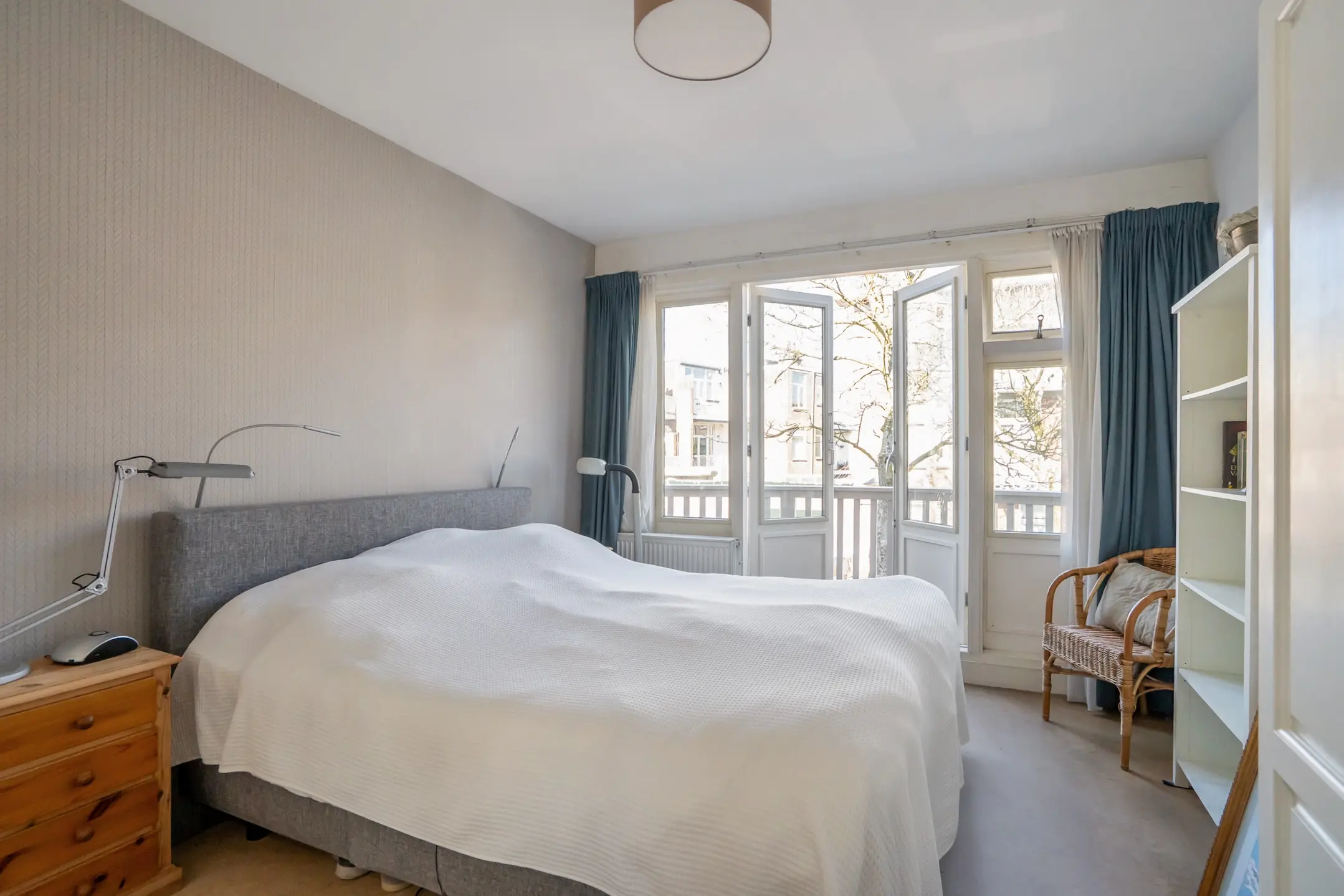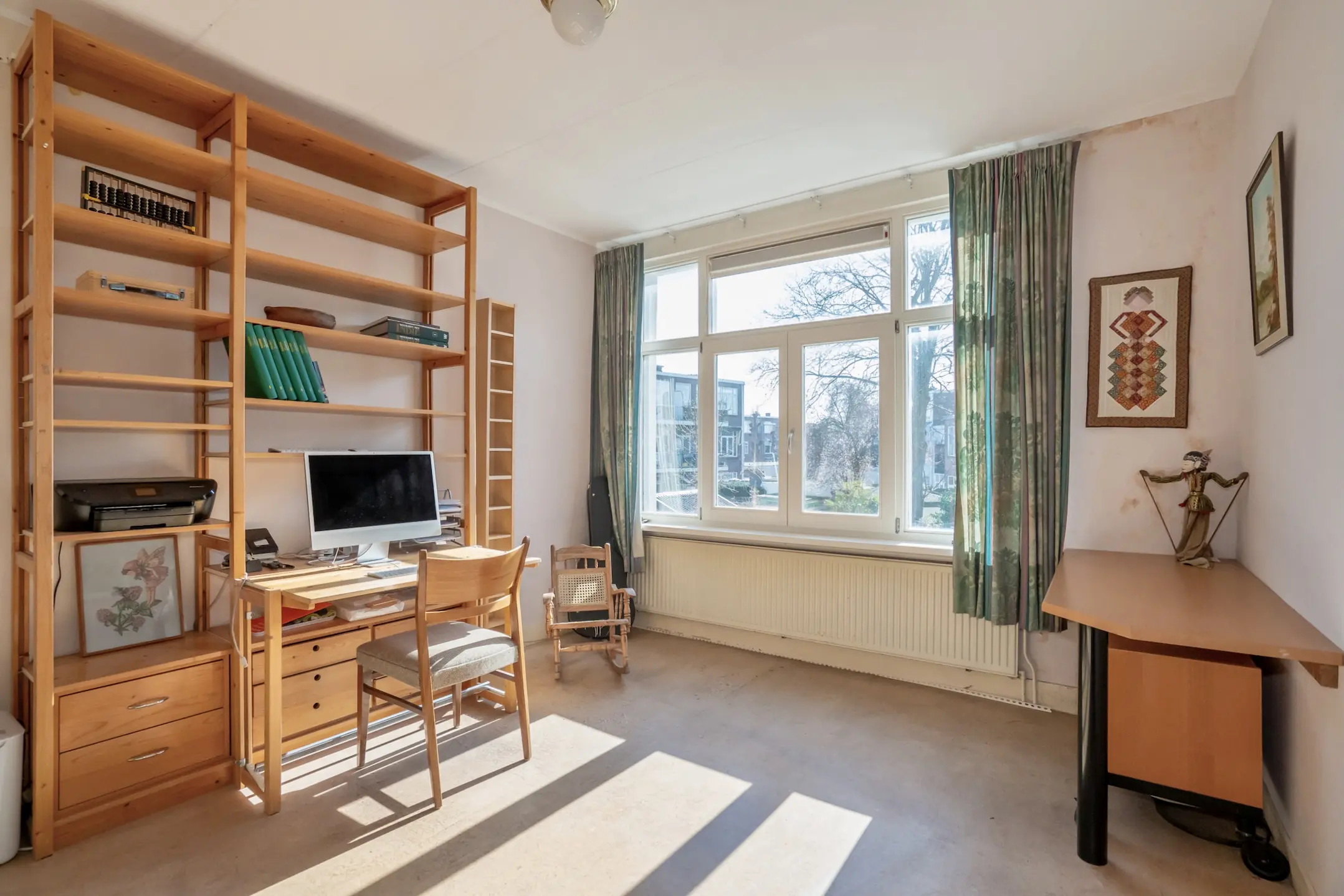 Aan de voorzijde vindt u een ruime slaapkamer met openslaande deuren naar het balkon, gelegen op het noorden en met uitzicht over de straat. Daarnaast is er nog een derde kamer op deze verdieping welke goed te gebruiken is als studeer en/of kastenkamer.