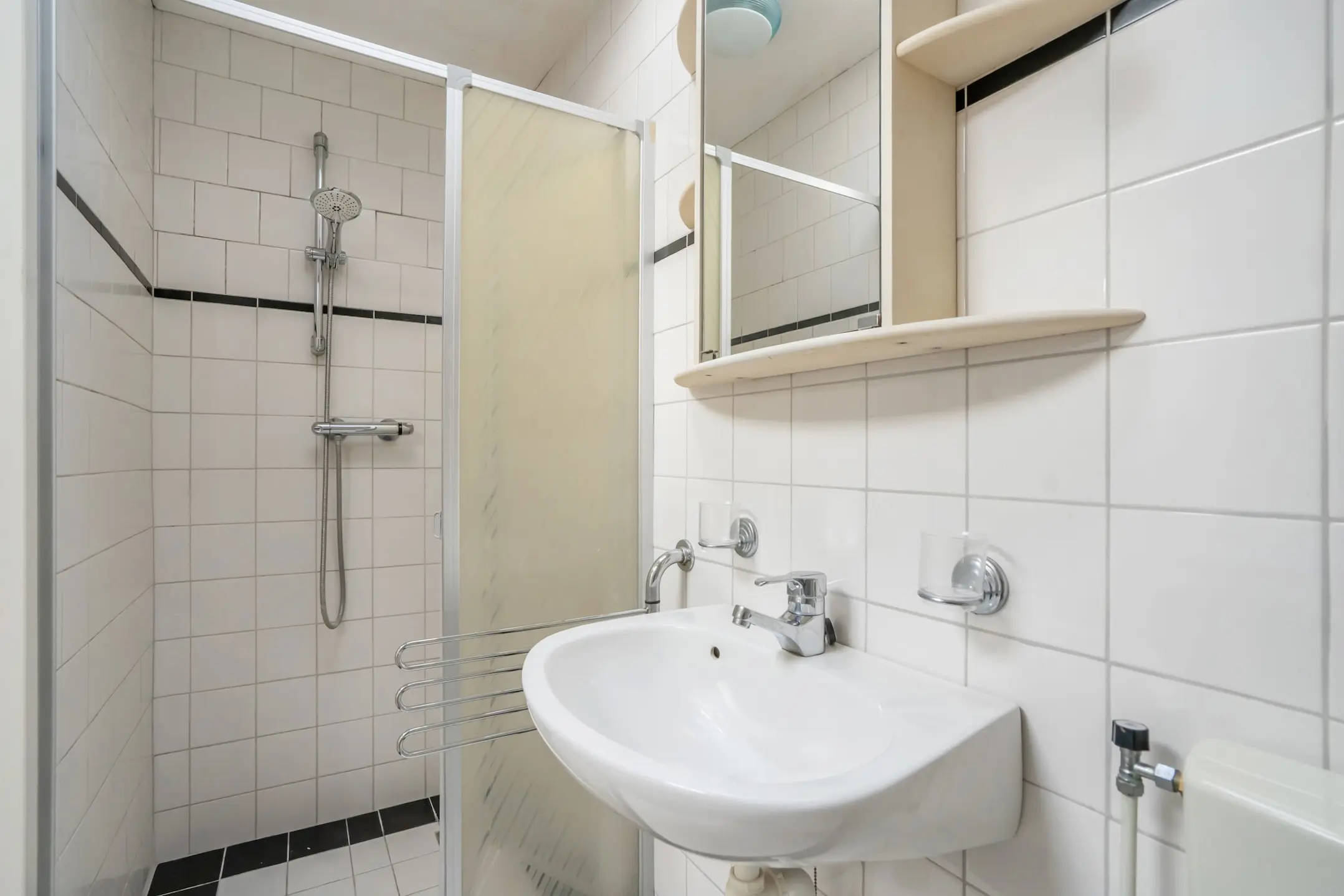 Via de trap bereikt u de eerste verdieping. De overloop beschikt over een vaste kast met daarin de cv-ketel (Remeha Avanta, 2009). Aan de achterzijde bevindt zich de moderne badkamer (2024) met douche, toilet en dubbel wastafelmeubel. Ook ligt hier een ruime slaapkamer met uitzicht over de tuin. Centraal op deze verdieping is een praktische wasruimte/berging gesitueerd.