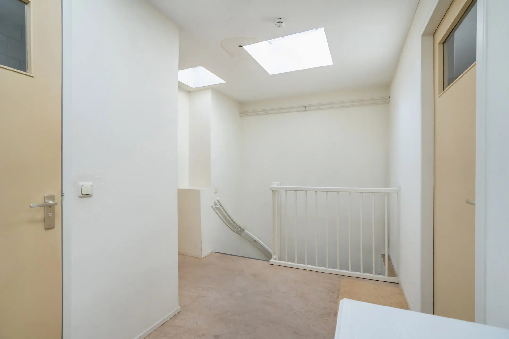 De tweede verdieping verrast met een royale en lichte overloop dankzij de aanwezige daklichten. Hier is een keukenblok geplaatst, wat deze verdieping extra mogelijkheden biedt, bijvoorbeeld voor inwonende kinderen of gasten. Tevens bevindt zich hier de tweede badkamer met douche, wastafel en toilet.