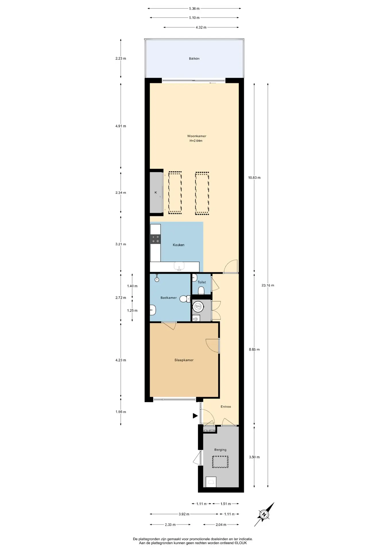 Bovenstaande informatie is door ons met de uiterste zorgvuldigheid samengesteld. Wij aanvaarden geen enkele aansprakelijkheid voor enige onvolledigheid, onjuistheid of anderszins, dan wel de gevolgen daarvan. Alle opgegeven maten en oppervlakten zijn indicatief. De woning is gemeten met gebruikmaking van de Meetinstructie, die is gebaseerd op de normen zoals vastgelegd in NEN 2580. De Meetinstructie is bedoeld om een meer eenduidige manier van meten toe te passen voor het geven van een indicatie van gebruiksoppervlakte. De Meetinstructie sluit verschillen in meetuitkomsten niet volledig uit, door bijvoorbeeld interpretatieverschillen, afrondingen of beperkingen bij het uitvoeren van de meting. Hoewel wij de woning zorgvuldig hebben opgemeten, wordt noch door ons, noch door de verkoper enige aansprakelijkheid aanvaard voor afwijkingen in de opgegeven maten. Koper wordt in de gelegenheid gesteld om de opgegeven maten te (laten) controleren.