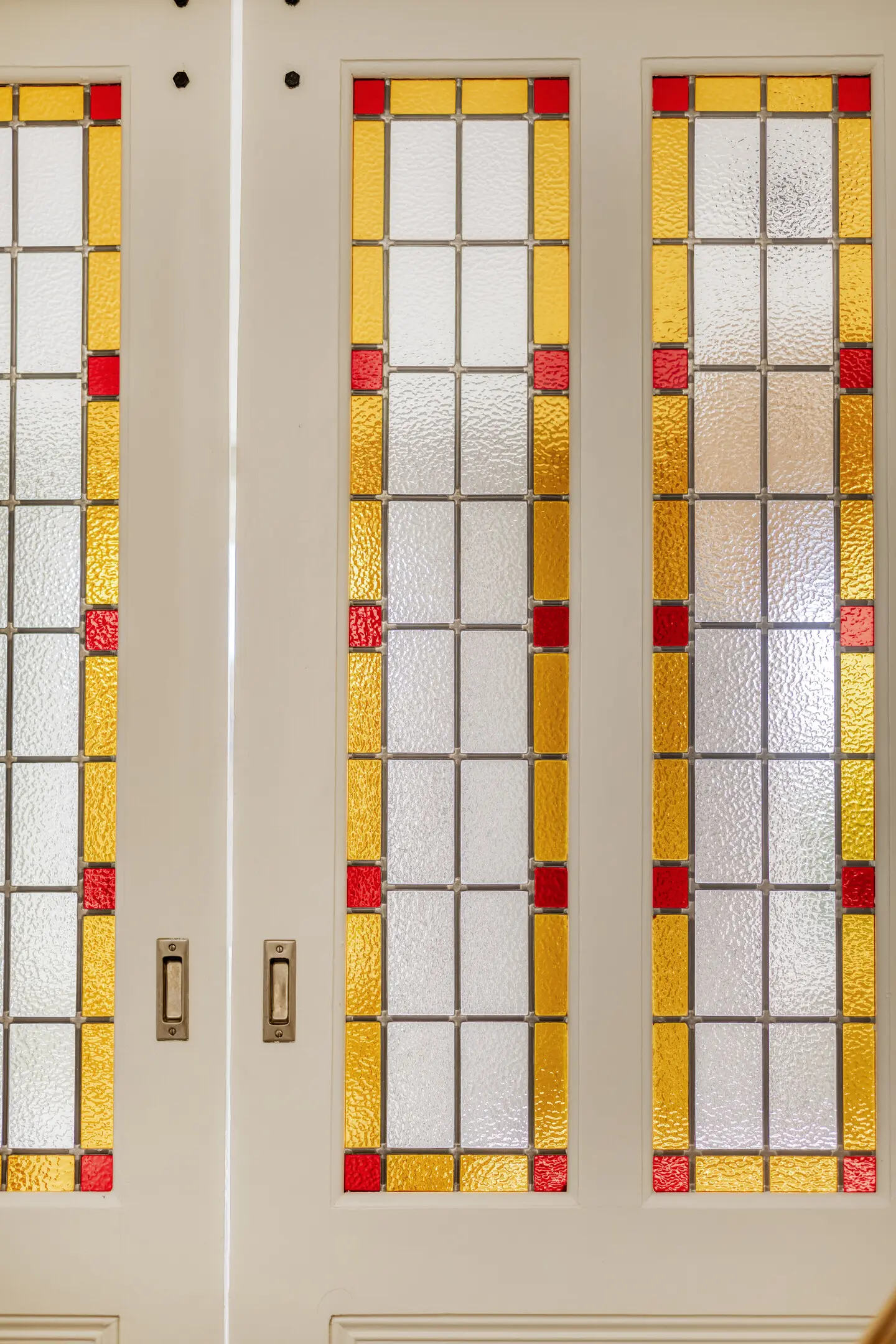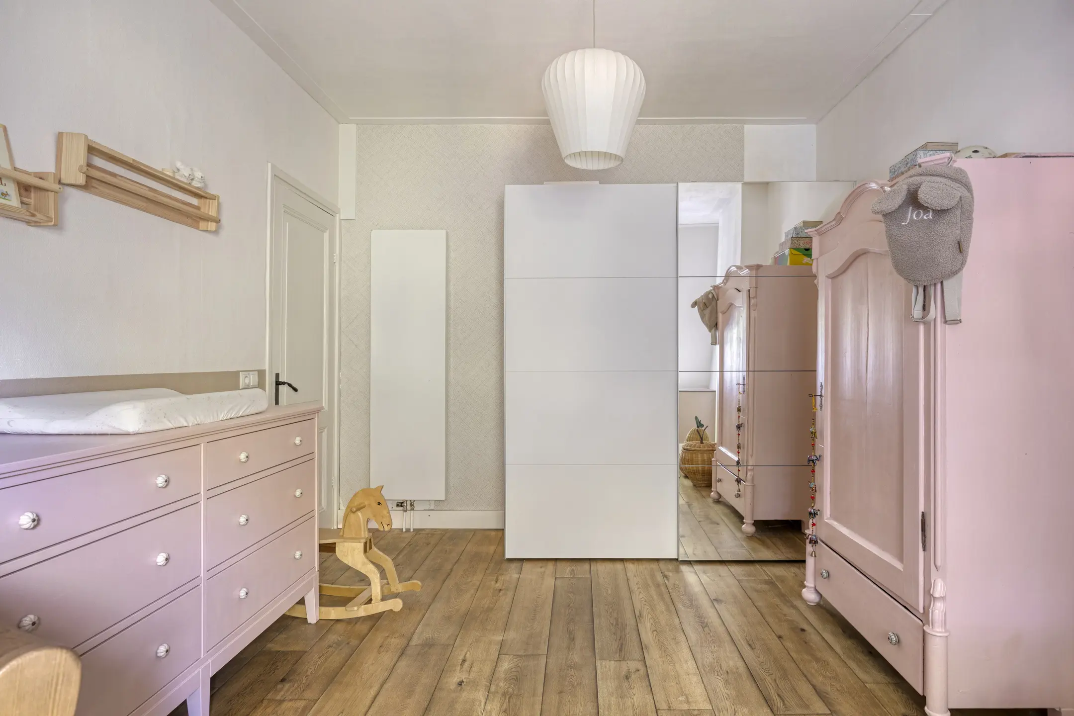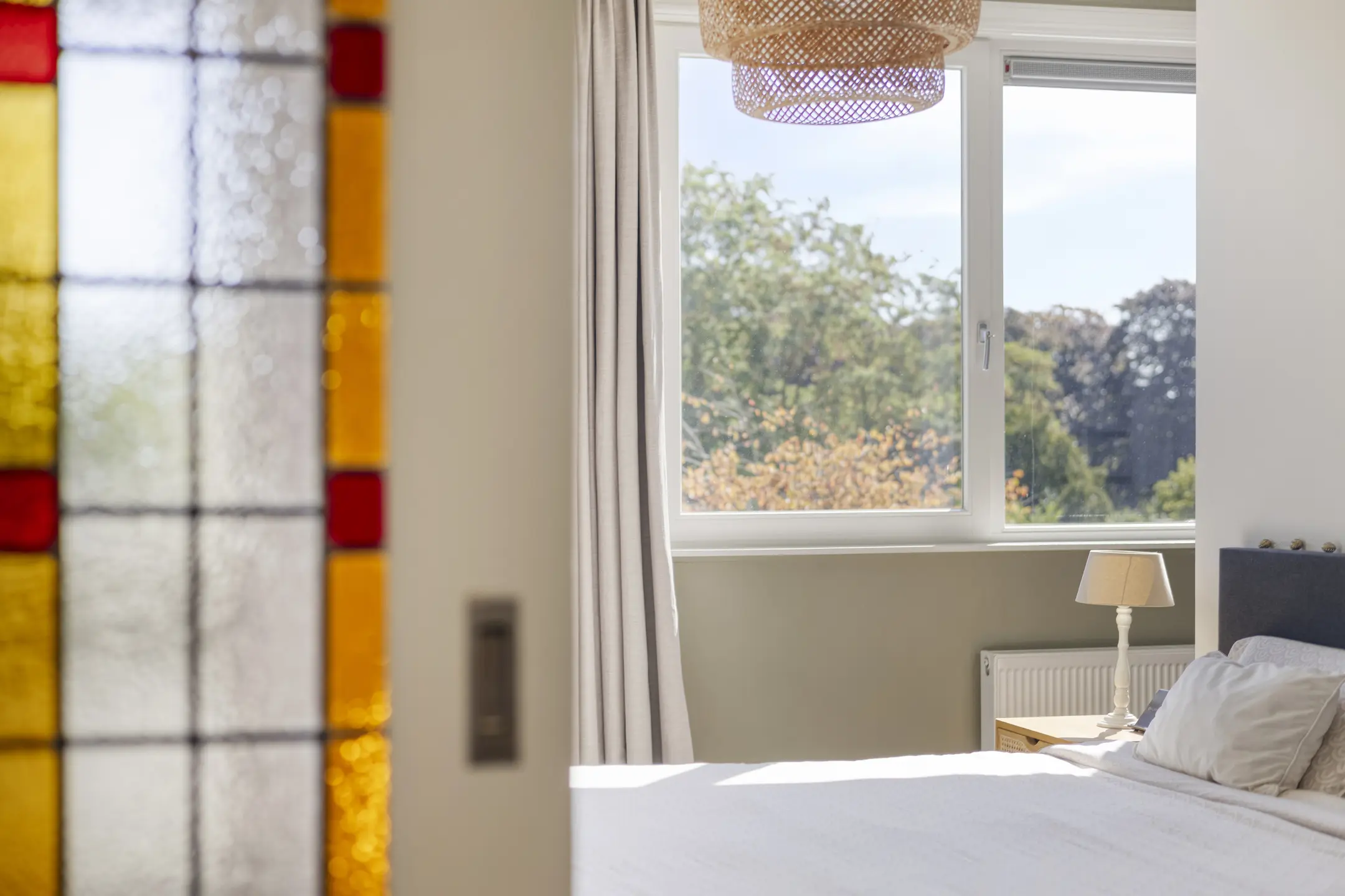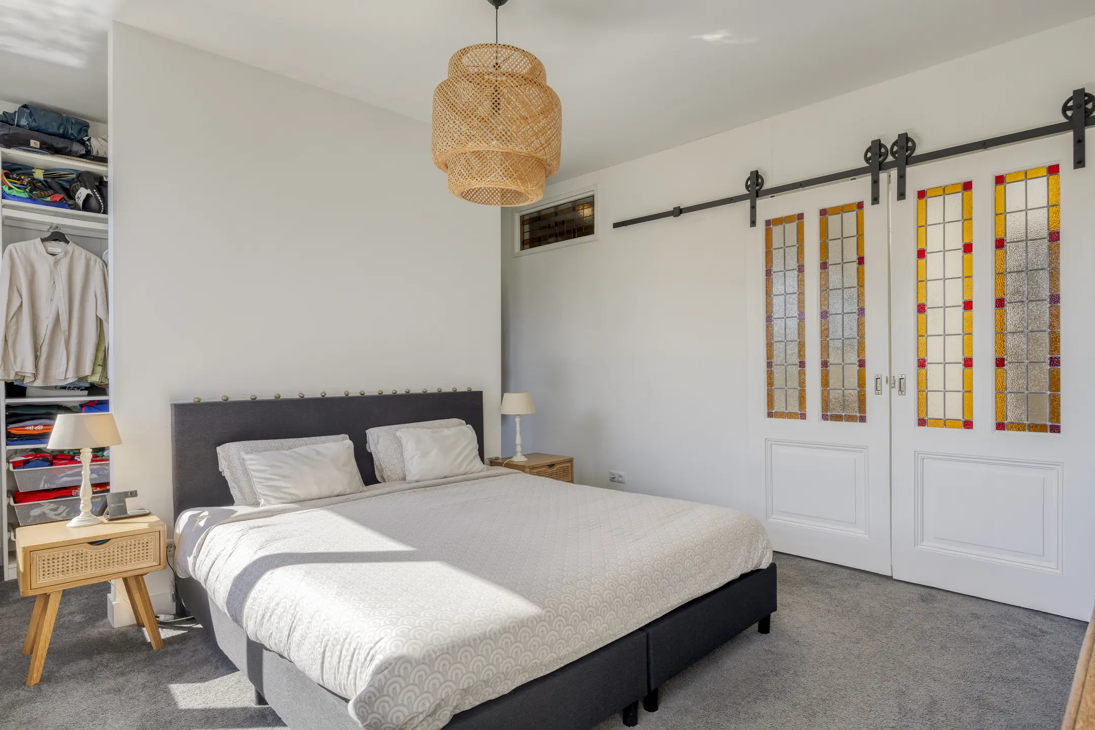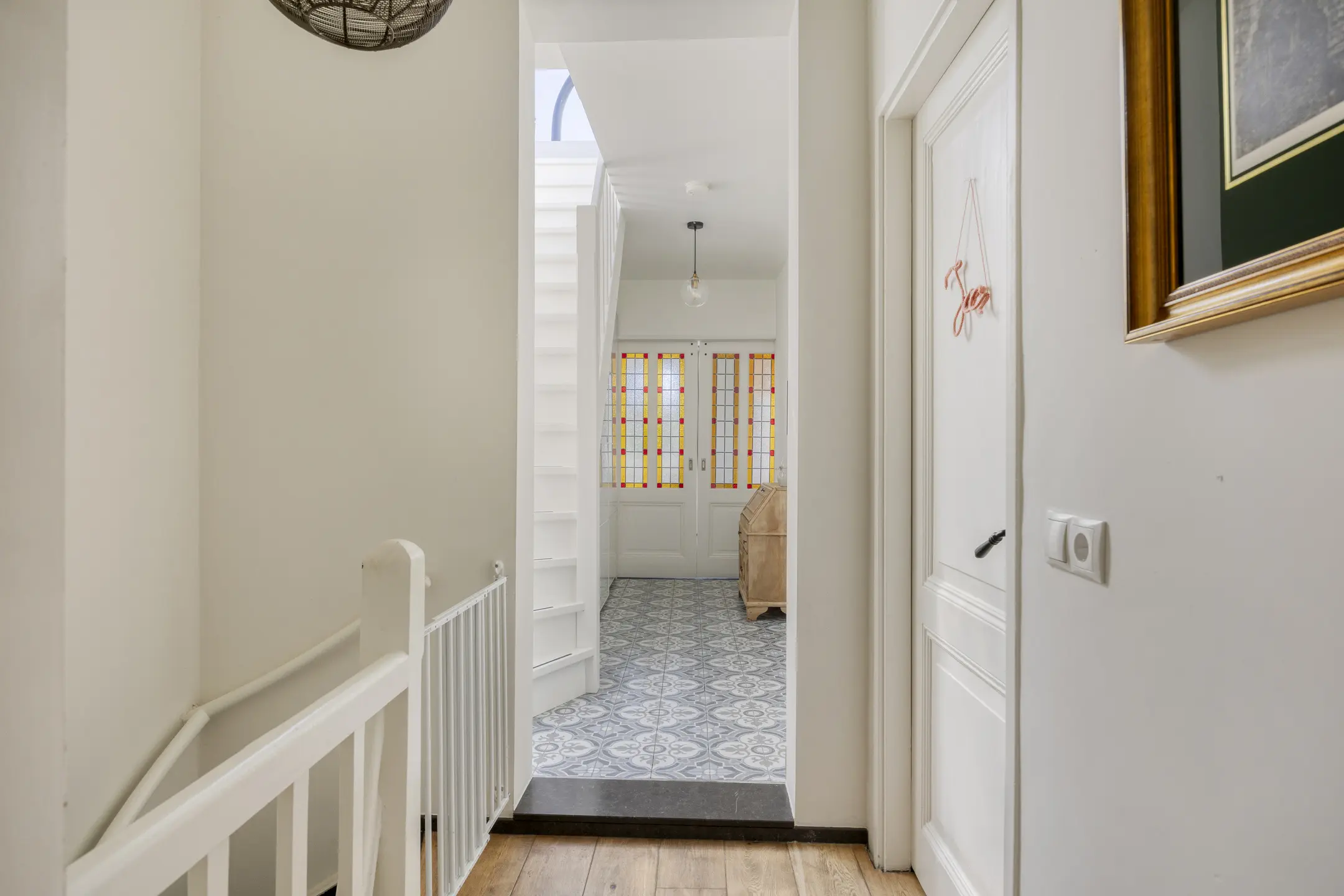 De gehele verdieping is voorzien van een prachtige visgraat PVC-vloer en authentieke paneeldeuren met glas-in-lood.