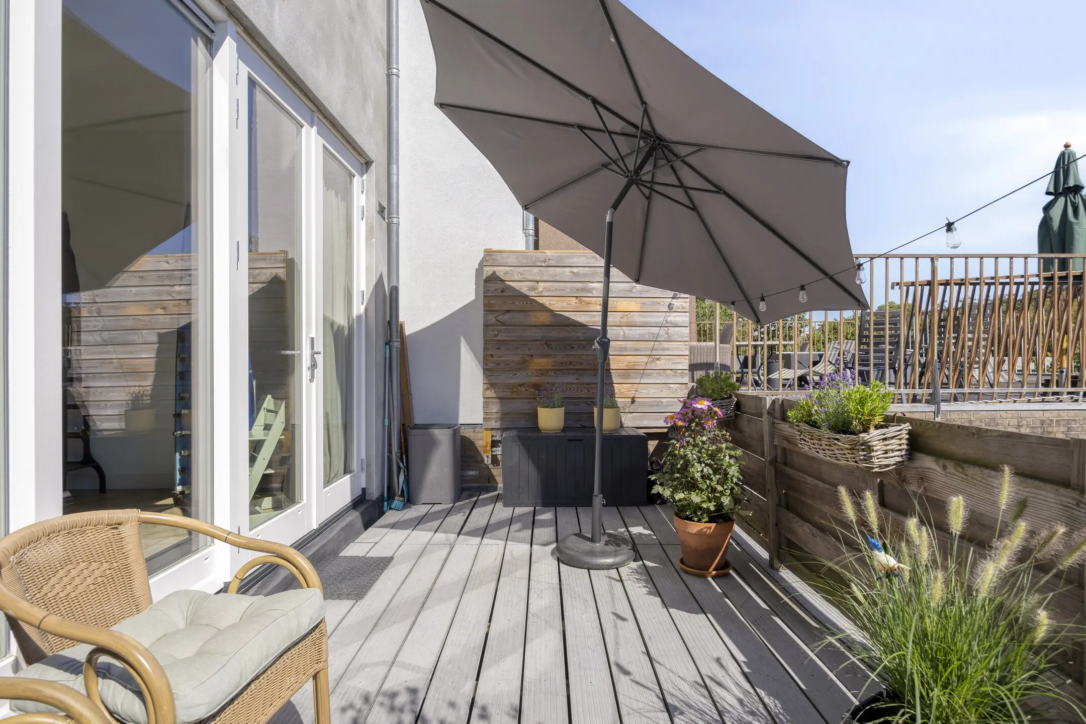 - Dakterras van ca. 47 m2, geplaatst in 2020 tevens tweede terras aan de keuken gelegen van ca.15 m2;