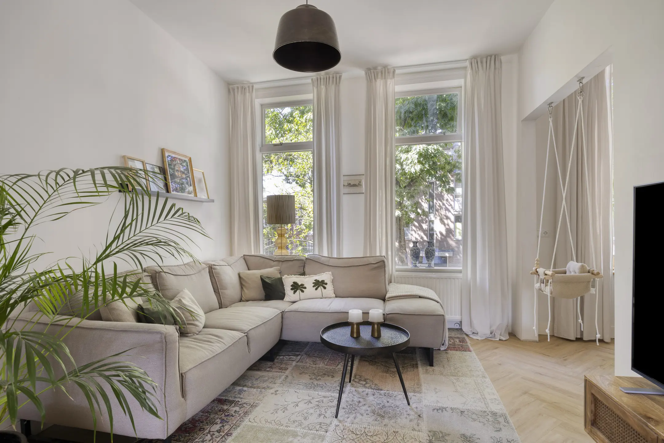 Hier geniet je niet alleen van een sfeervolle woon-/eetkamer en een luxe woonkeuken, maar ook van een indrukwekkend dakterras van maar liefst 47 m² met volop zon en een prachtig uitzicht over de stad. Met energielabel A, hoogwaardige afwerking en karakteristieke details zoals paneeldeuren met glas-in-lood, is dit een unieke kans om royaal en duurzaam te wonen in een van de meest geliefde buurten van Nijmegen.
