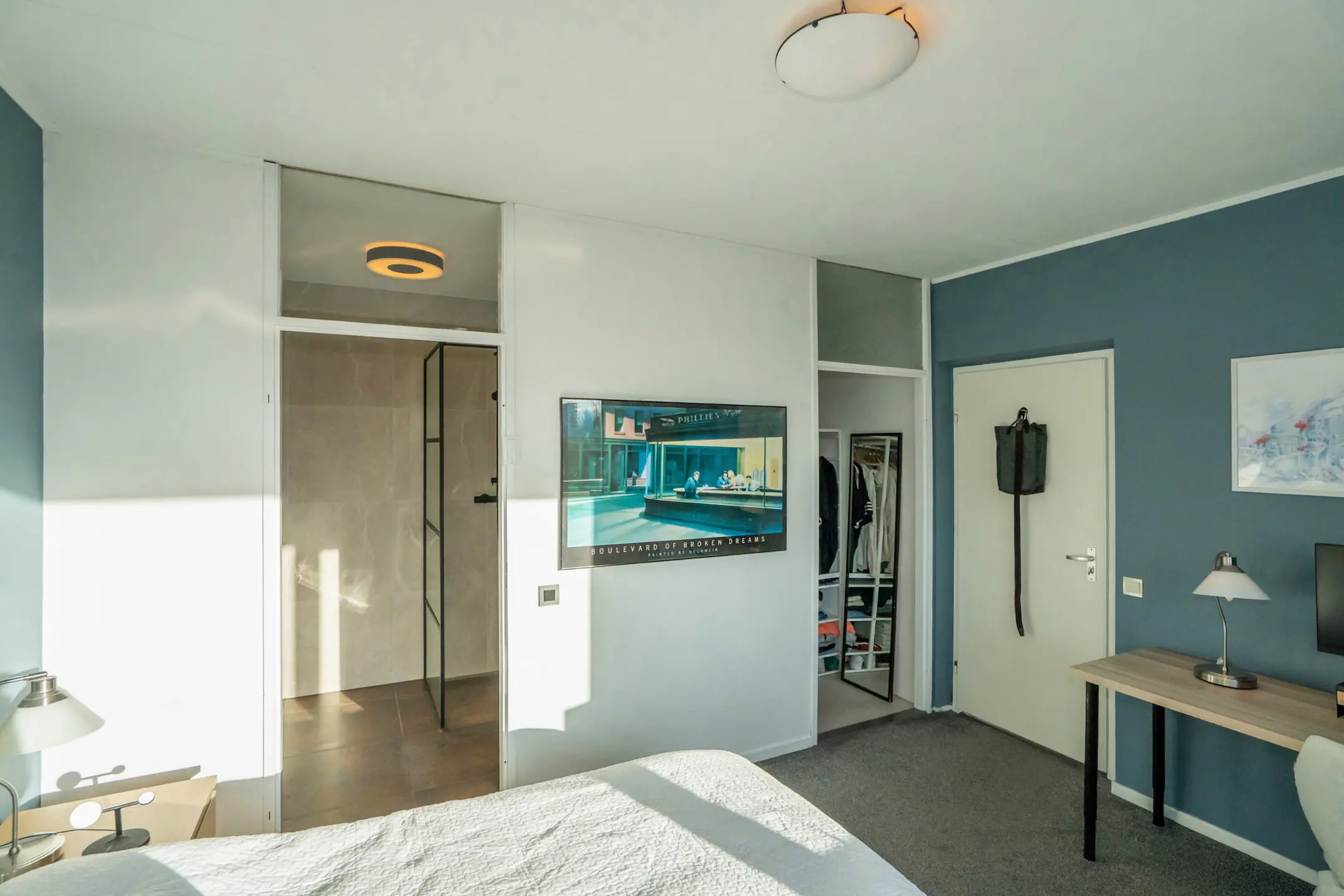De grote slaapkamer beschikt over een royale berging met kastenwand, opstelplaats voor de wasmachine en een 80-liter boiler (2019).