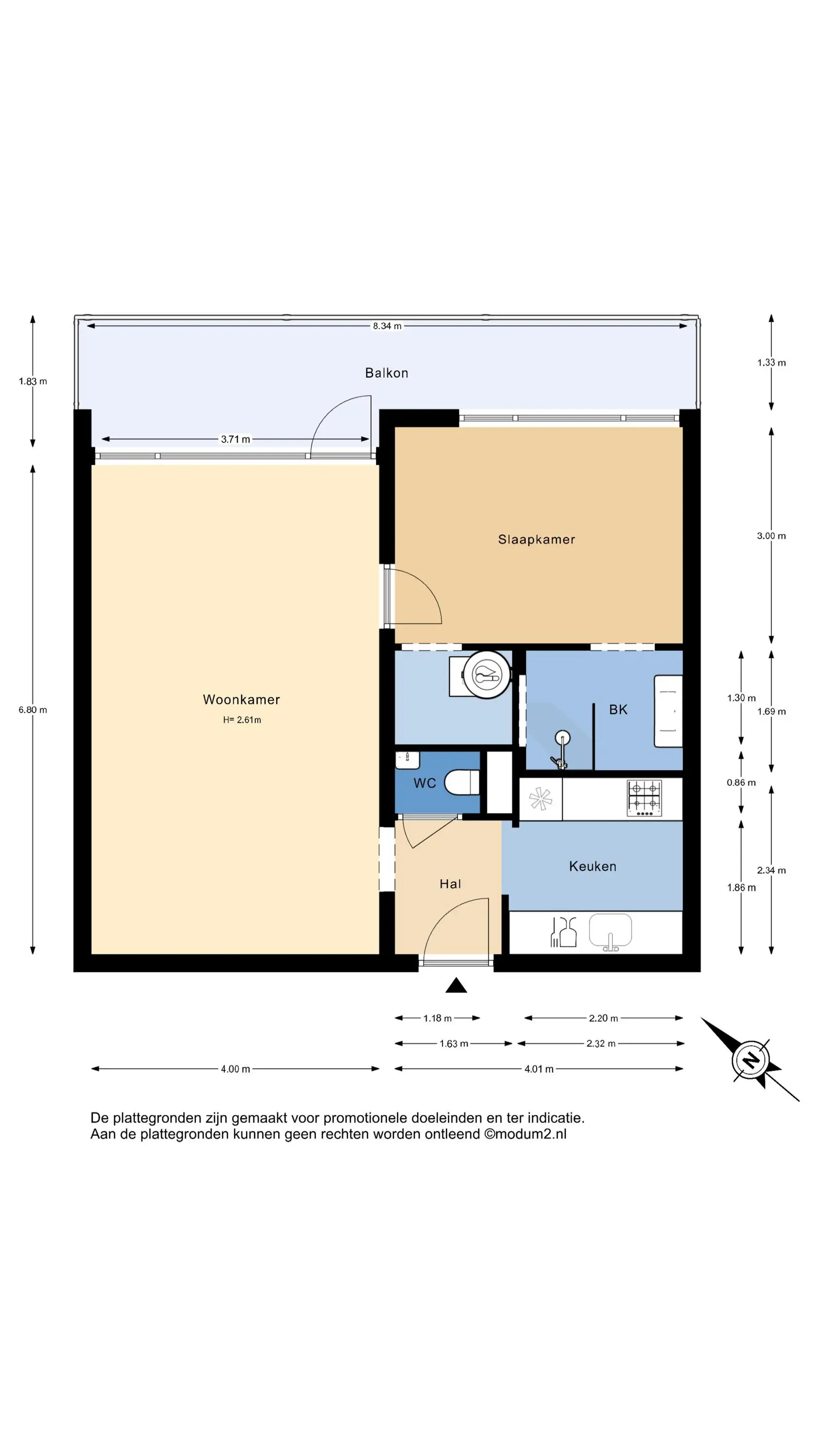 Bovenstaande informatie is door ons met de hoogst nodige zorgvuldigheid samengesteld. Door ons wordt echter geen enkele aansprakelijkheid aanvaard voor enige onvolledigheid, onjuistheid of anderszins, dan wel de gevolgen daarvan. Alle opgegeven maten en oppervlakten zijn indicatief. De woning is gemeten met gebruikmaking van de Meetinstructie, die is gebaseerd op de normen zoals vastgelegd in NEN 2580. De Meetinstructie is bedoeld om een meer eenduidige manier van meten toe te passen voor het geven van een indicatie van gebruiksoppervlakte. De Meetinstructie sluit verschillen in meetuitkomsten niet volledig uit, door bijvoorbeeld interpretatieverschillen, afrondingen of beperkingen bij het uitvoeren van de meting. Hoewel wij de woning zorgvuldig hebben opgemeten, wordt noch door ons kantoor, noch door de verkoper enige aansprakelijkheid aanvaard voor afwijkingen in de opgegeven maten. Koper wordt in de gelegenheid gesteld om de opgegeven maten te (laten) controleren.