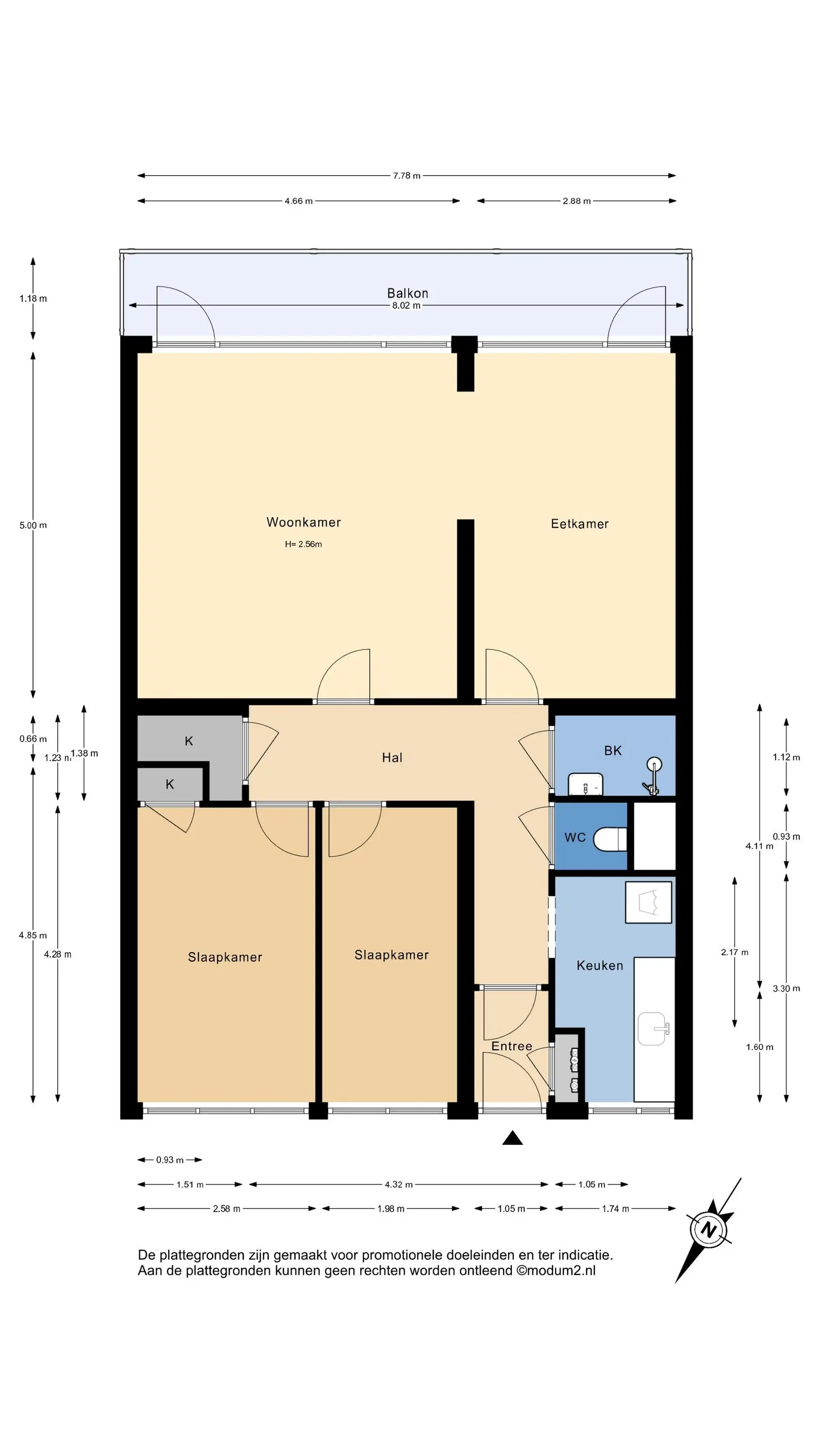 Bovenstaande informatie is door ons met de hoogst nodige zorgvuldigheid samengesteld. Door ons wordt echter geen enkele aansprakelijkheid aanvaard voor enige onvolledigheid, onjuistheid of anderszins, dan wel de gevolgen daarvan. Alle opgegeven maten en oppervlakten zijn indicatief. De woning is gemeten met gebruikmaking van de Meetinstructie, die is gebaseerd op de normen zoals vastgelegd in NEN 2580. De Meetinstructie is bedoeld om een meer eenduidige manier van meten toe te passen voor het geven van een indicatie van gebruiksoppervlakte. De Meetinstructie sluit verschillen in meetuitkomsten niet volledig uit, door bijvoorbeeld interpretatieverschillen, afrondingen of beperkingen bij het uitvoeren van de meting. Hoewel wij de woning zorgvuldig hebben opgemeten, wordt noch door ons kantoor, noch door de verkoper enige aansprakelijkheid aanvaard voor afwijkingen in de opgegeven maten. Koper wordt in de gelegenheid gesteld om de opgegeven maten te (laten) controleren.