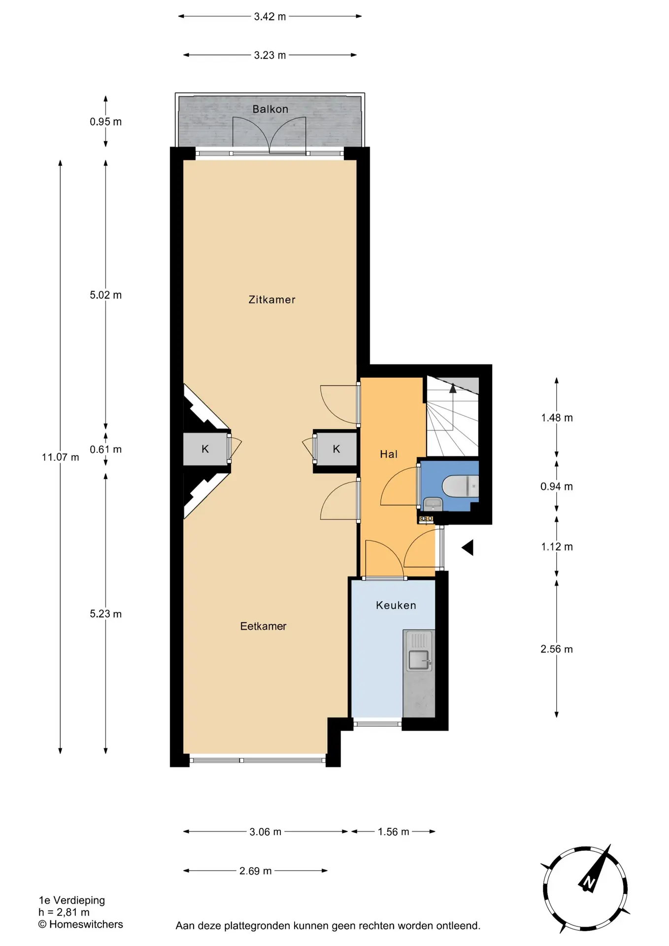 • Voorzijde eerste verdieping voorzien van dubbelglas, overige enkele beglazing