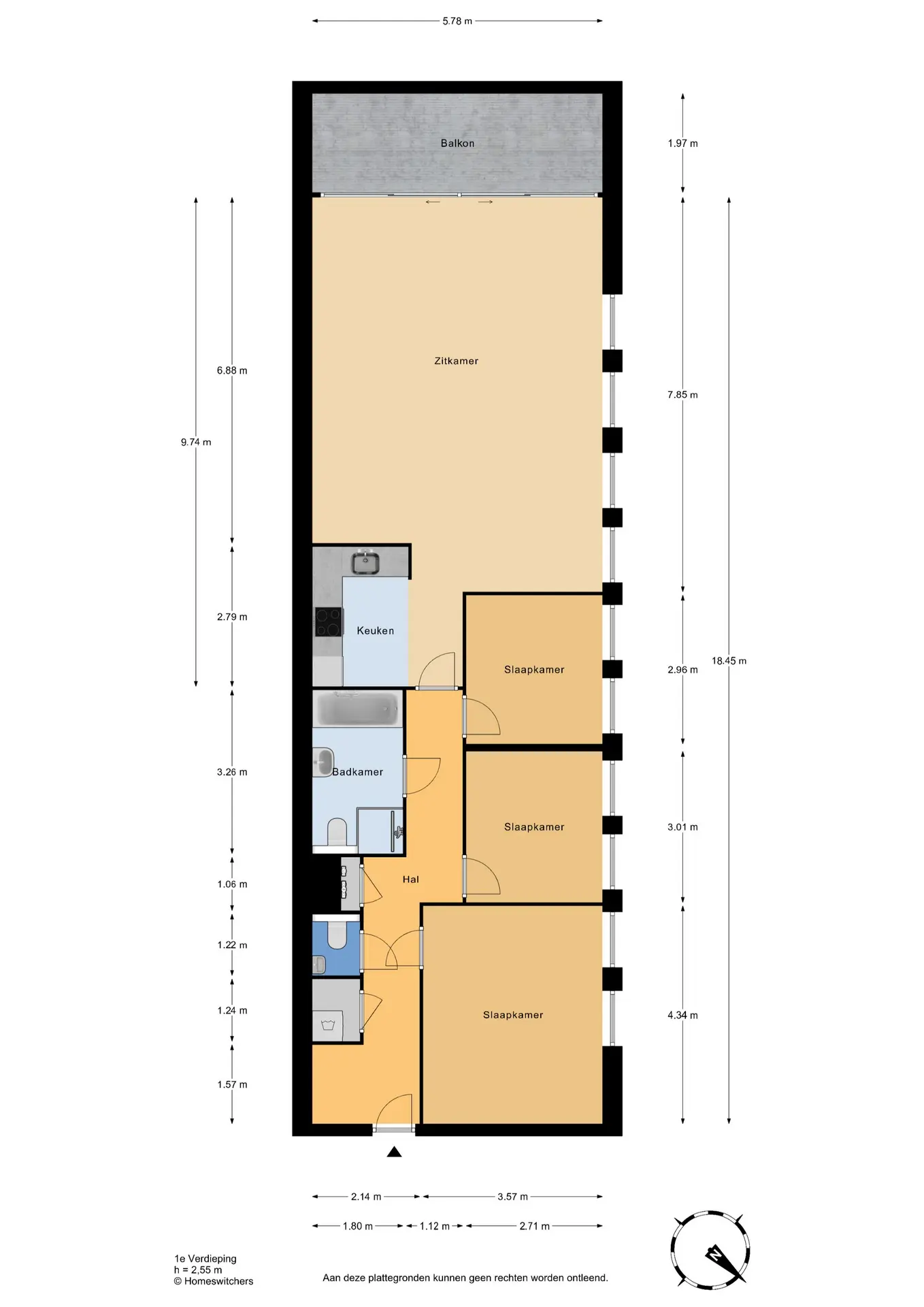 Bovenstaande informatie is door ons met de hoogst nodige zorgvuldigheid samengesteld. Door ons wordt echter geen enkele aansprakelijkheid aanvaard voor enige onvolledigheid, onjuistheid of anderszins, dan wel de gevolgen daarvan. Alle opgegeven maten en oppervlakten zijn indicatief. De woning is gemeten met gebruikmaking van de Meetinstructie, die is gebaseerd op de normen zoals vastgelegd in NEN 2580. De Meetinstructie is bedoeld om een meer eenduidige manier van meten toe te passen voor het geven van een indicatie van gebruiksoppervlakte. De Meetinstructie sluit verschillen in meetuitkomsten niet volledig uit, door bijvoorbeeld interpretatieverschillen, afrondingen of beperkingen bij het uitvoeren van de meting. Hoewel wij de woning zorgvuldig hebben opgemeten, wordt noch door ons kantoor, noch door de verkoper enige aansprakelijkheid aanvaard voor afwijkingen in de opgegeven maten. Koper wordt in de gelegenheid gesteld om de opgegeven maten te (laten) controleren.