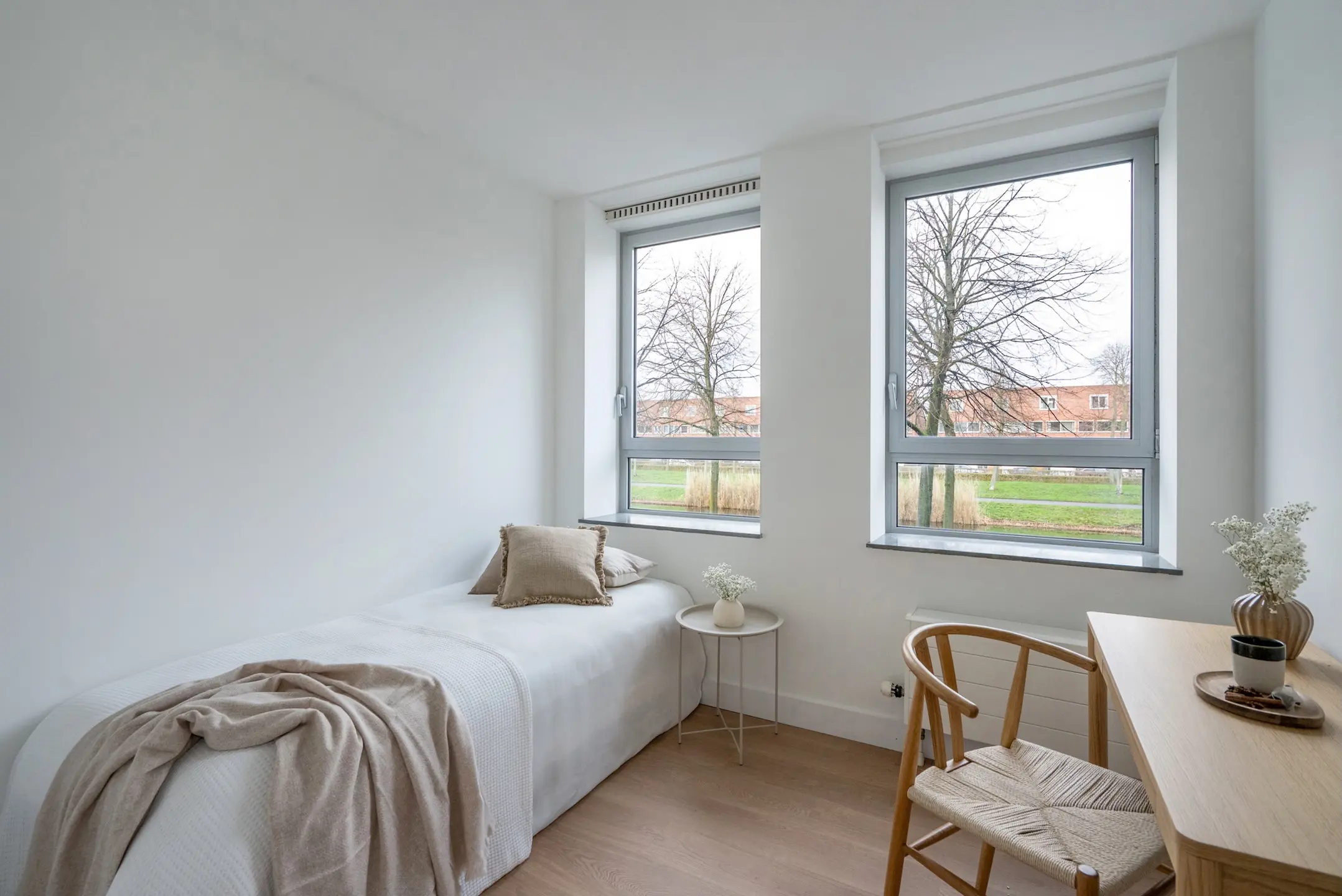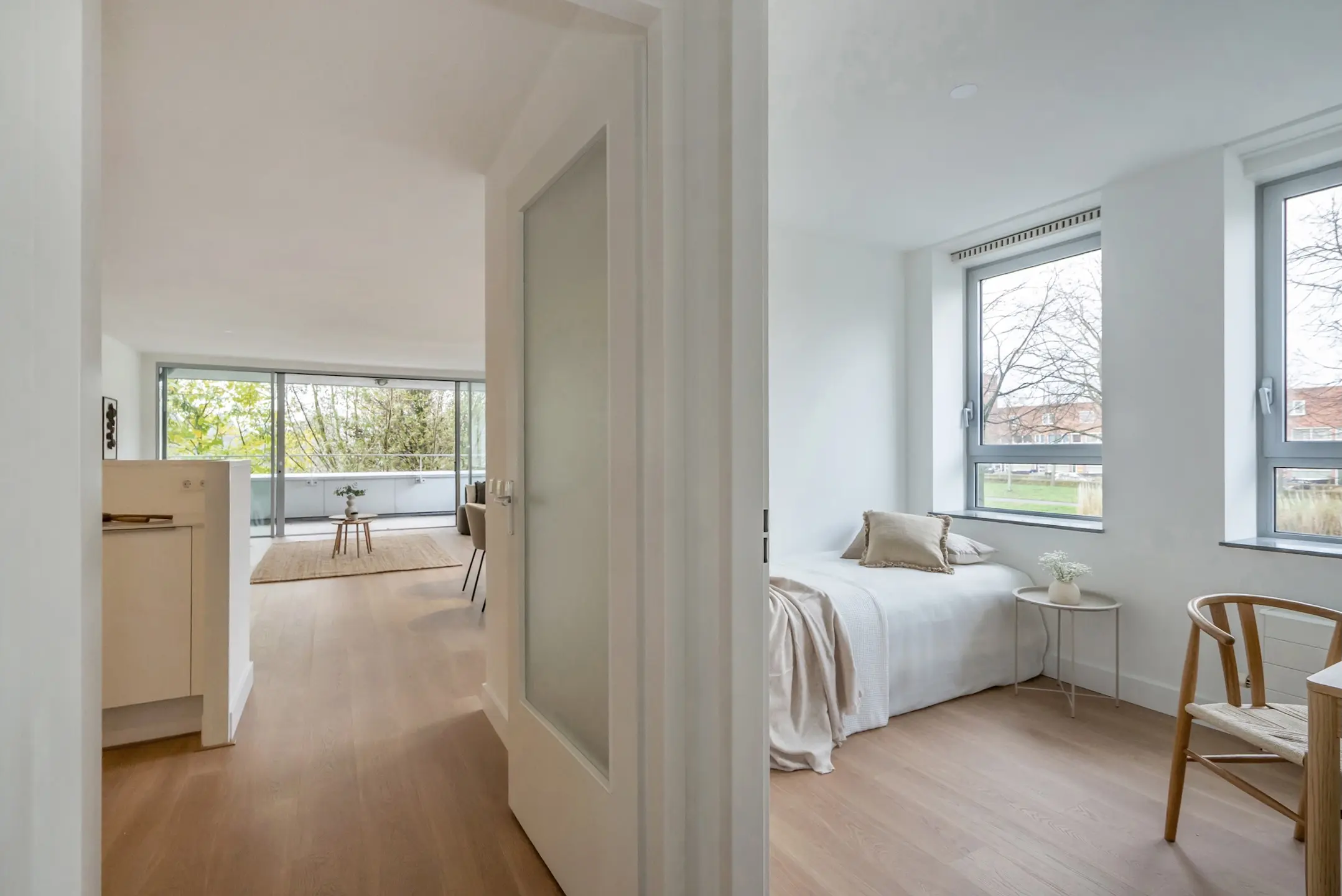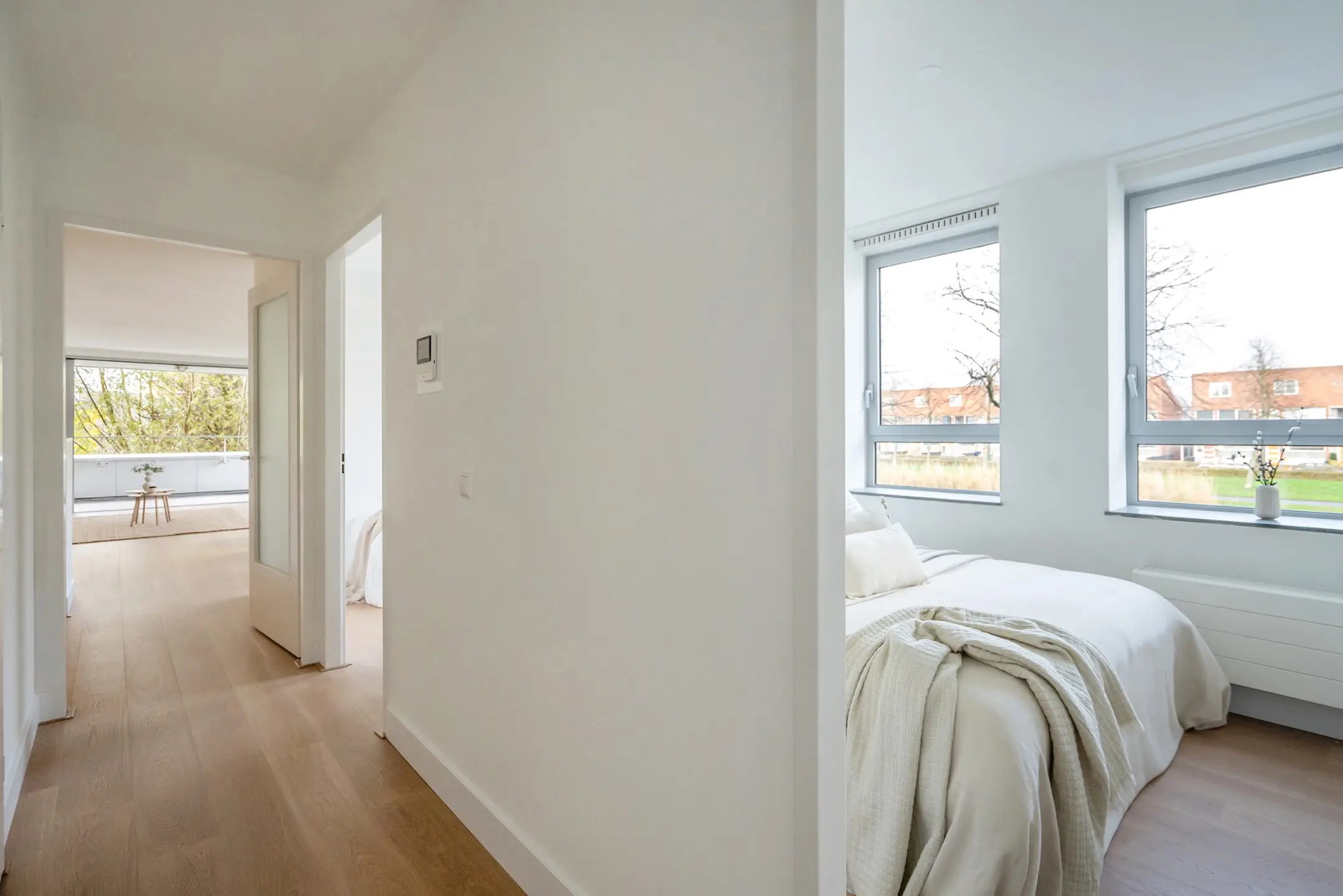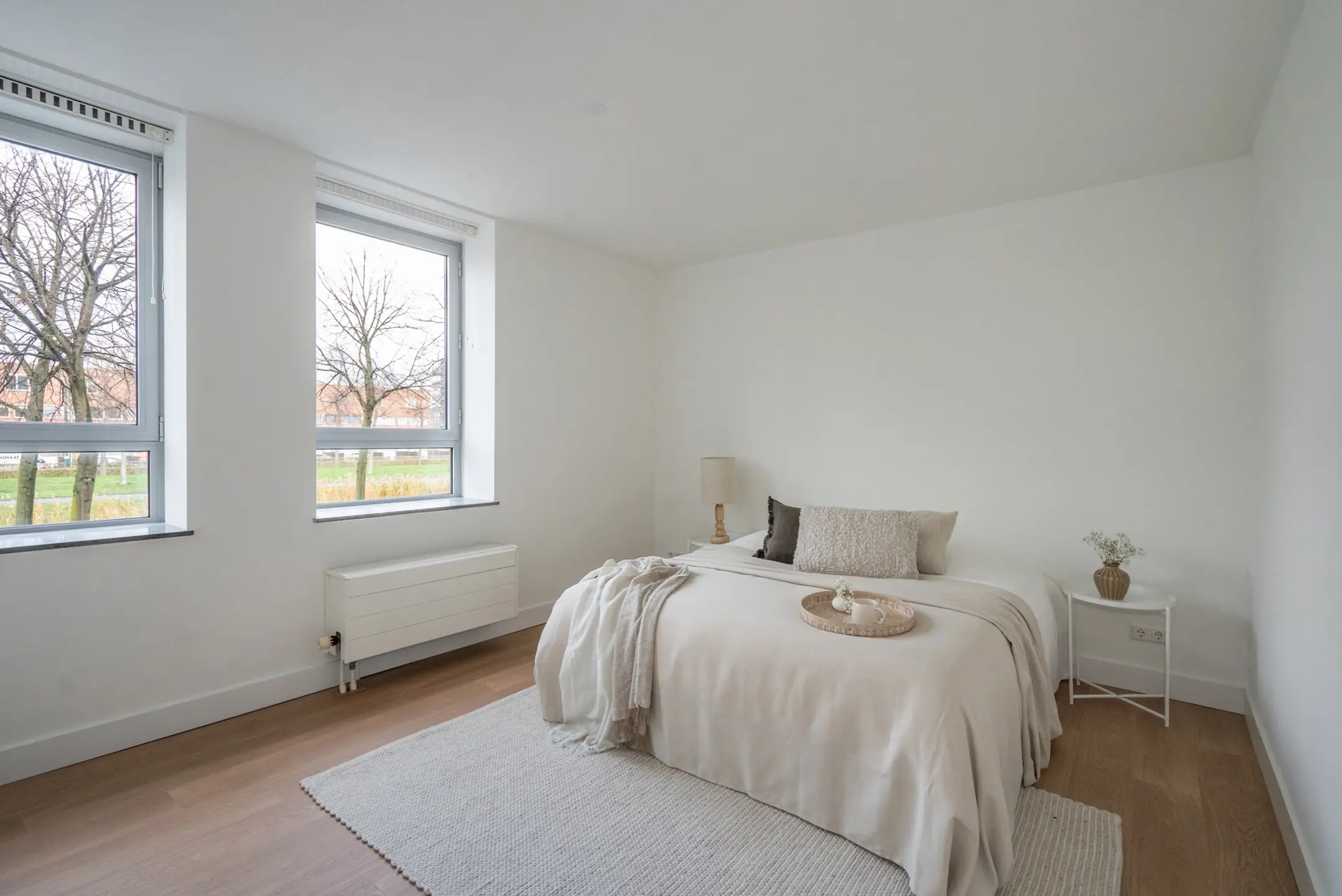 Het appartement beschikt over drie comfortabele slaapkamers. De ruime hoofdslaapkamer heeft een brede raampartij die zorgt voor veel natuurlijk licht en een prachtig uitzicht over de wijk. De overige twee kamers zijn uitstekend geschikt als kinderkamer, werkkamer of logeerruimte.