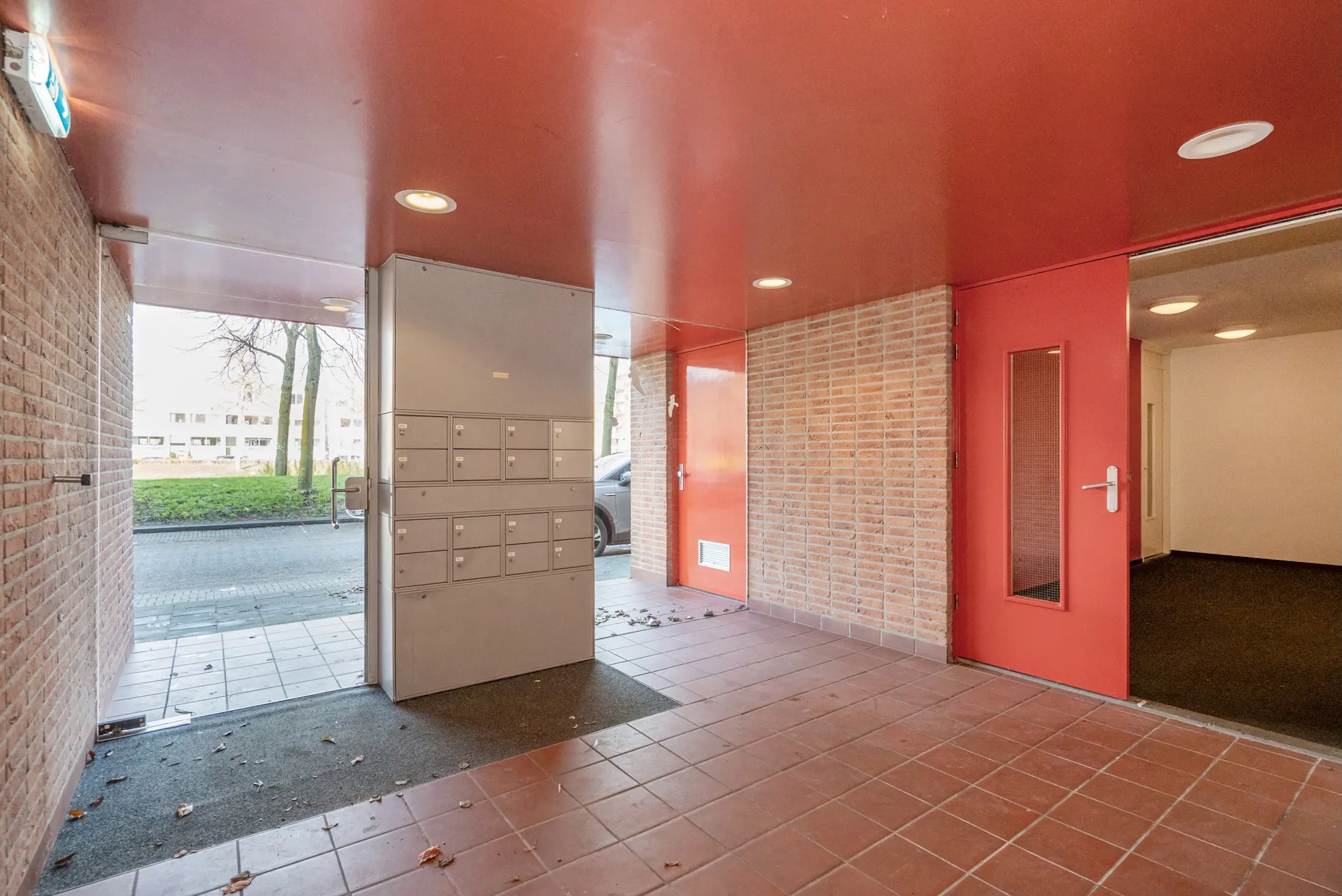 Via de gesloten hoofdentree met brievenbussen en bellentableau betreedt u de centrale hal met toegang tot de lift, het trappenhuis, de algemene fietsenbergingen en de bergingen op de bovenste verdieping.