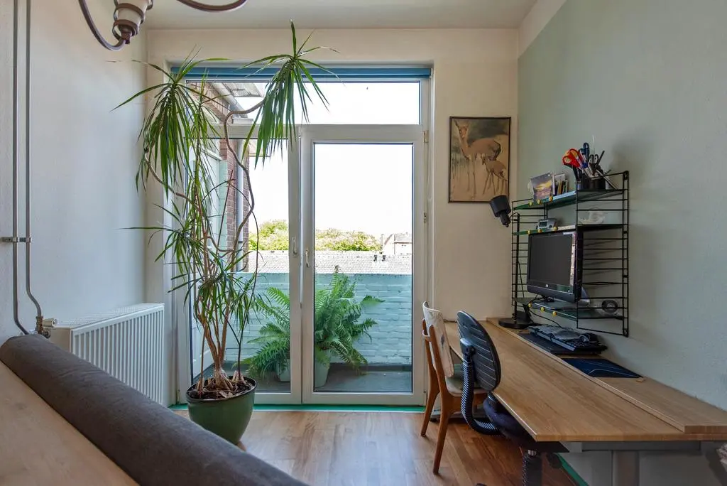 - Grotendeels voorzien van kunststof kozijnen met dubbel glas, 2 deuren zijn hout en enkel glas;
