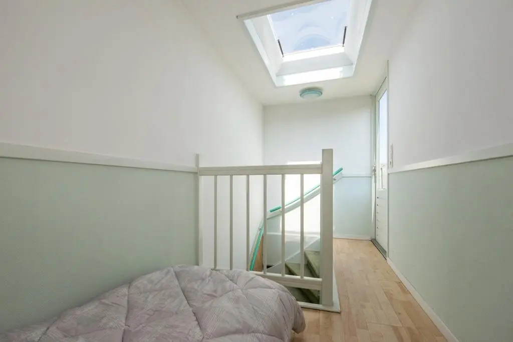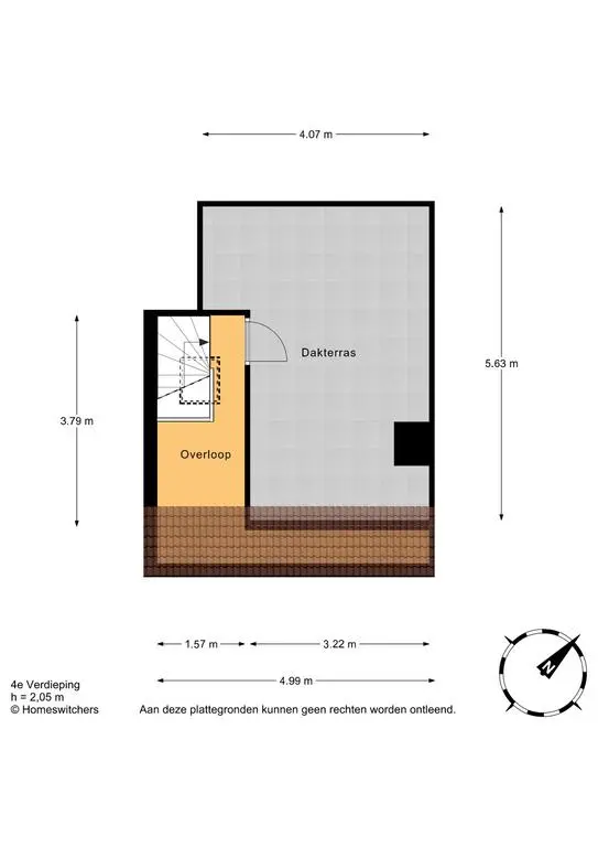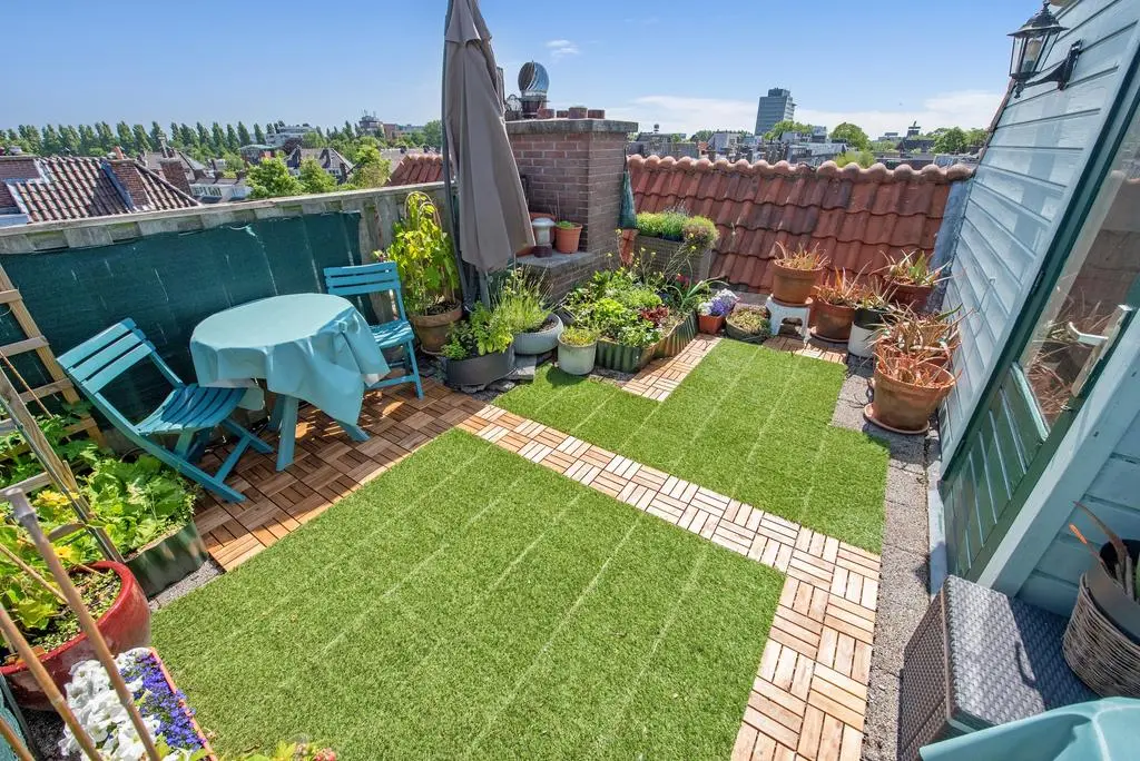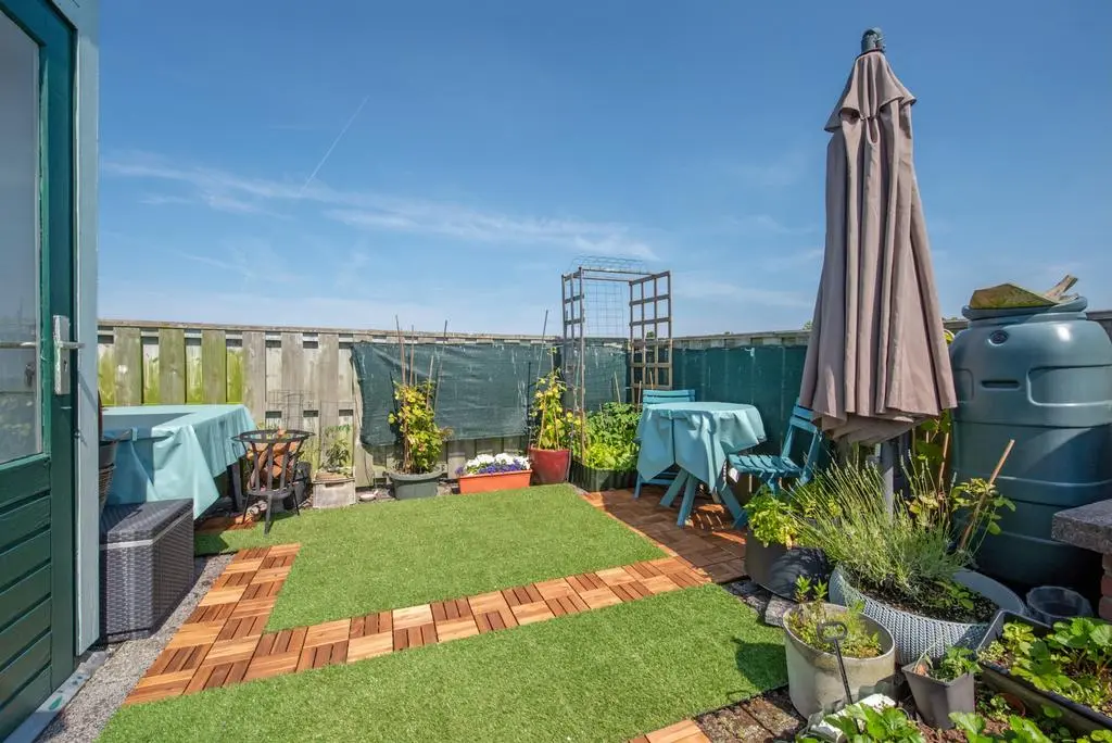 Via de trap bereikt u de dakopbouw met deur tot het fantastische dakterras waarop u heerlijk van de zon kunt genieten.