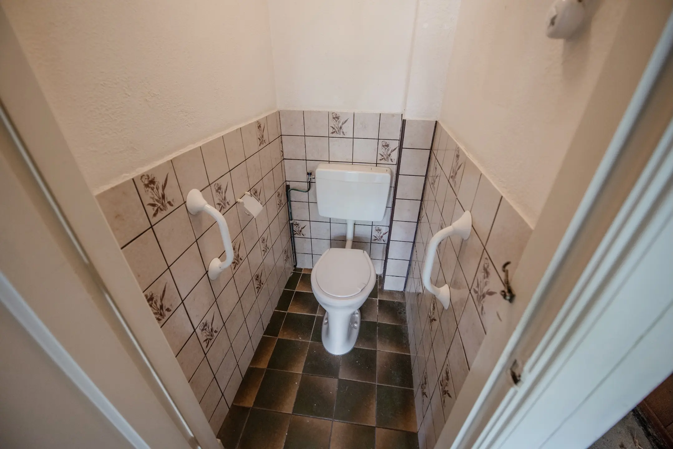 Er zijn twee slaapkamers: een ruime hoofdslaapkamer aan de voorzijde en een tweede slaapkamer aan de achterzijde, met uitzicht op de tuin. De badkamer is voorzien van een douche en wastafel. In de hal bevindt zich een separaat toilet met fontein.