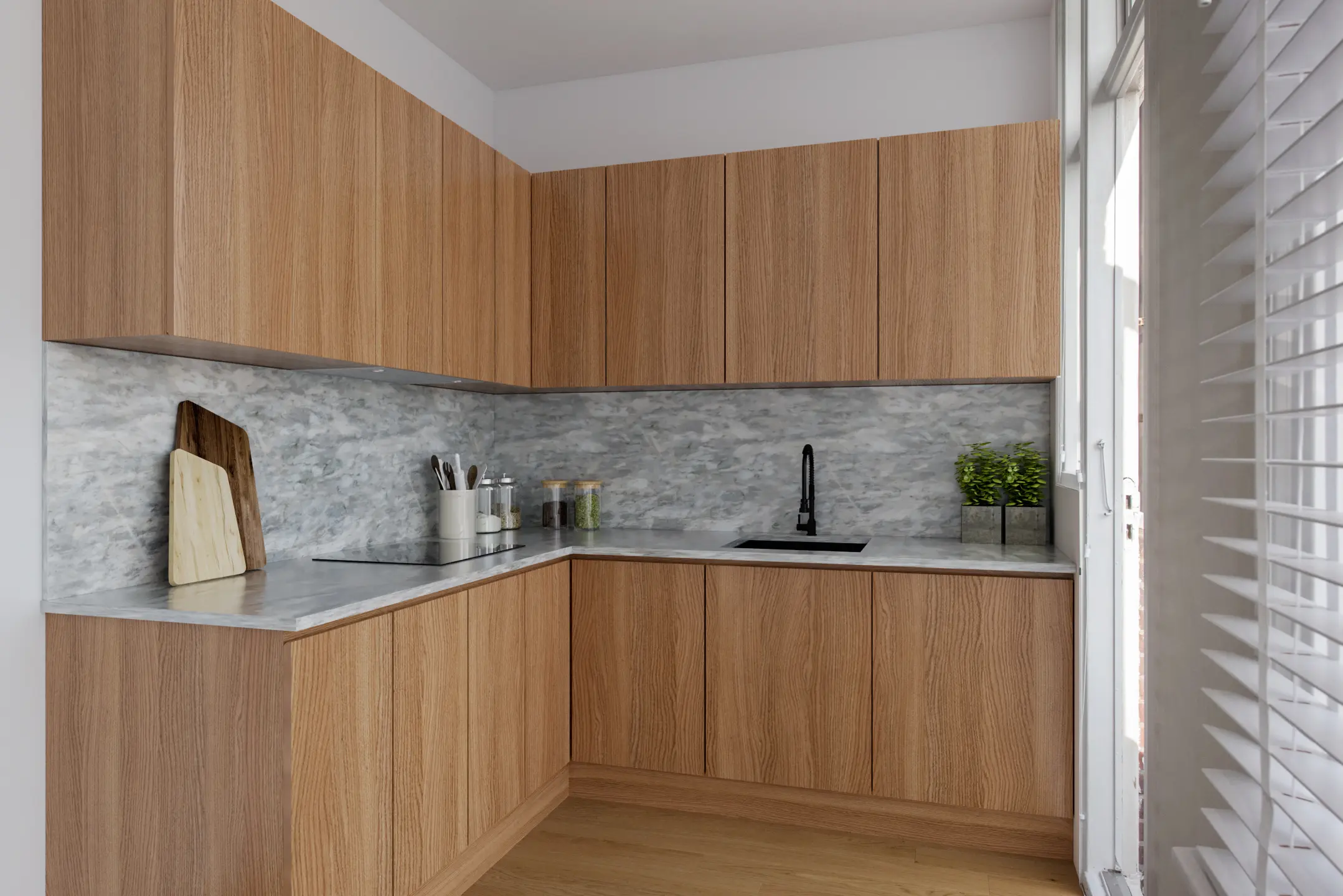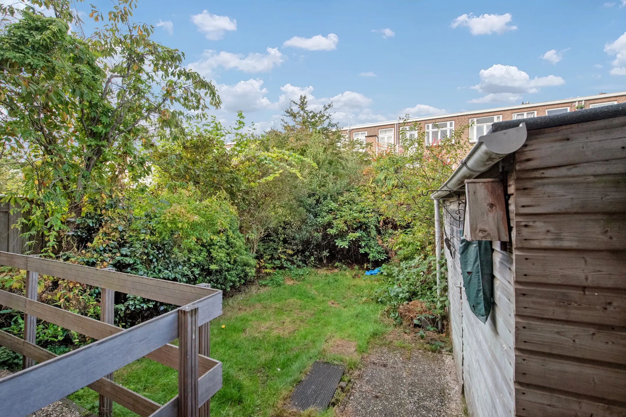 De keuken ligt aan de achterzijde van de woning en heeft een deur naar de tuin. De tuin ligt gunstig op het westen en is ruim van opzet met veel privacy en een berging. Hier geniet u van de middag- en avondzon.
