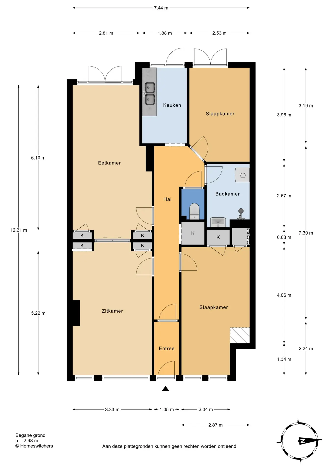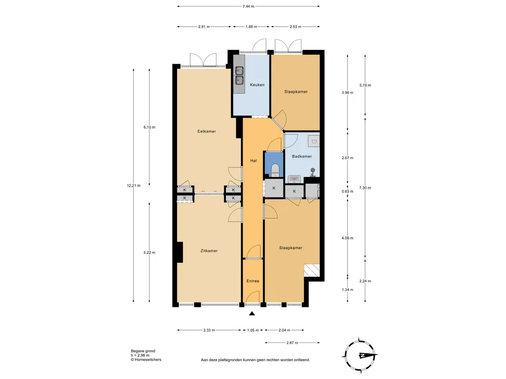 Bovenstaande informatie is door ons met de hoogst nodige zorgvuldigheid samengesteld. Door ons kantoor wordt echter geen enkele aansprakelijkheid aanvaard voor enige onvolledigheid, onjuistheid of anderszins, dan wel de gevolgen daarvan. Alle opgegeven maten en oppervlakten zijn indicatief. De woning is gemeten met gebruikmaking van de Meetinstructie, die is gebaseerd op de normen zoals vastgelegd in NEN 2580. De Meetinstructie is bedoeld om een meer eenduidige manier van meten toe te passen voor het geven van een indicatie van gebruiksoppervlakte. De Meetinstructie sluit verschillen in meetuitkomsten niet volledig uit, door bijvoorbeeld interpretatieverschillen, afrondingen of beperkingen bij het uitvoeren van de meting. Hoewel wij de woning zorgvuldig hebben opgemeten, wordt noch door ons, noch door de verkoper enige aansprakelijkheid aanvaard voor afwijkingen in de opgegeven maten. Koper wordt in de gelegenheid gesteld om de opgegeven maten te (laten) controleren”.