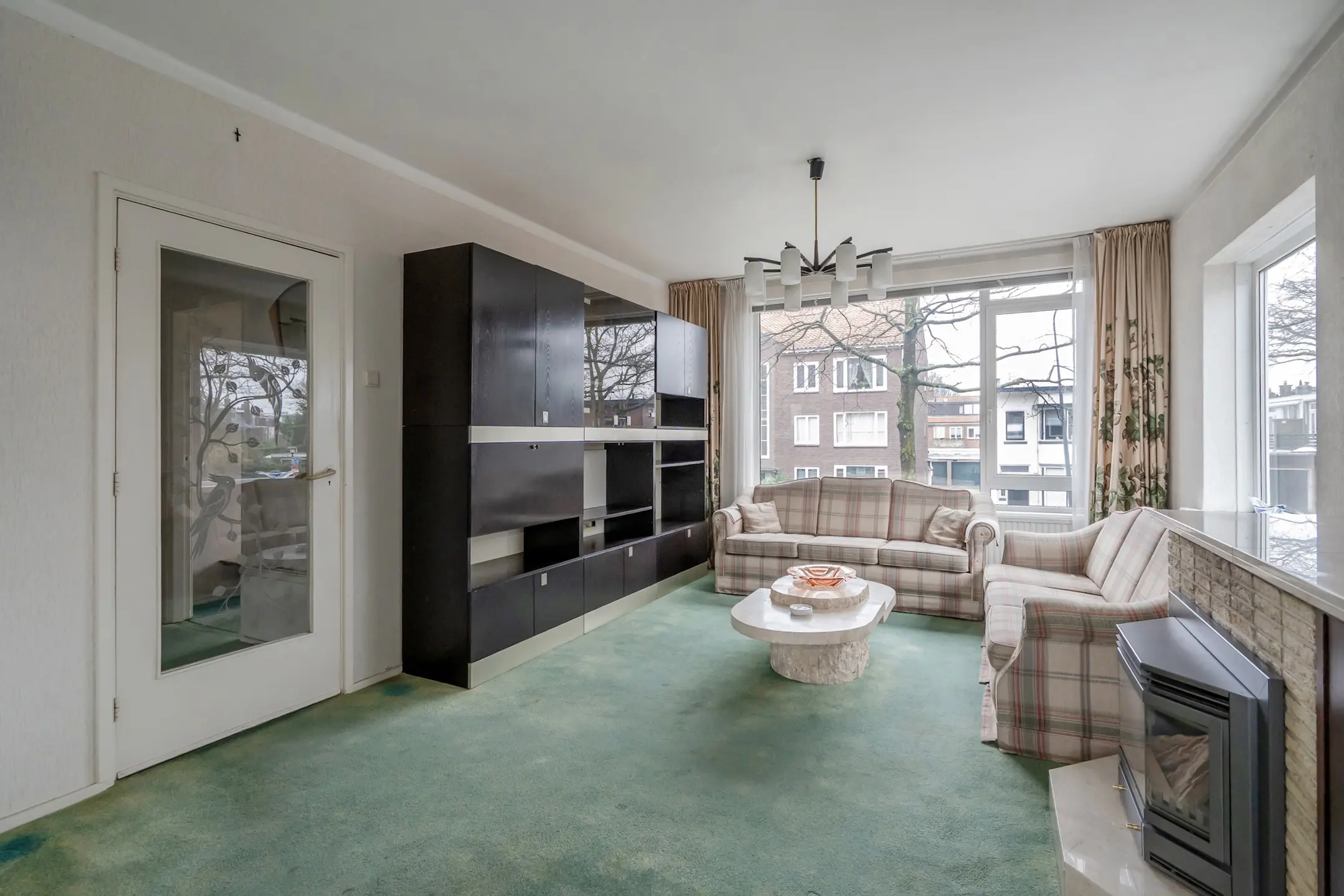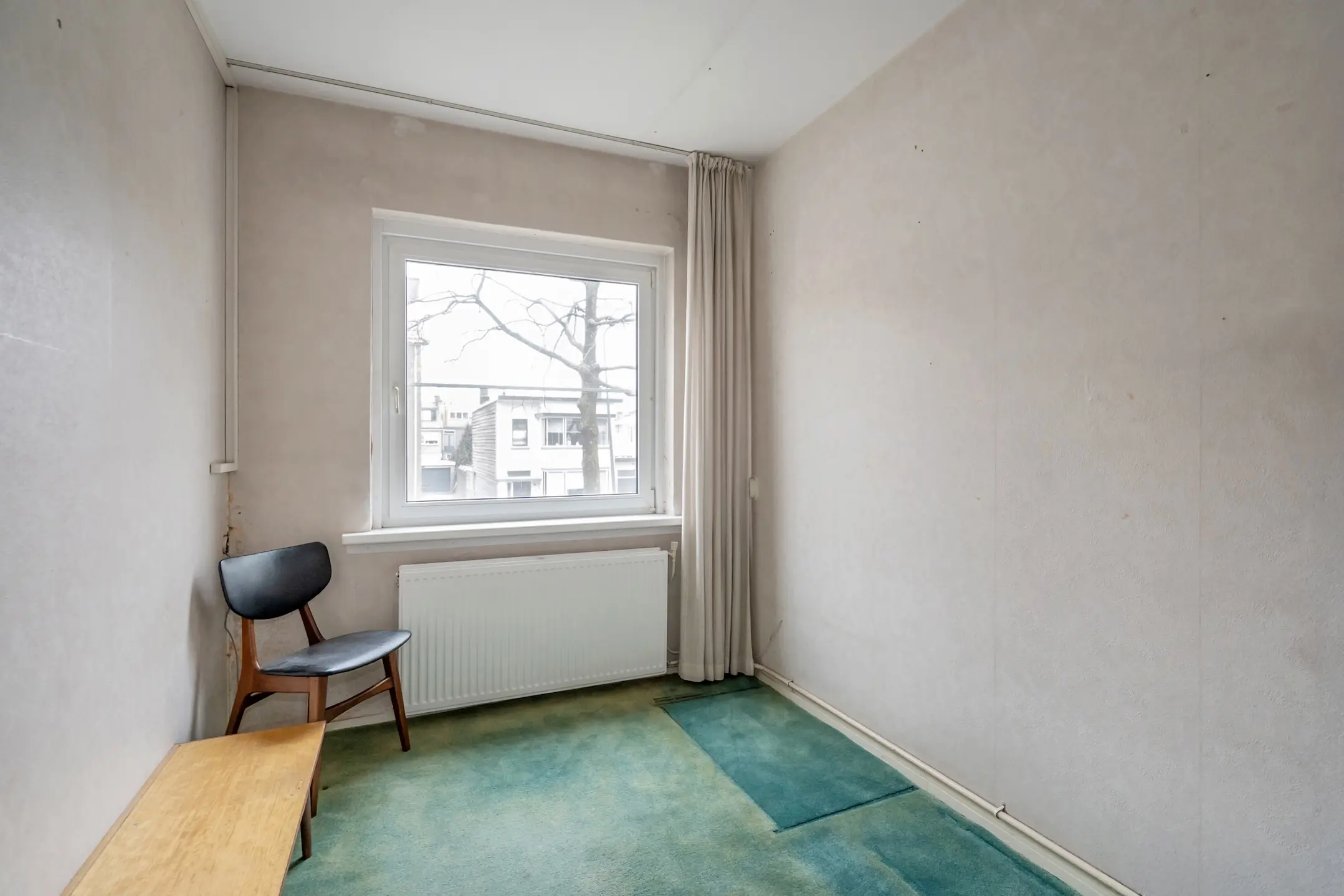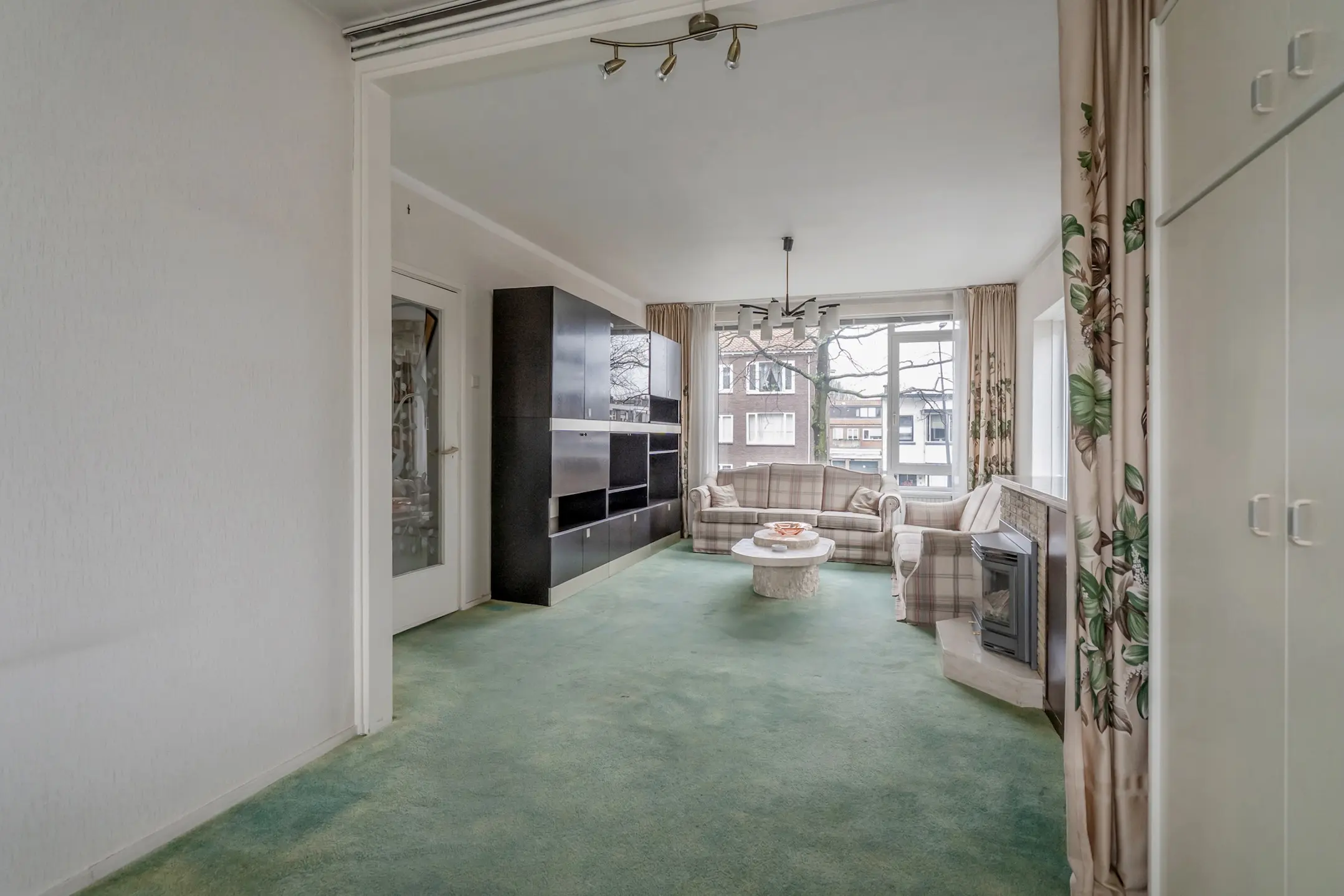 De woonkamer heeft een zijraam met weids uitzicht en een aangename lichtinval!