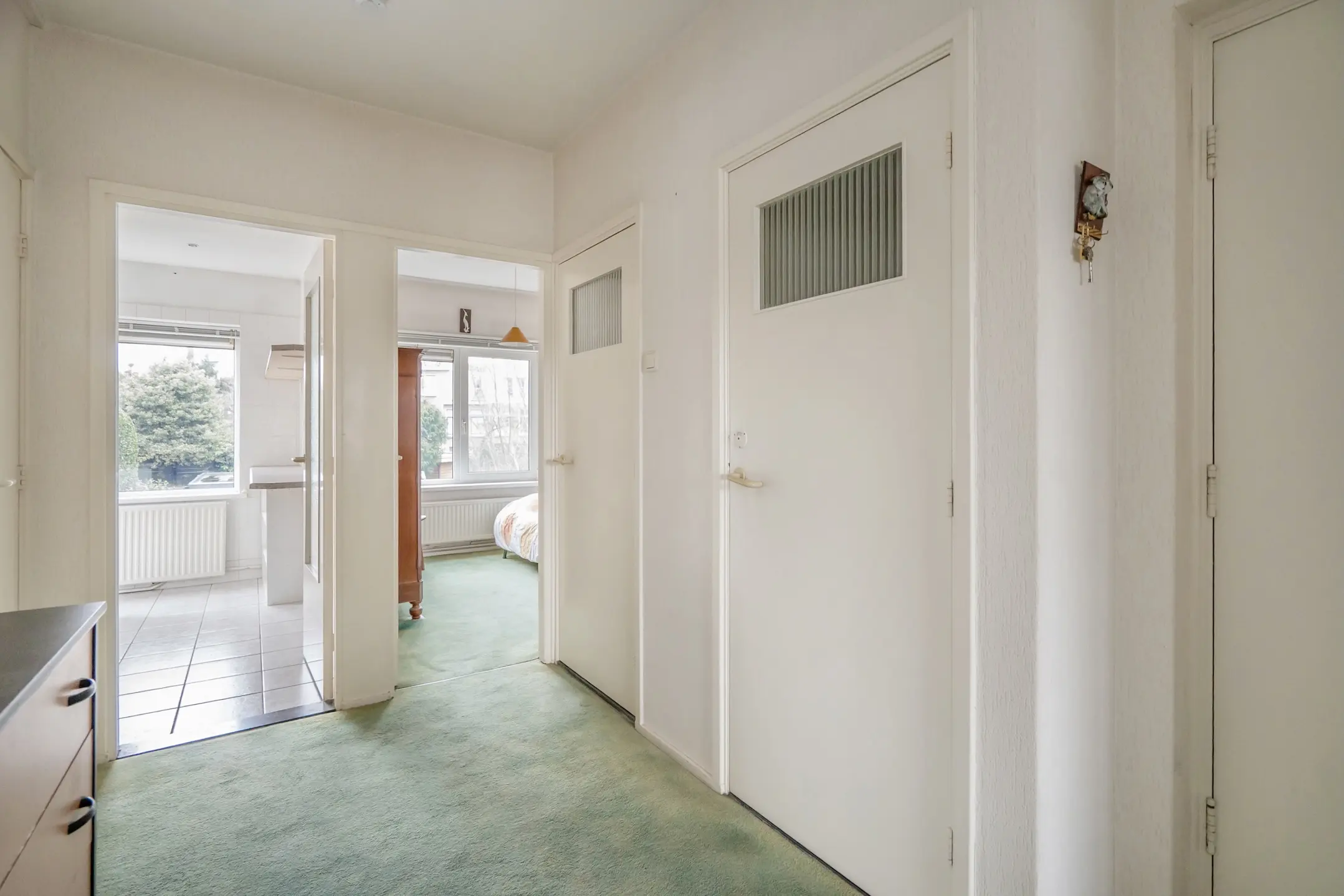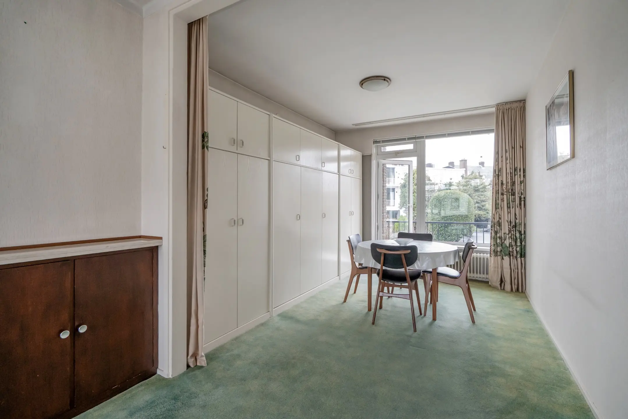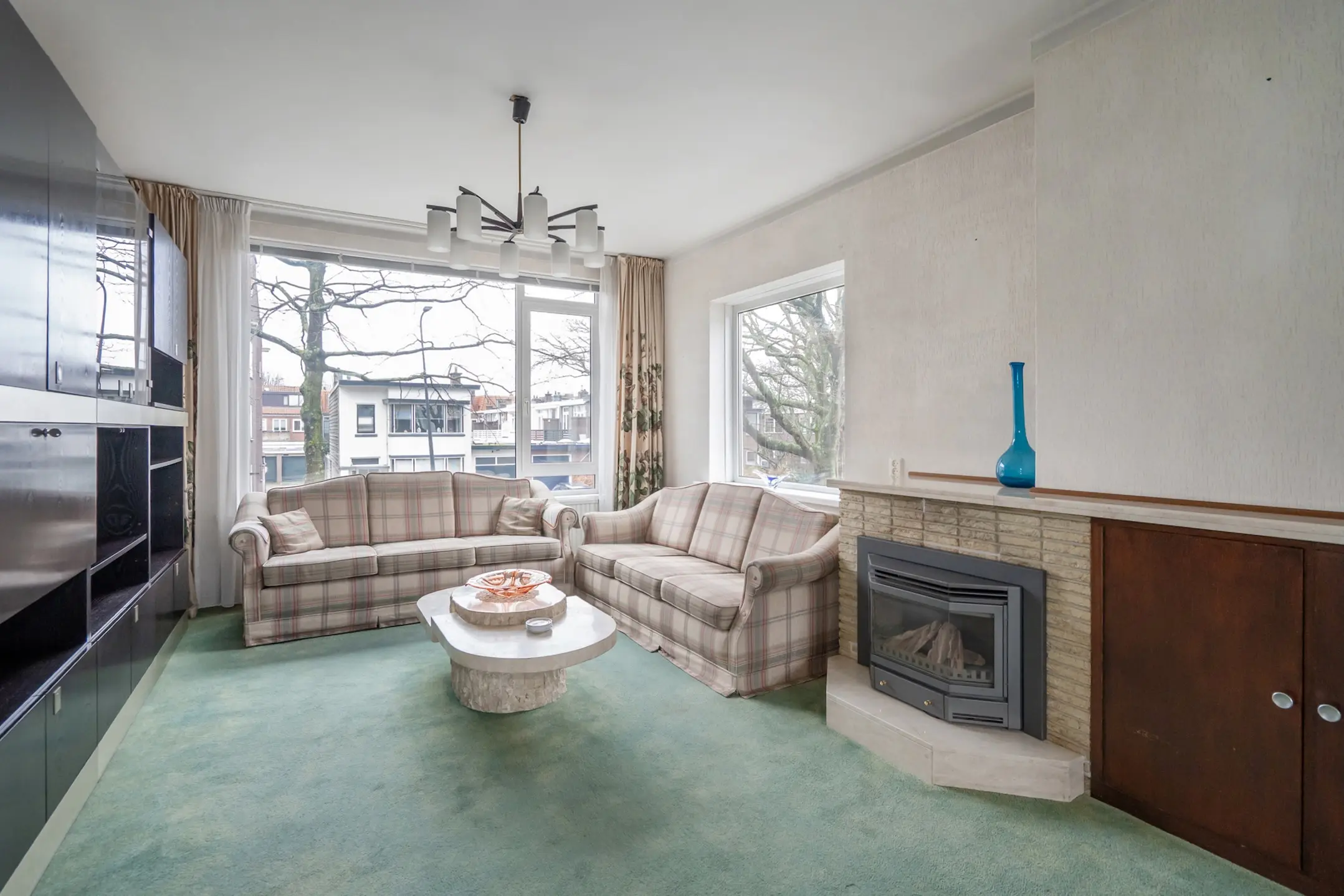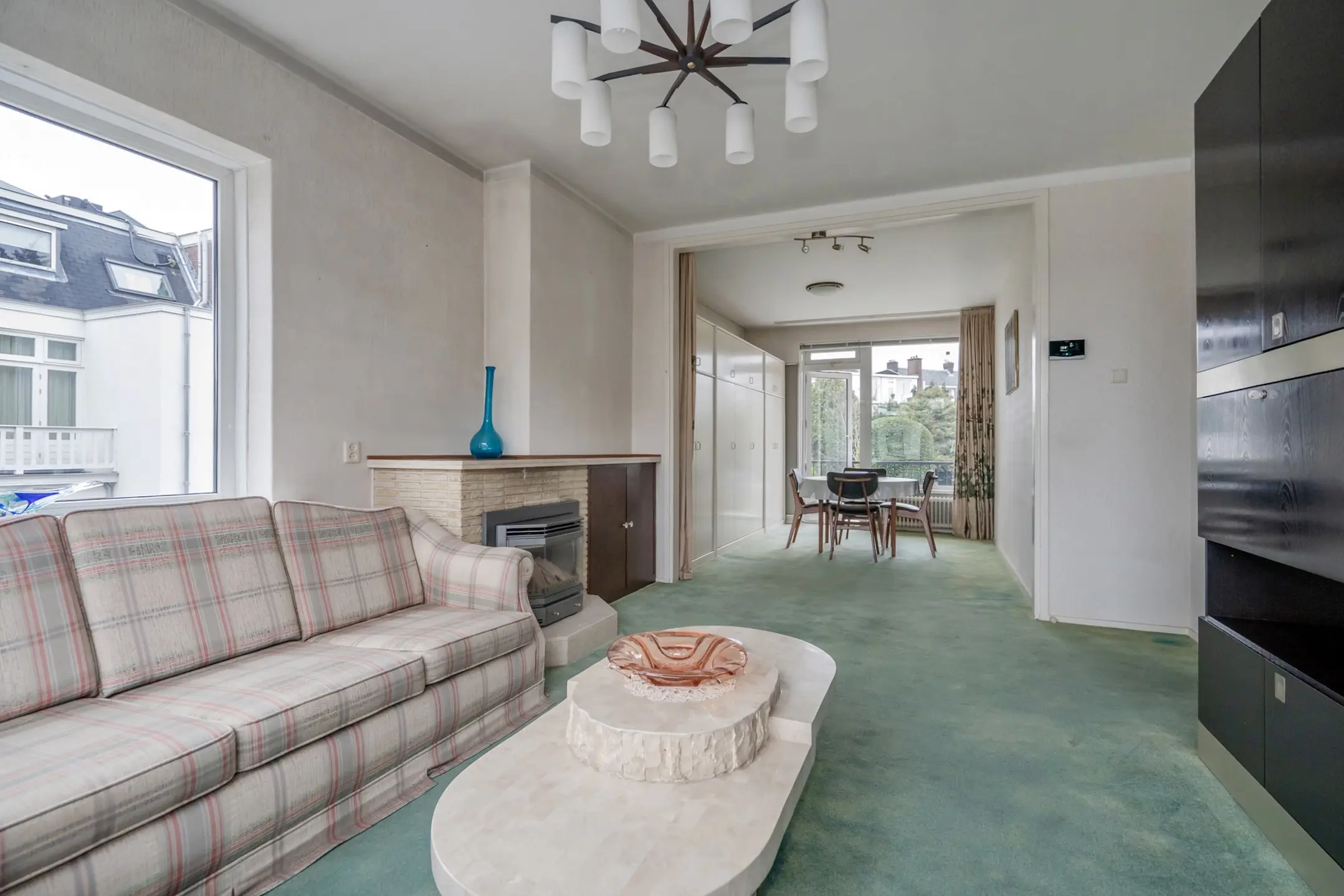 De woonkamer heeft een zijraam met weids uitzicht en een aangename lichtinval!