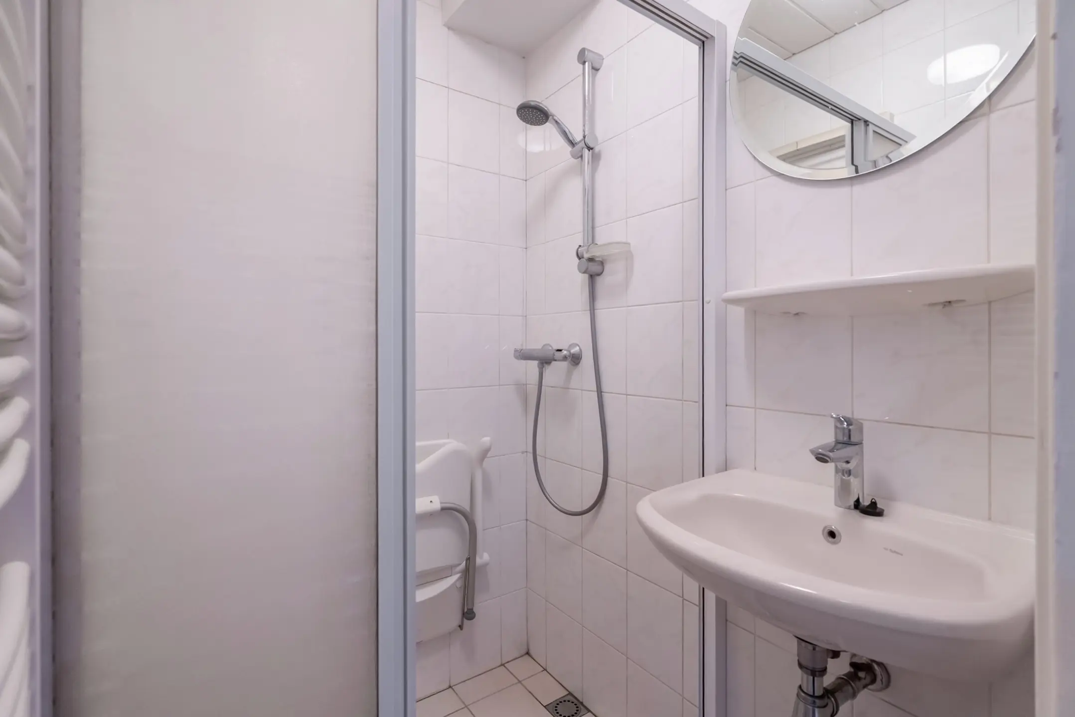 Slaapkamer aan de voorzijde en een tweede slaapkamer aan de achterzijde. Badkamer met douchegelegenheid en een wastafel. Separaat toilet met een fonteintje.