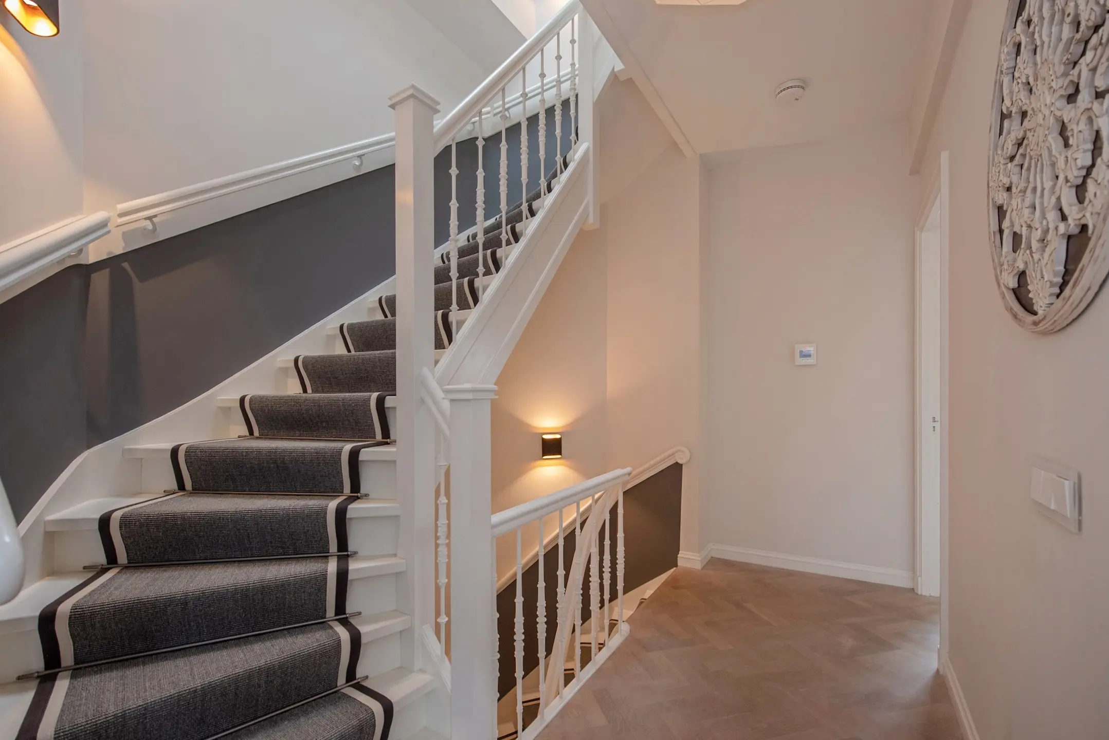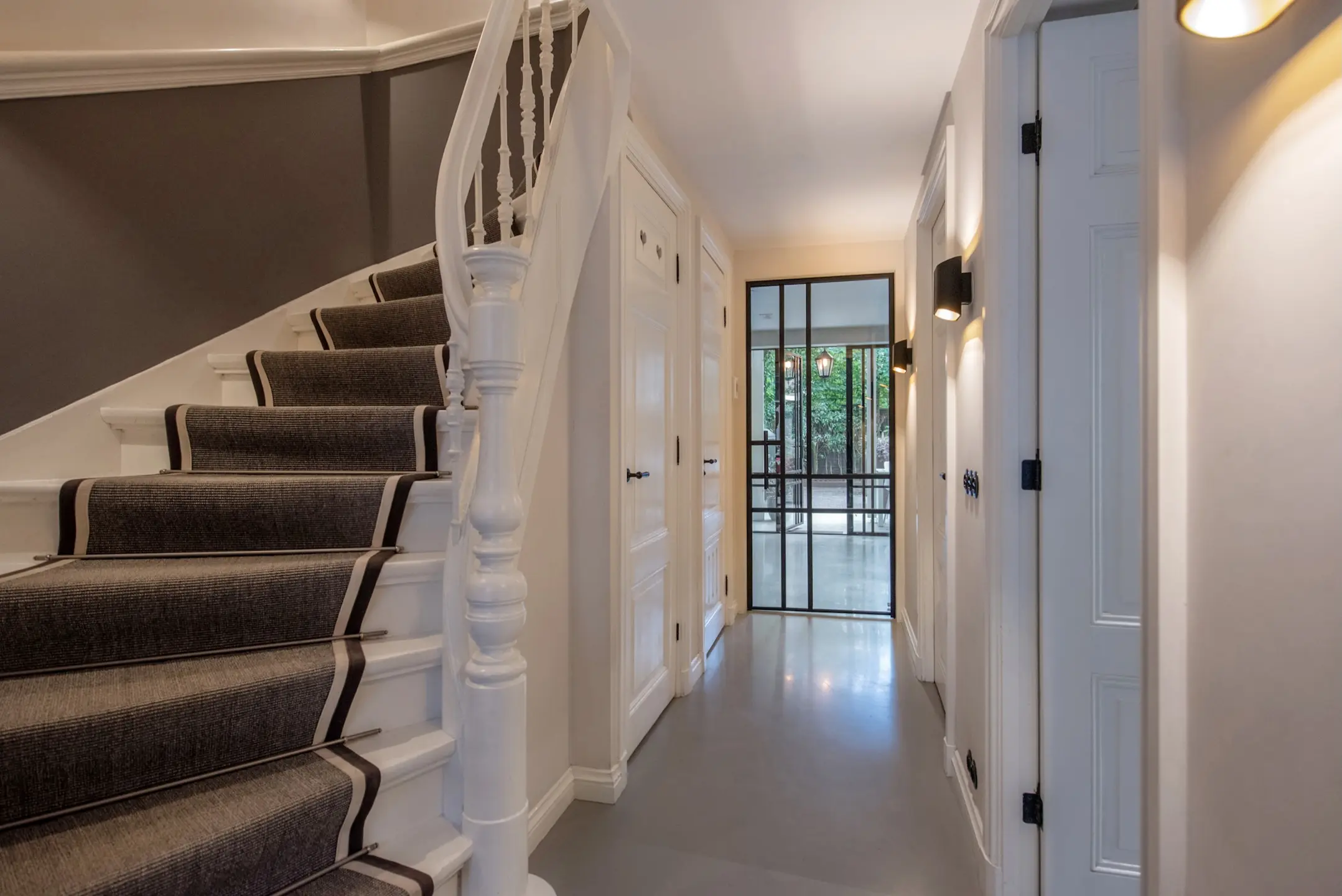 Zodra u de originele voordeur opent, stapt u binnen in een ruime hal met de prachtige granito vloer en maatwerk garderobekasten. De oude details met moderne stalen deuren zijn direct uitnodigend en stijlvol.