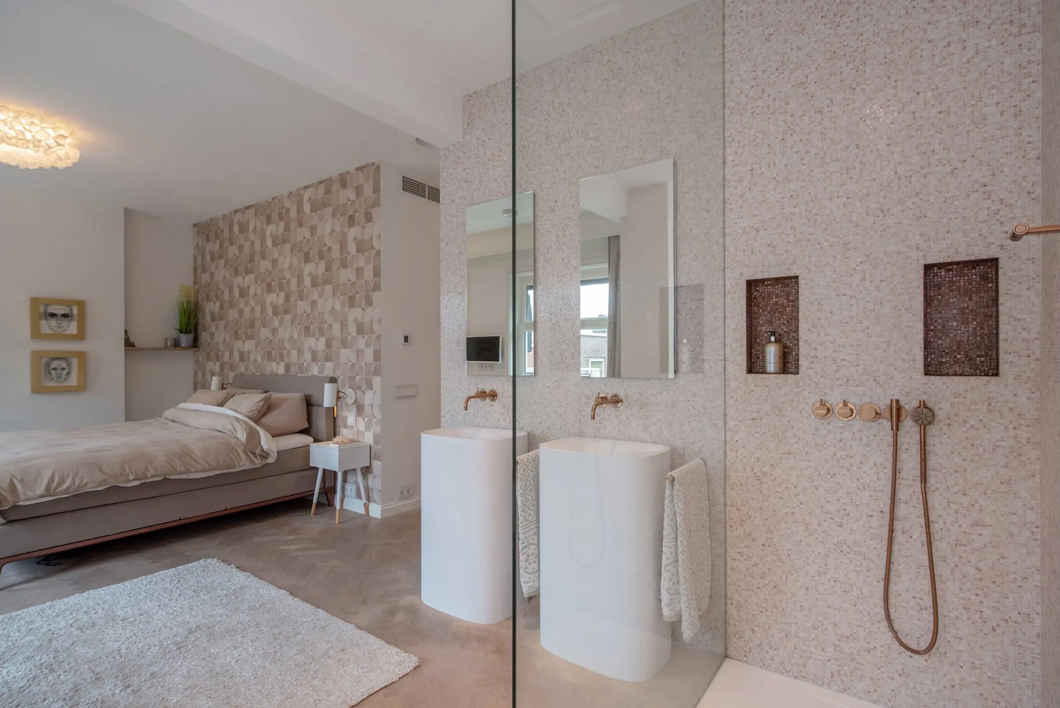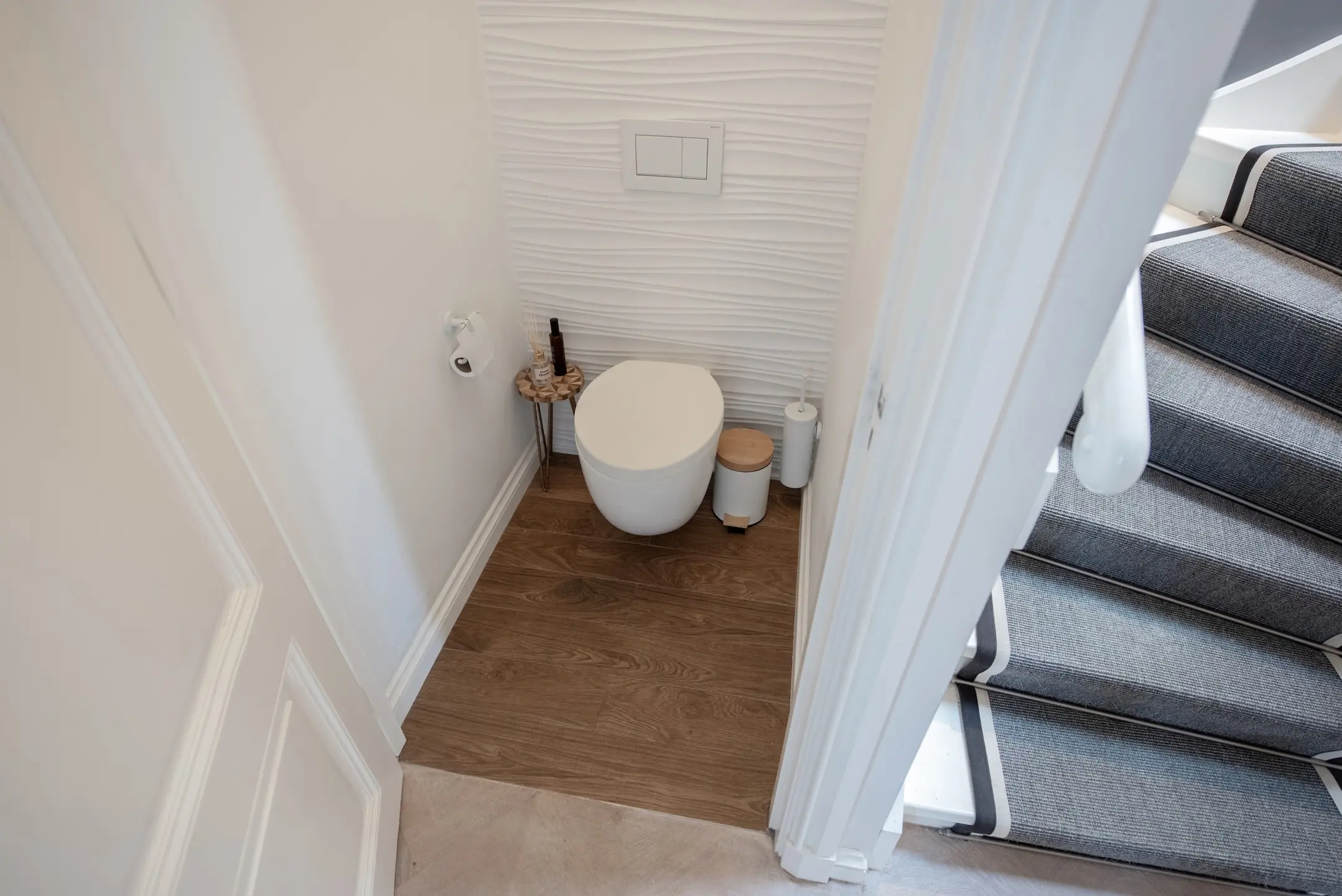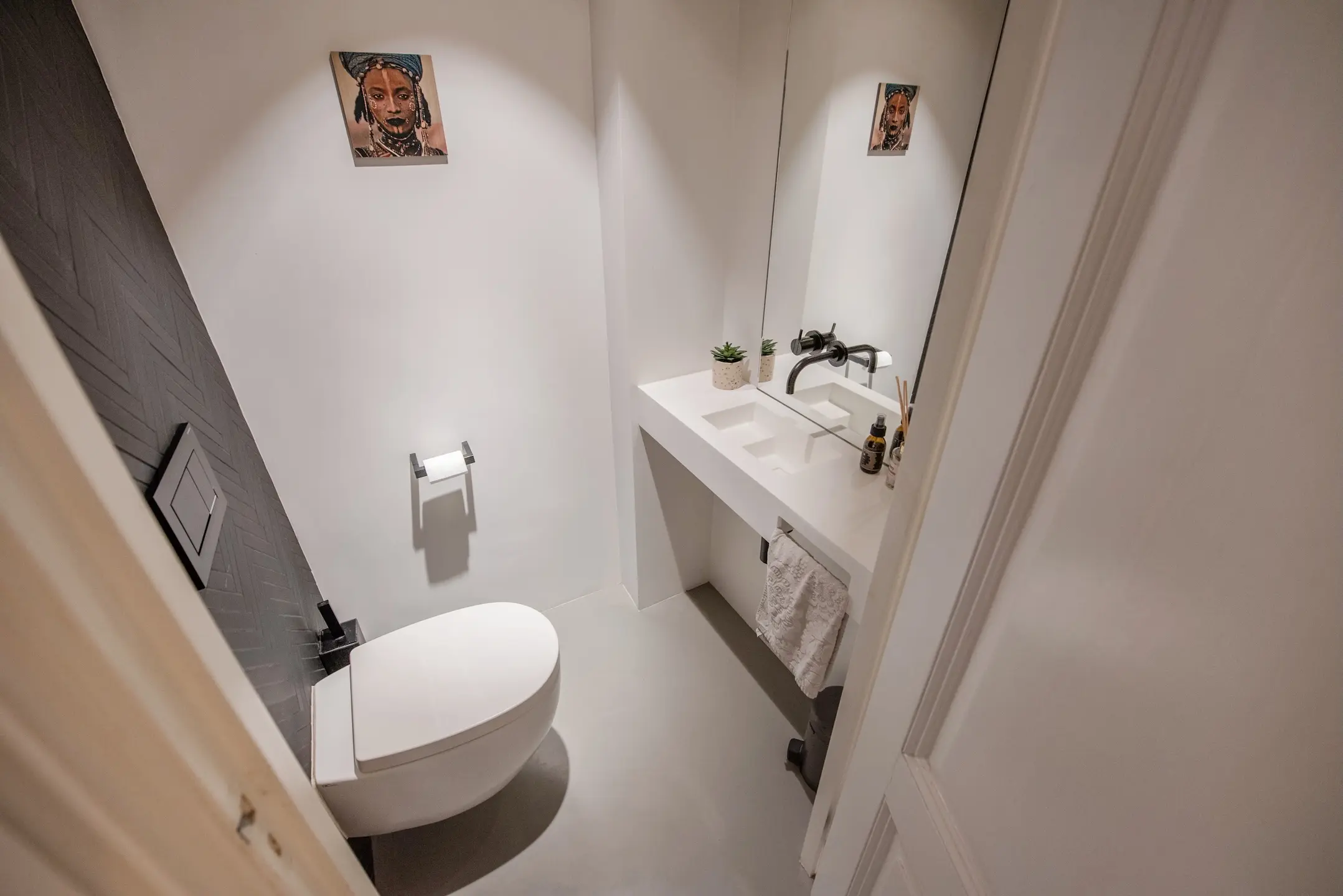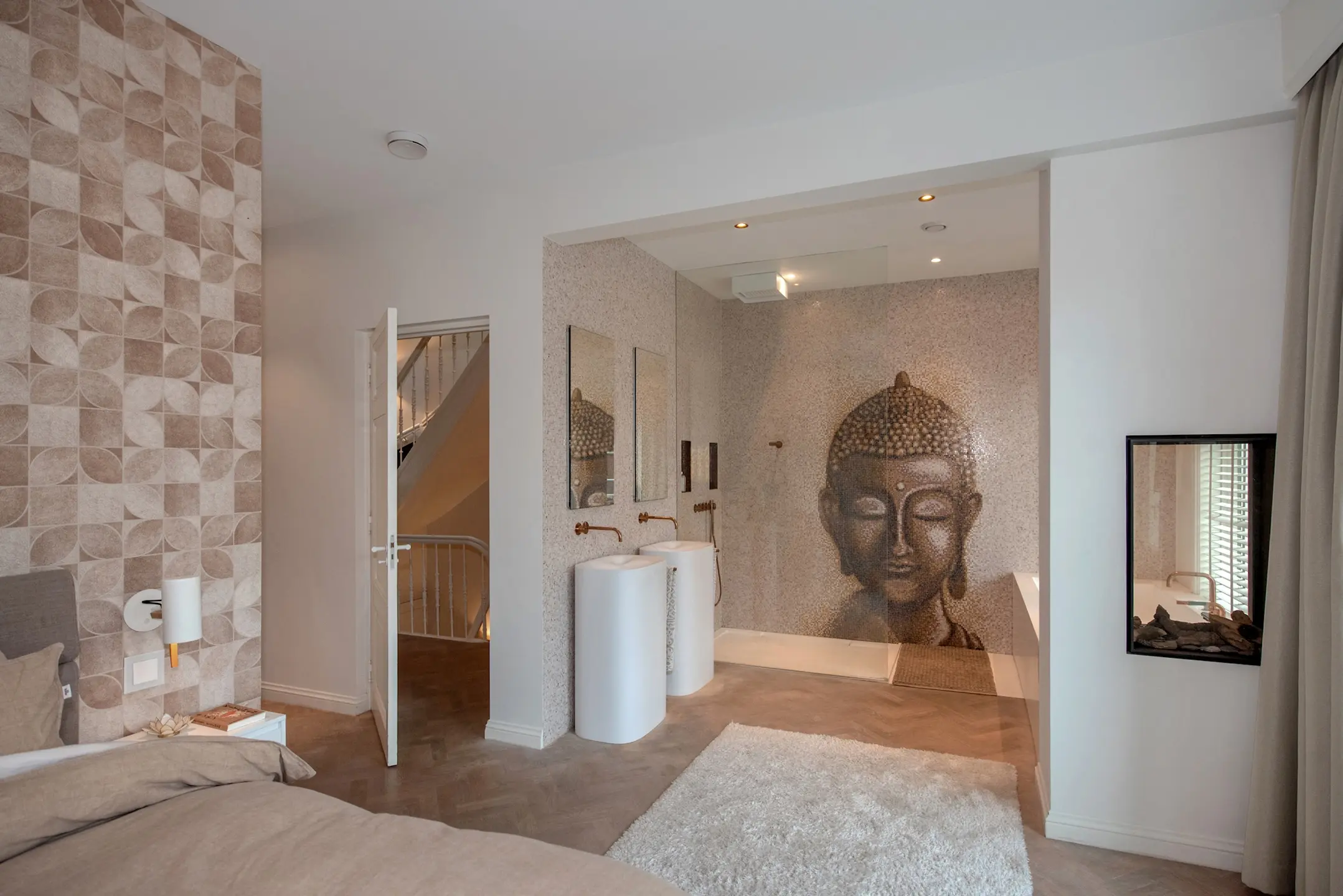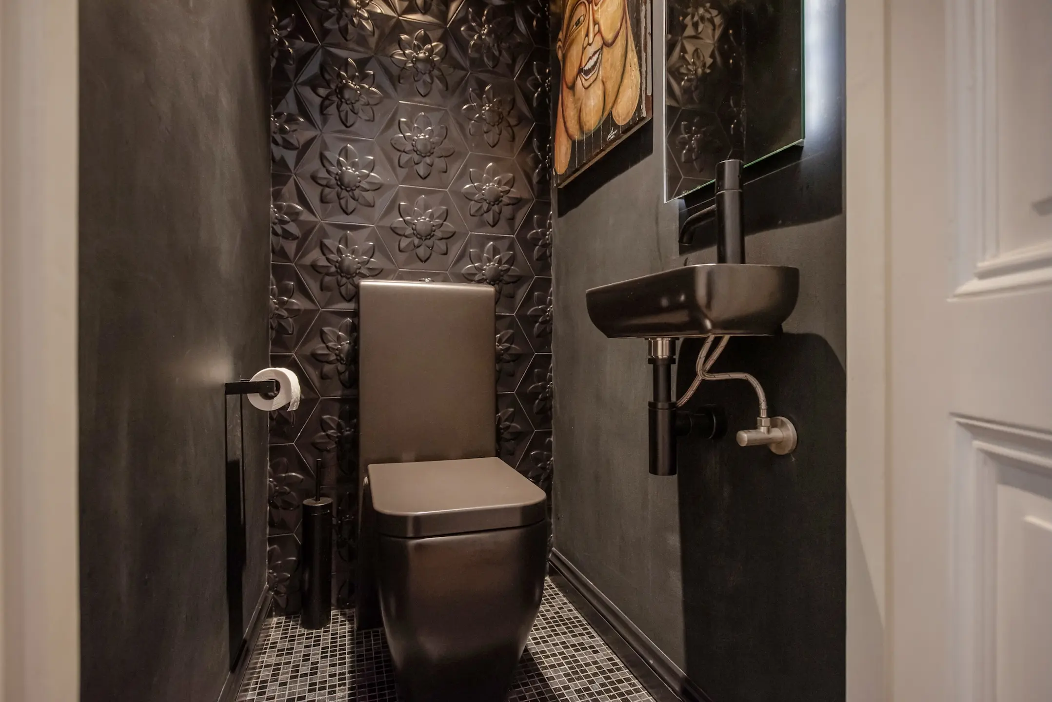 Verder bevind zich op deze verdieping nog een luxe toilet voorzien van een tegenwand van Marcel Wanders in hexagoon.