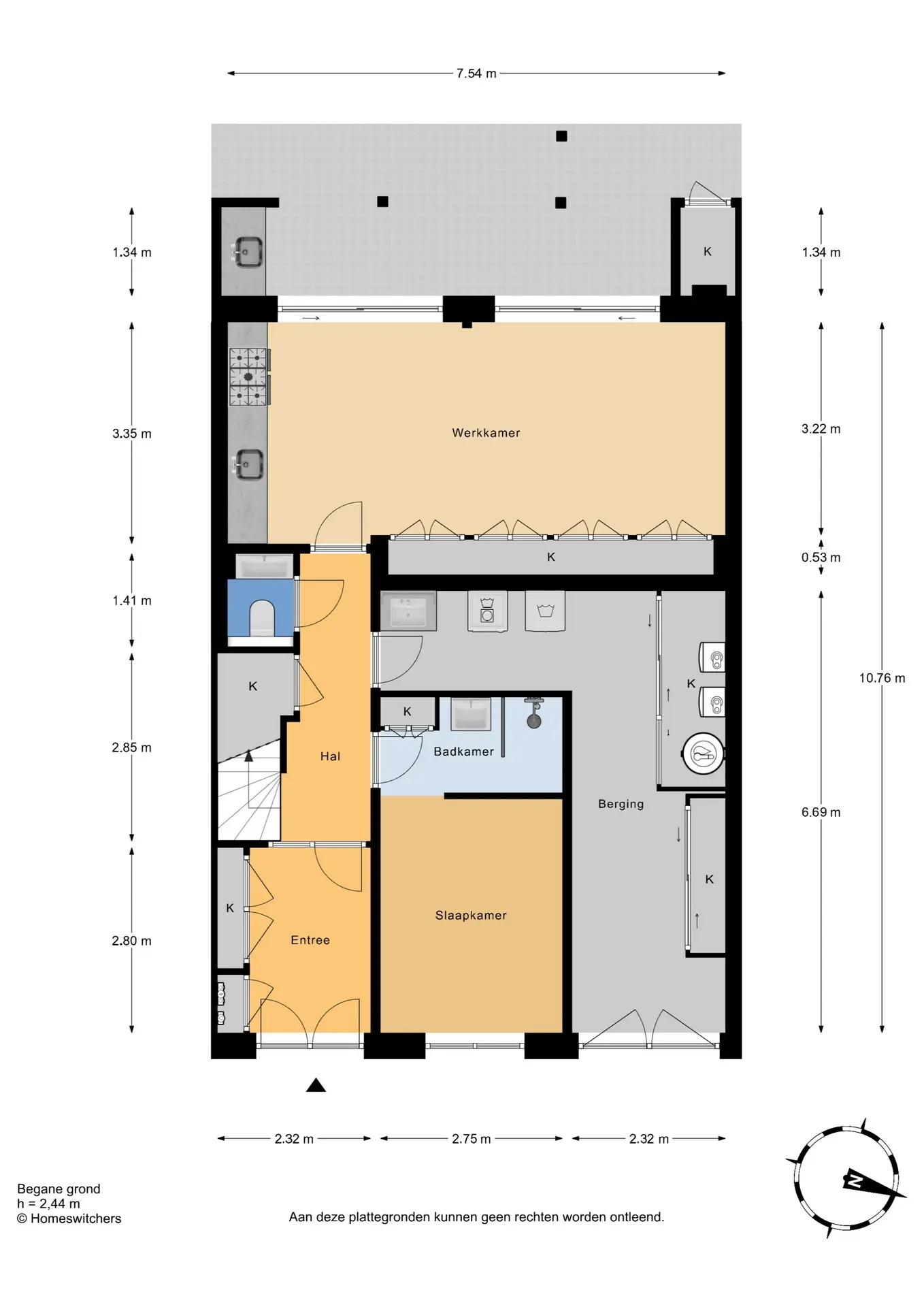 Bovenstaande informatie is door ons met de hoogst nodige zorgvuldigheid samengesteld. Door ons kantoor wordt echter geen enkele aansprakelijkheid aanvaard voor enige onvolledigheid, onjuistheid of anderszins, dan wel de gevolgen daarvan. Alle opgegeven maten en oppervlakten zijn indicatief. De woning is gemeten met gebruikmaking van de Meetinstructie, die is gebaseerd op de normen zoals vastgelegd in NEN 2580. De Meetinstructie is bedoeld om een meer eenduidige manier van meten toe te passen voor het geven van een indicatie van gebruiksoppervlakte. De Meetinstructie sluit verschillen in meetuitkomsten niet volledig uit, door bijvoorbeeld interpretatieverschillen, afrondingen of beperkingen bij het uitvoeren van de meting. Hoewel wij de woning zorgvuldig hebben opgemeten, wordt noch door ons, noch door de verkoper enige aansprakelijkheid aanvaard voor afwijkingen in de opgegeven maten. Koper wordt in de gelegenheid gesteld om de opgegeven maten te (laten) controleren”.