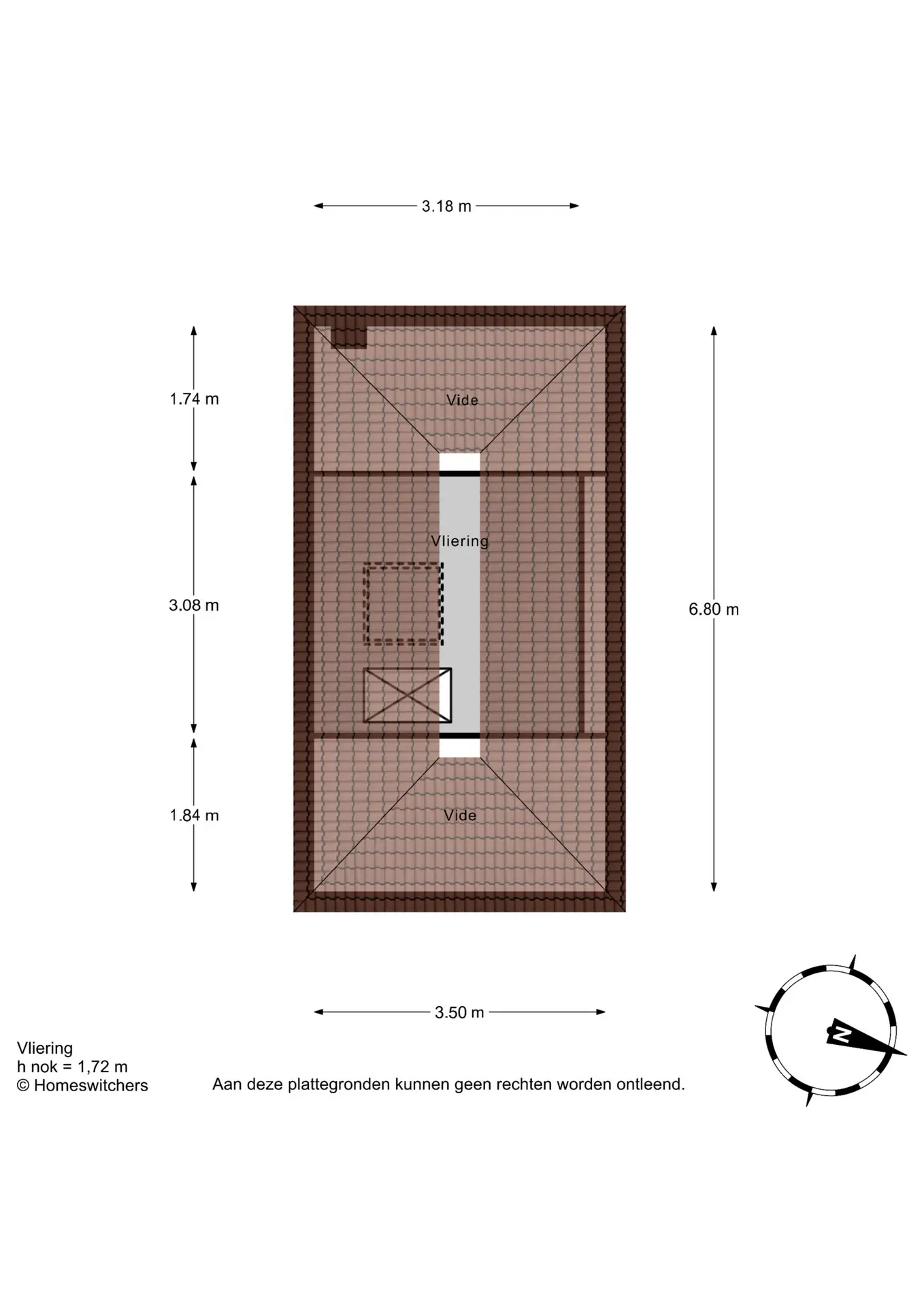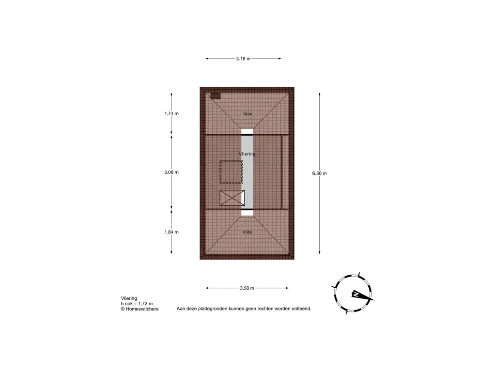 Boven de derde verdieping bevind zich nog een opbergvliering. Ruim voor alle spullen die bijvoorbeeld maar eenmaal per jaar worden gebruikt. Deze vliering is te bereiken met de vlizotrap.