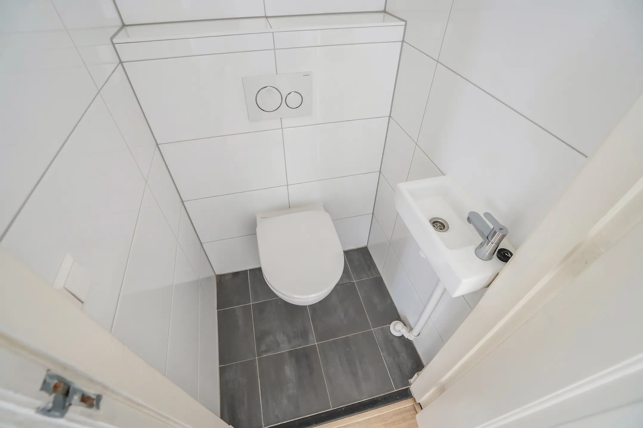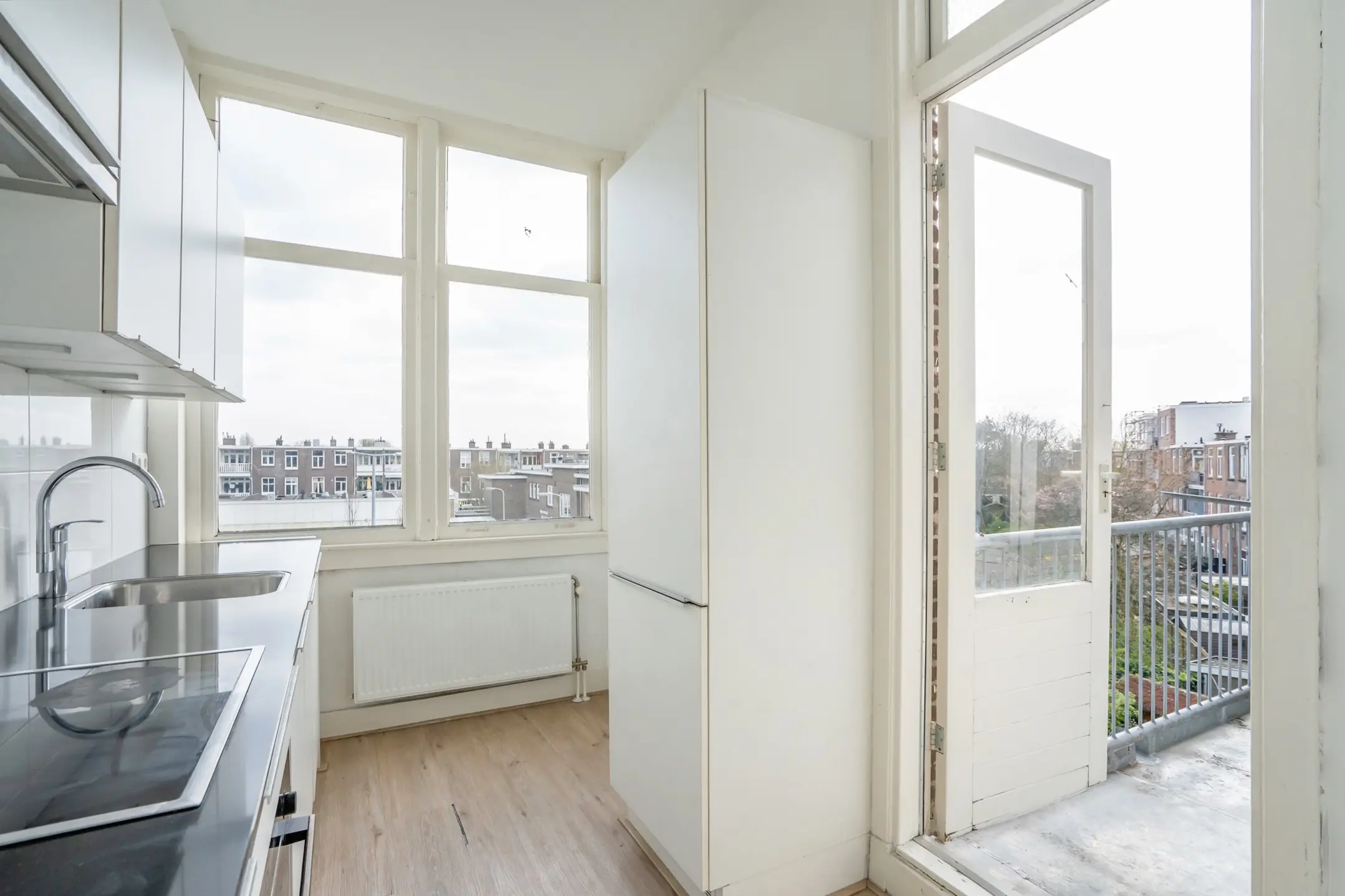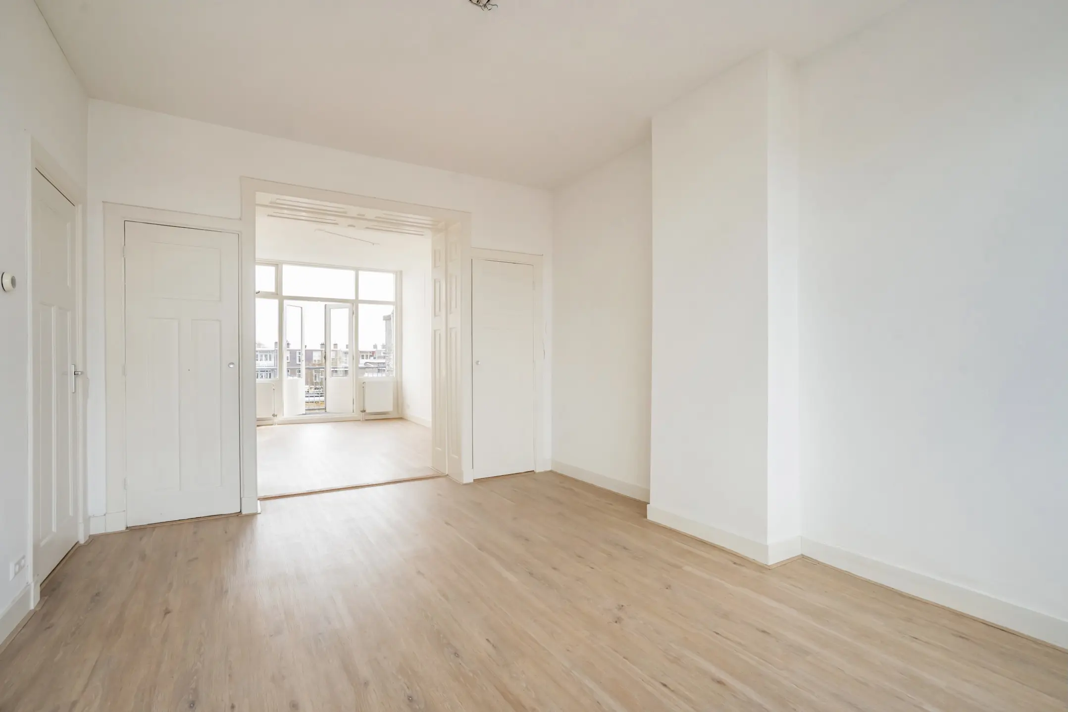 De royale woon- en eetkamer vormt het hart van de woning en biedt een heerlijke leefruimte. Dankzij de vier vaste kasten is er volop bergruimte en de gehele verdieping afgewerkt met een pvc-vloer. Via openslaande deuren bereikt u het balkon gelegen op het noordoosten, een fijne plek om van de ochtendzon te genieten.