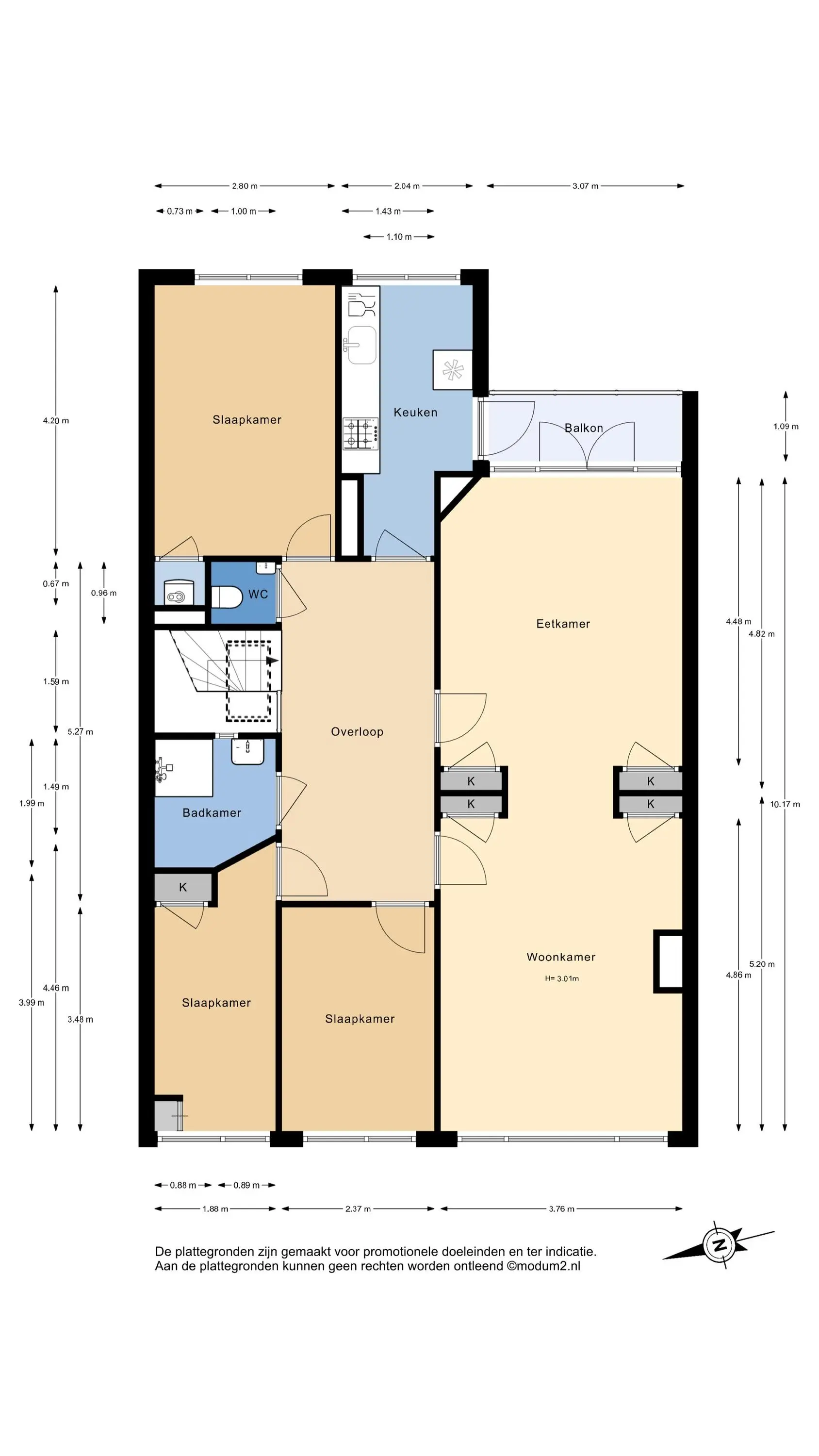 DBovenstaande informatie is door ons met de hoogst nodige zorgvuldigheid samengesteld. Door ons kantoor wordt echter geen enkele aansprakelijkheid aanvaard voor enige onvolledigheid, onjuistheid of anderszins, dan wel de gevolgen daarvan. Alle opgegeven maten en oppervlakten zijn indicatief. De woning is gemeten met gebruikmaking van de Meetinstructie, die is gebaseerd op de normen zoals vastgelegd in NEN 2580. De Meetinstructie is bedoeld om een meer eenduidige manier van meten toe te passen voor het geven van een indicatie van gebruiksoppervlakte. De Meetinstructie sluit verschillen in meetuitkomsten niet volledig uit, door bijvoorbeeld interpretatieverschillen, afrondingen of beperkingen bij het uitvoeren van de meting. Hoewel wij de woning zorgvuldig hebben opgemeten, wordt noch door ons, noch door de verkoper enige aansprakelijkheid aanvaard voor afwijkingen in de opgegeven maten. Koper wordt in de gelegenheid gesteld om de opgegeven maten te (laten) controleren”.