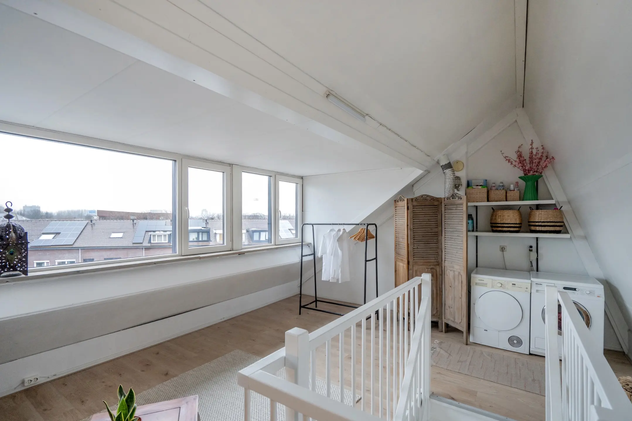 3e verdieping: multifunctionele ruimte (was-, studeer/werkruimte) met grote dakkapel inclusief rolluik en opstelplaats voor wasmachine, droger en mechanische ventilatie. De gehele verdieping is voorzien van een mooie laminaatvloer.