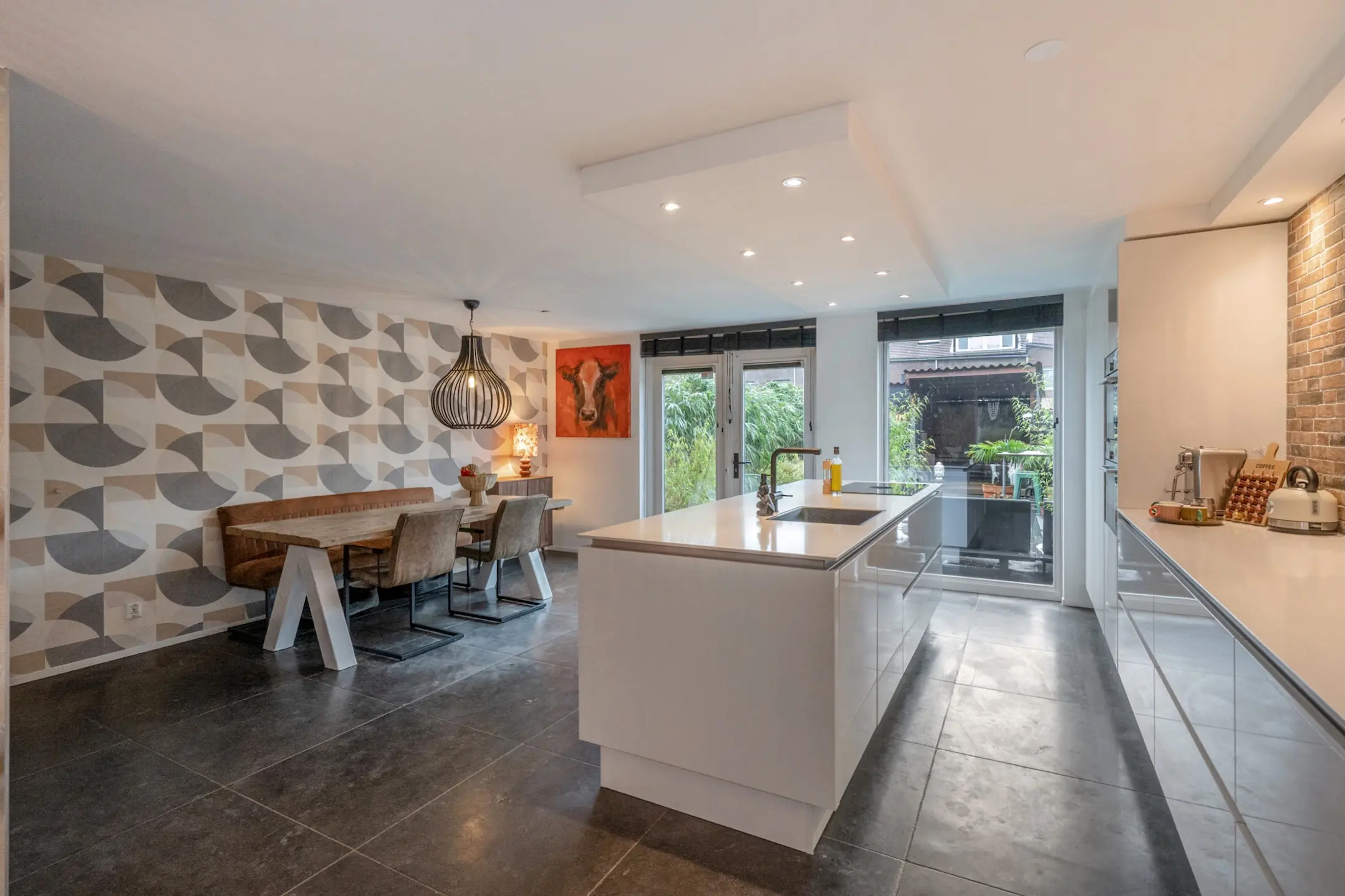Dit 4-laagse HERENHUIS heeft een woonoppervlak van ca. 156m2 en beschikt o.a. over een SFEERVOLLE woon-/eetkamer, MODERNE grote woonkeuken (incl. inbouwapparatuur) met kook-/werkeiland, MOOIE voor- en achtertuin, totaal 4 RUIME slaapkamers, MODERNE badkamer met o.a. een WALK-IN SHOWER met RAINSHOWER, GROTE inpandige berging (ideaal voor een 2e badkamer), een 5E SLAAPKAMER en een aparte WASRUIMTE op de 3e verdieping.