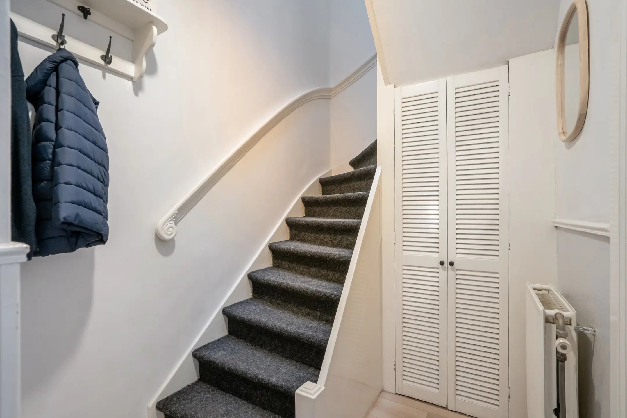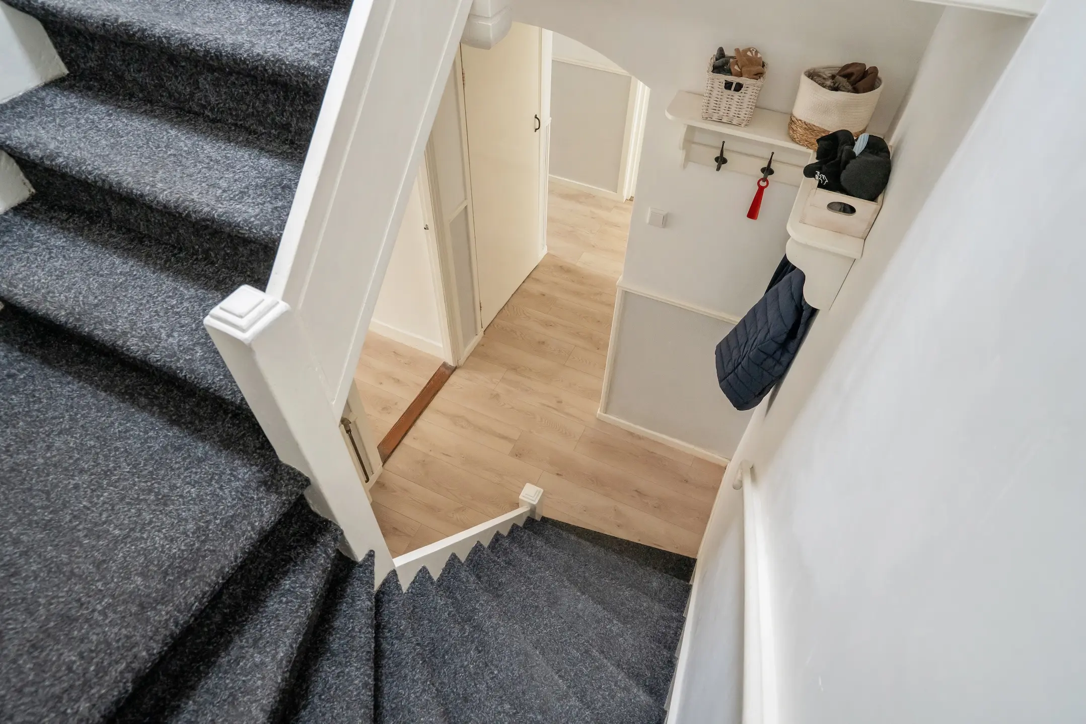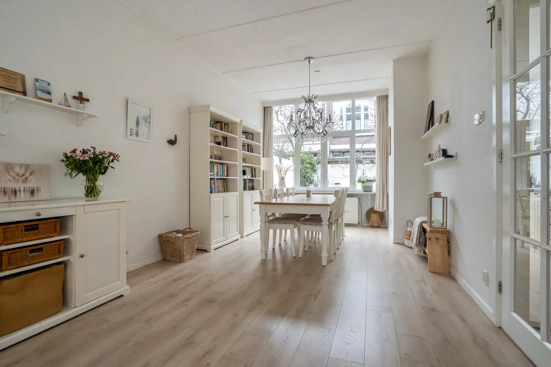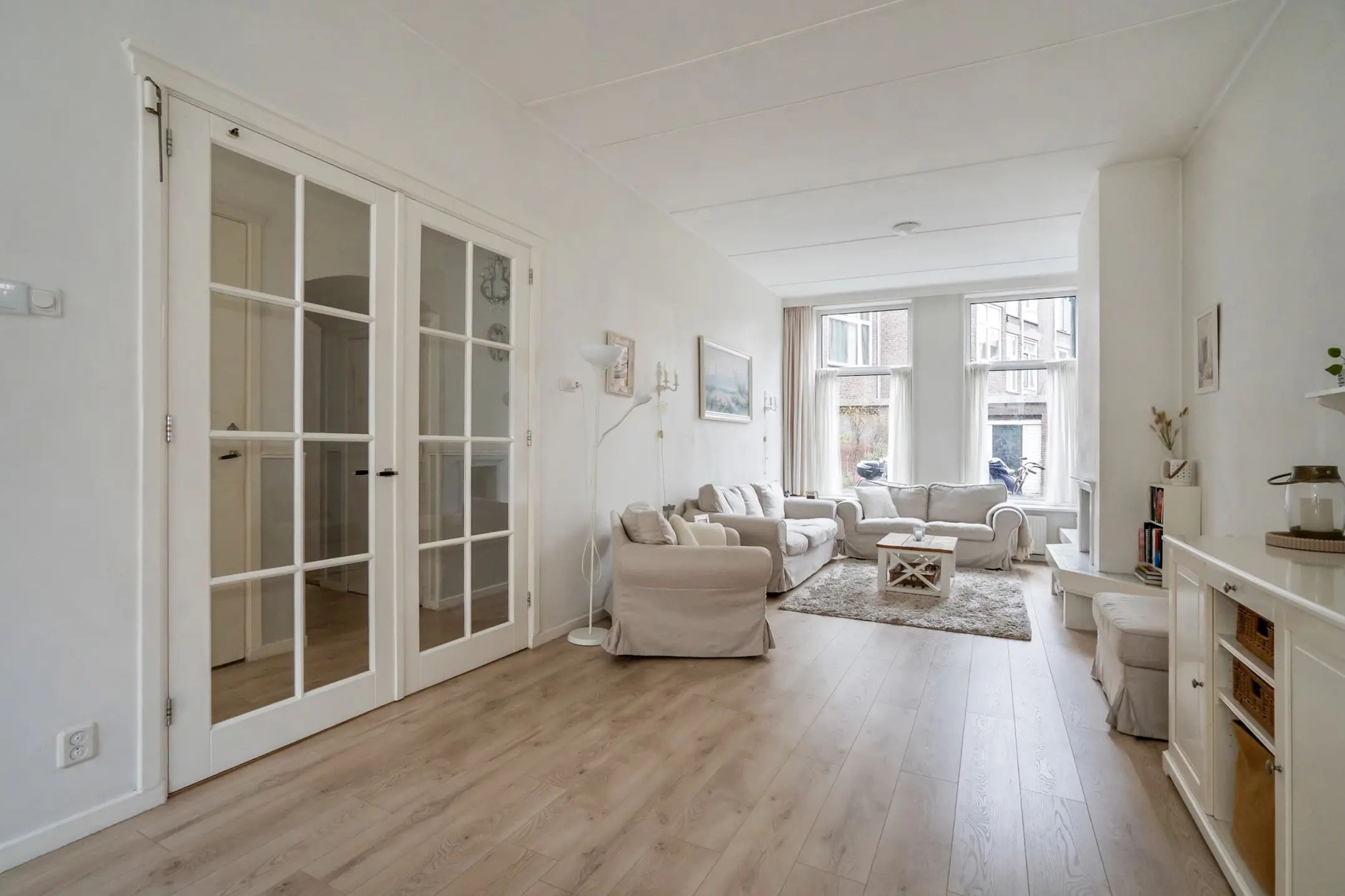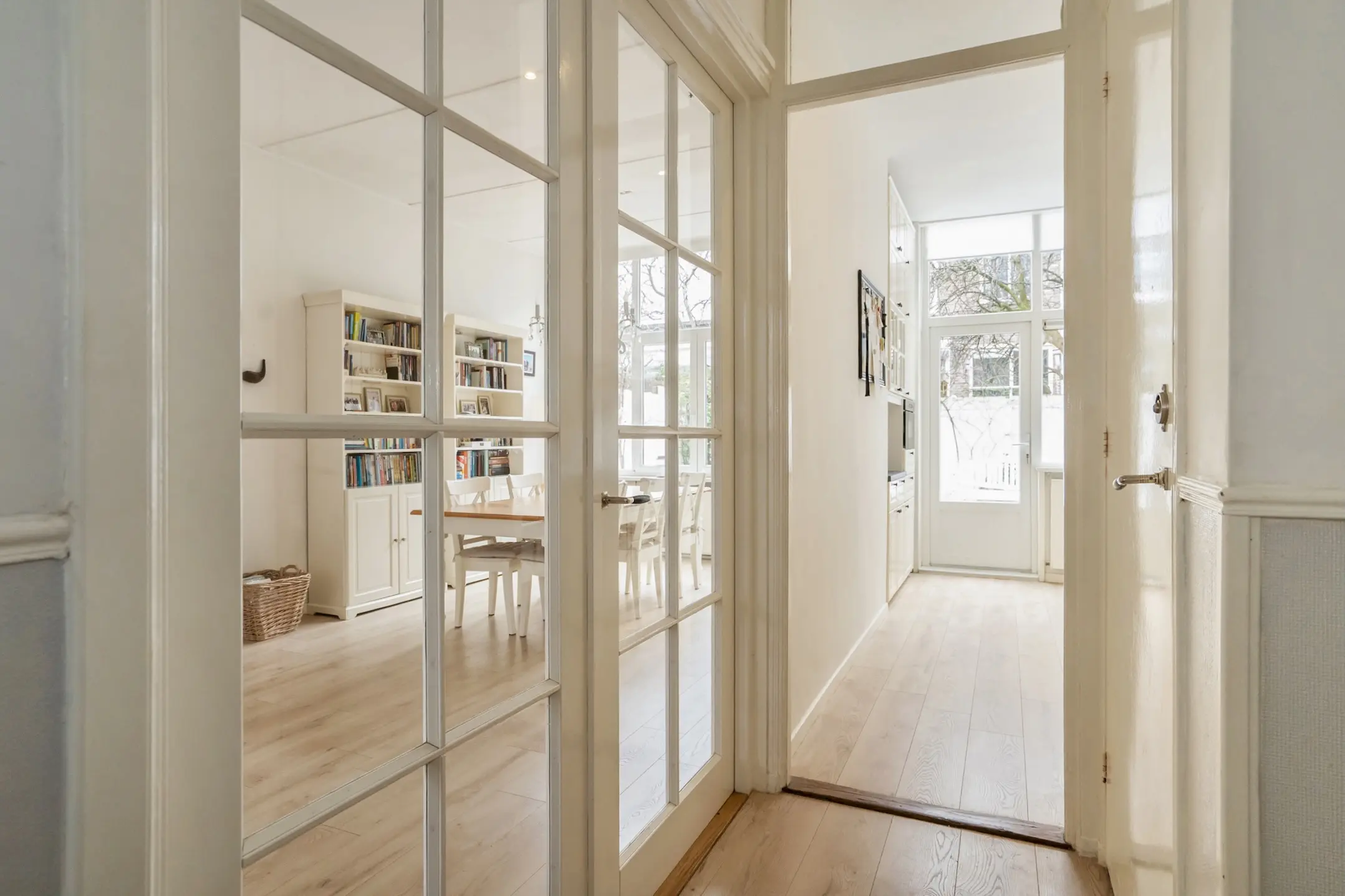 De entree bevindt zich op straatniveau. Via het tochtportaal bereikt u de hal, waar zich een separaat modern toilet met fontein (2025) bevindt. Vanuit de hal geven deuren toegang tot de woon-/eetkamer, die dankzij de grote ramen aan twee zijden veel lichtinval heeft.
