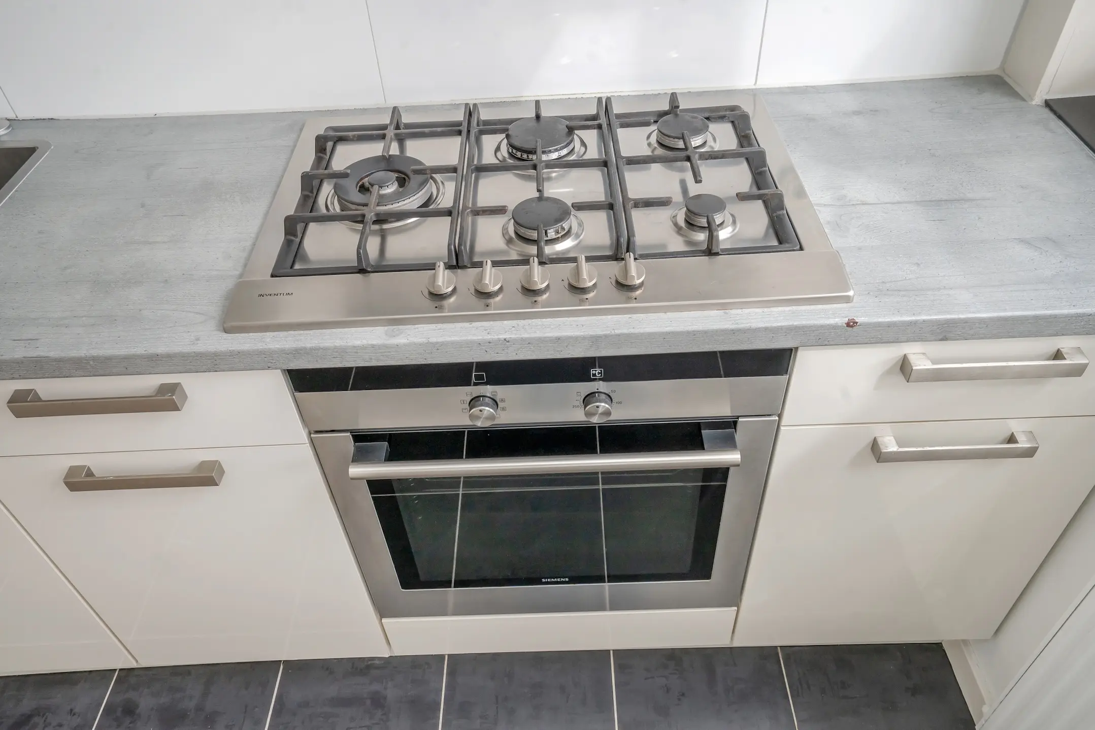 De goed onderhouden, L-vormige keuken heeft een plavuizen vloer en is voorzien van diverse inbouwapparatuur, namelijk: een 5-pits gasfornuis met bijbehorende afzuiginstallatie, oven, koelkast, vriezer, spoelbak met mengkraan en vaatwasser.