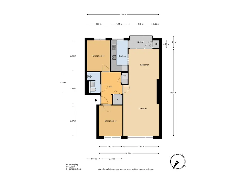 Bovenstaande informatie is door ons met de grootst mogelijke zorgvuldigheid samengesteld. Ons kantoor aanvaardt echter geen enkele aansprakelijkheid voor onvolledigheid, onjuistheid of andere fouten, noch voor de gevolgen daarvan. Alle opgegeven maten en oppervlakten zijn indicatief. De woning is gemeten conform de Meetinstructie, die is gebaseerd op de normen van NEN 2580. De Meetinstructie is bedoeld om een eenduidigere manier van meten toe te passen en een indicatie te geven van de gebruiksoppervlakte. Er kunnen echter verschillen in meetuitkomsten optreden door bijvoorbeeld interpretatieverschillen, afrondingen of beperkingen bij het uitvoeren van de meting. Hoewel wij de woning zorgvuldig hebben opgemeten, wordt noch door ons, noch door de verkoper enige aansprakelijkheid aanvaard voor afwijkingen in de opgegeven maten. Koper wordt in de gelegenheid gesteld om de opgegeven maten te (laten) controleren.