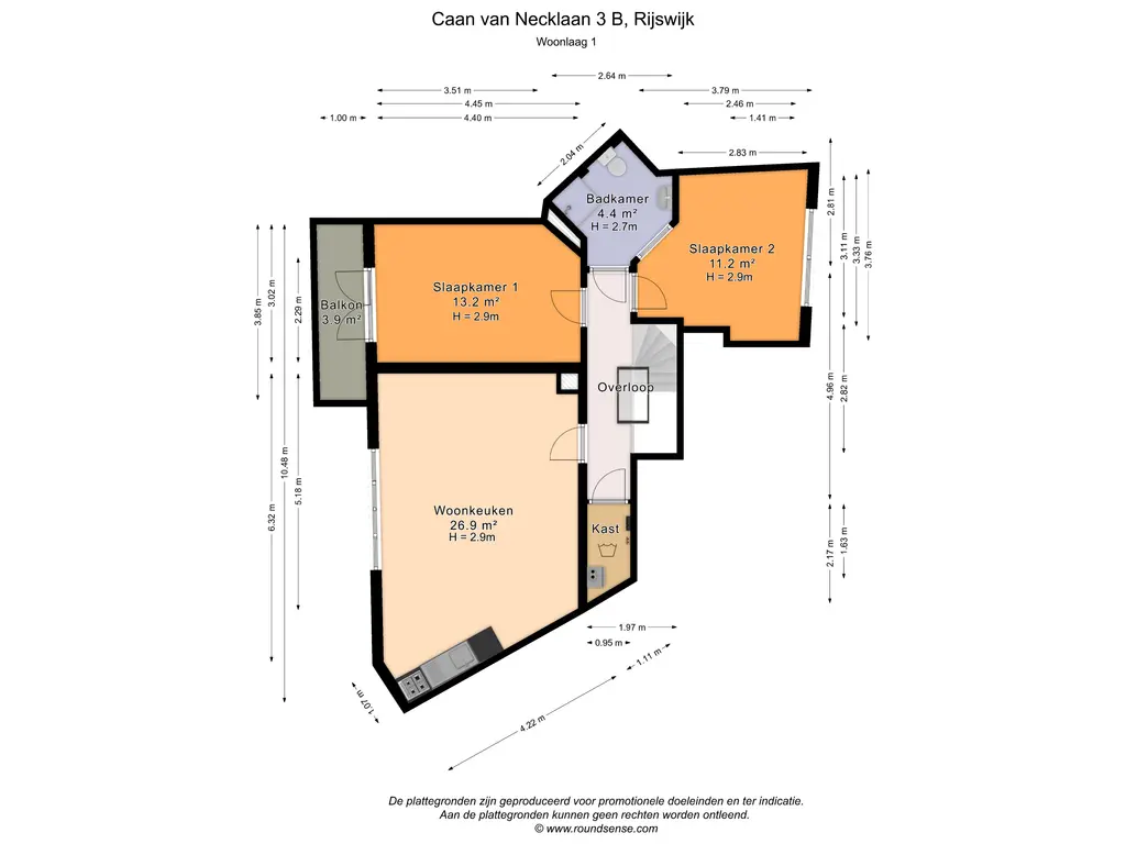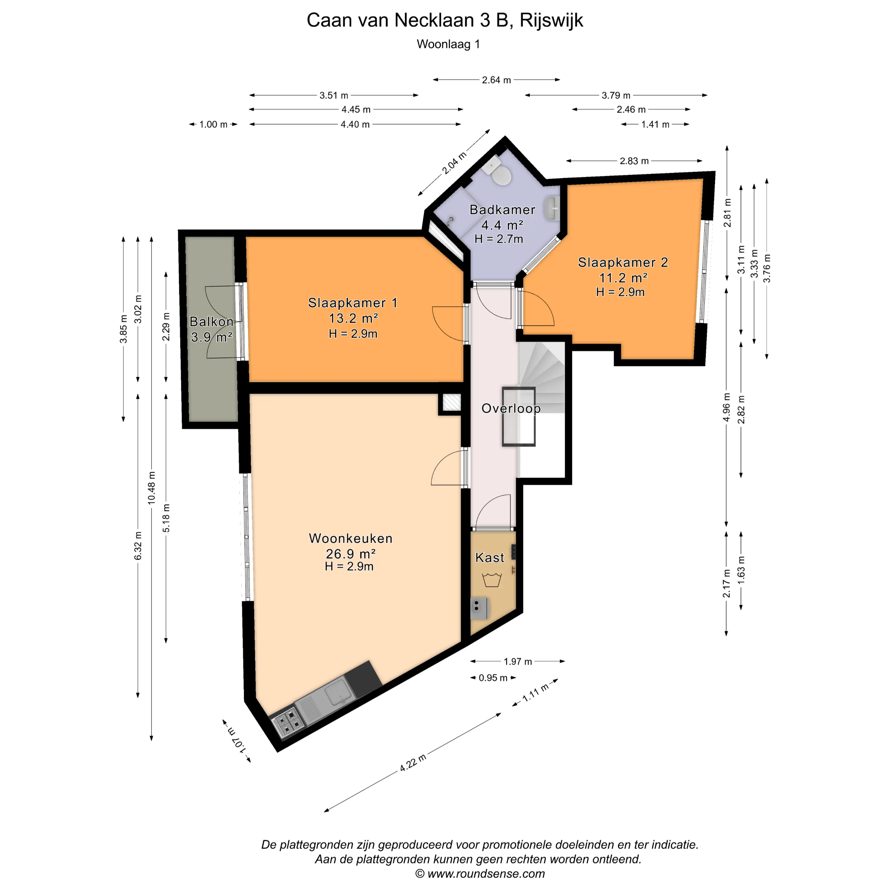 Bovenstaande informatie is door ons met de hoogst nodige zorgvuldigheid samengesteld. Door ons wordt echter geen enkele aansprakelijkheid aanvaard voor enige onvolledigheid, onjuistheid of anderszins, dan wel de gevolgen daarvan. Alle opgegeven maten en oppervlakten zijn indicatief. De woning is gemeten met gebruikmaking van de Meetinstructie, die is gebaseerd op de normen zoals vastgelegd in NEN 2580. De Meetinstructie is bedoeld om een meer eenduidige manier van meten toe te passen voor het geven van een indicatie van gebruiksoppervlakte. De Meetinstructie sluit verschillen in meetuitkomsten niet volledig uit, door bijvoorbeeld interpretatieverschillen, afrondingen of beperkingen bij het uitvoeren van de meting. Hoewel wij de woning zorgvuldig hebben opgemeten, wordt noch door ons kantoor, noch door de verkoper enige aansprakelijkheid aanvaard voor afwijkingen in de opgegeven maten. Koper wordt in de gelegenheid gesteld om de opgegeven maten te (laten) controleren.