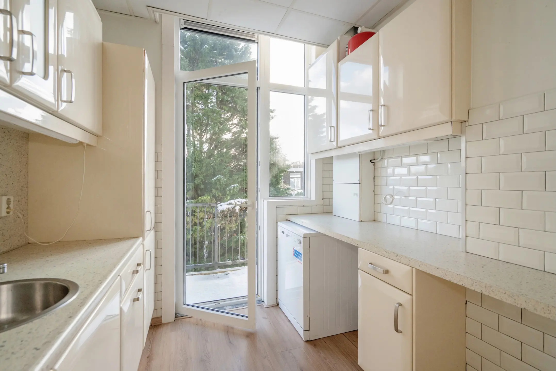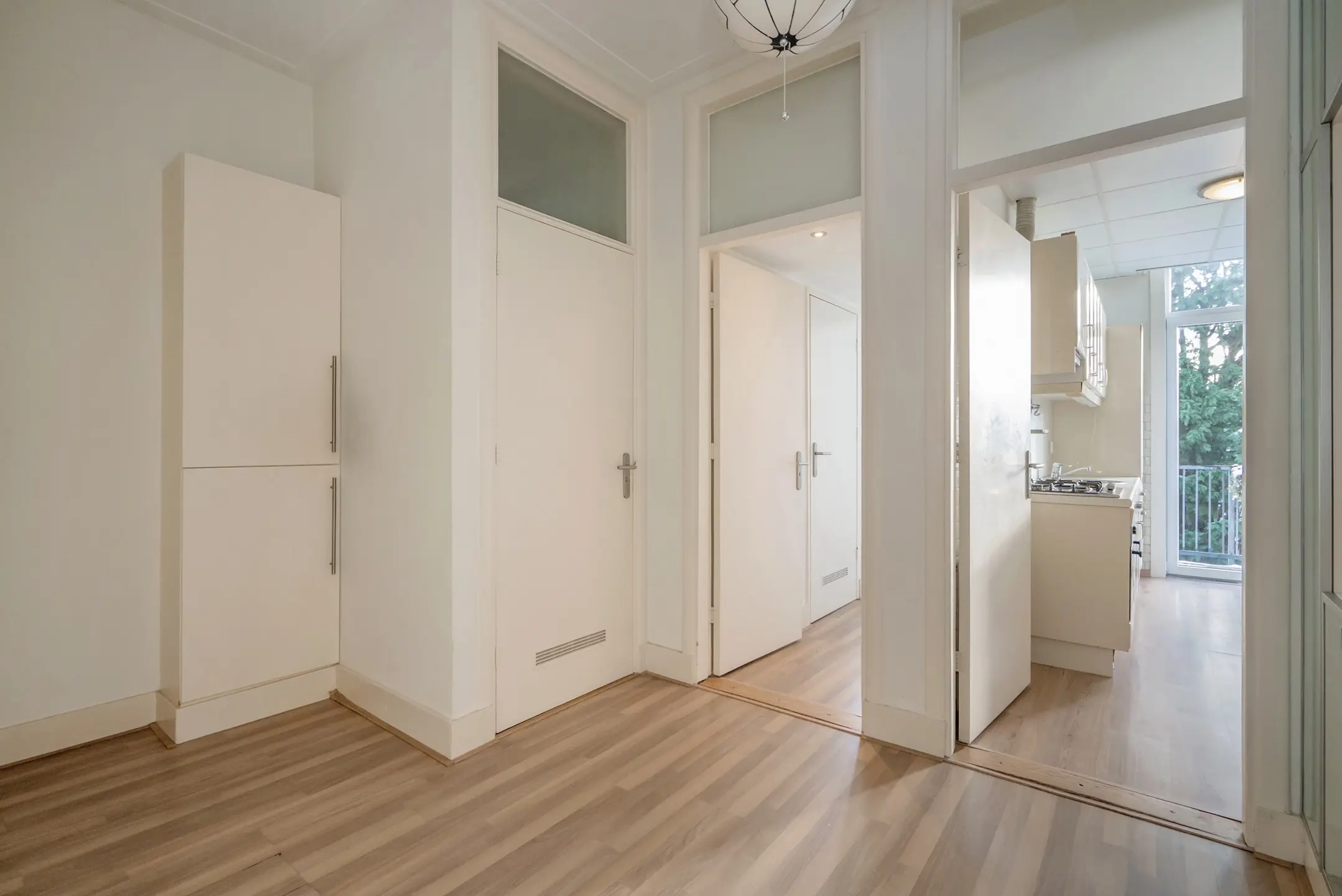 Deur naar het balkon aan de achterzijde op het zuiden (gehele dag zon) met mooi uitzicht op de achterliggende tuinen.