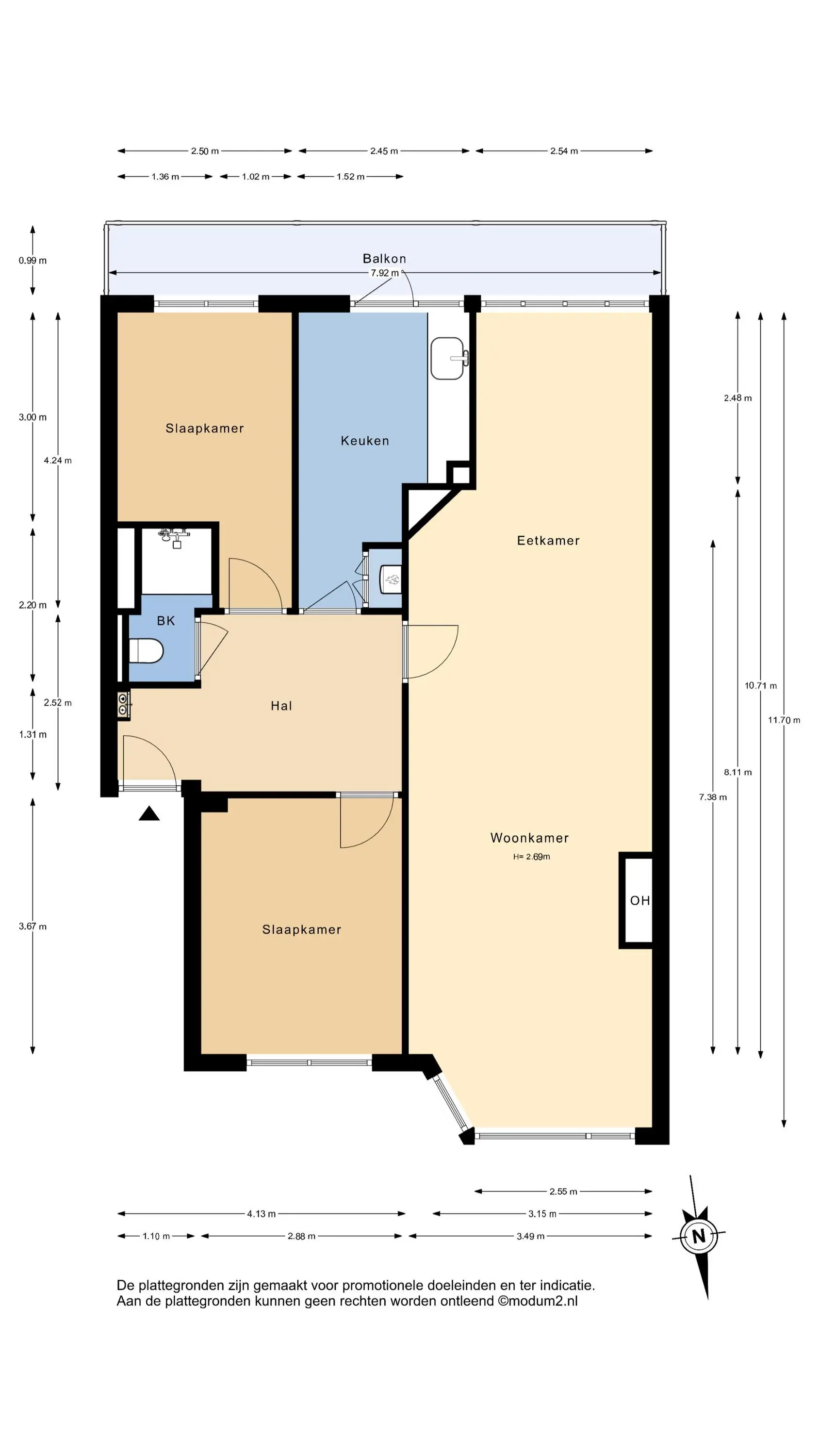 Hoewel wij de woning zorgvuldig hebben opgemeten, aanvaarden wij geen aansprakelijkheid voor afwijkingen in de opgegeven maten. De koper krijgt de gelegenheid om de opgegeven maten (laten) controleren.