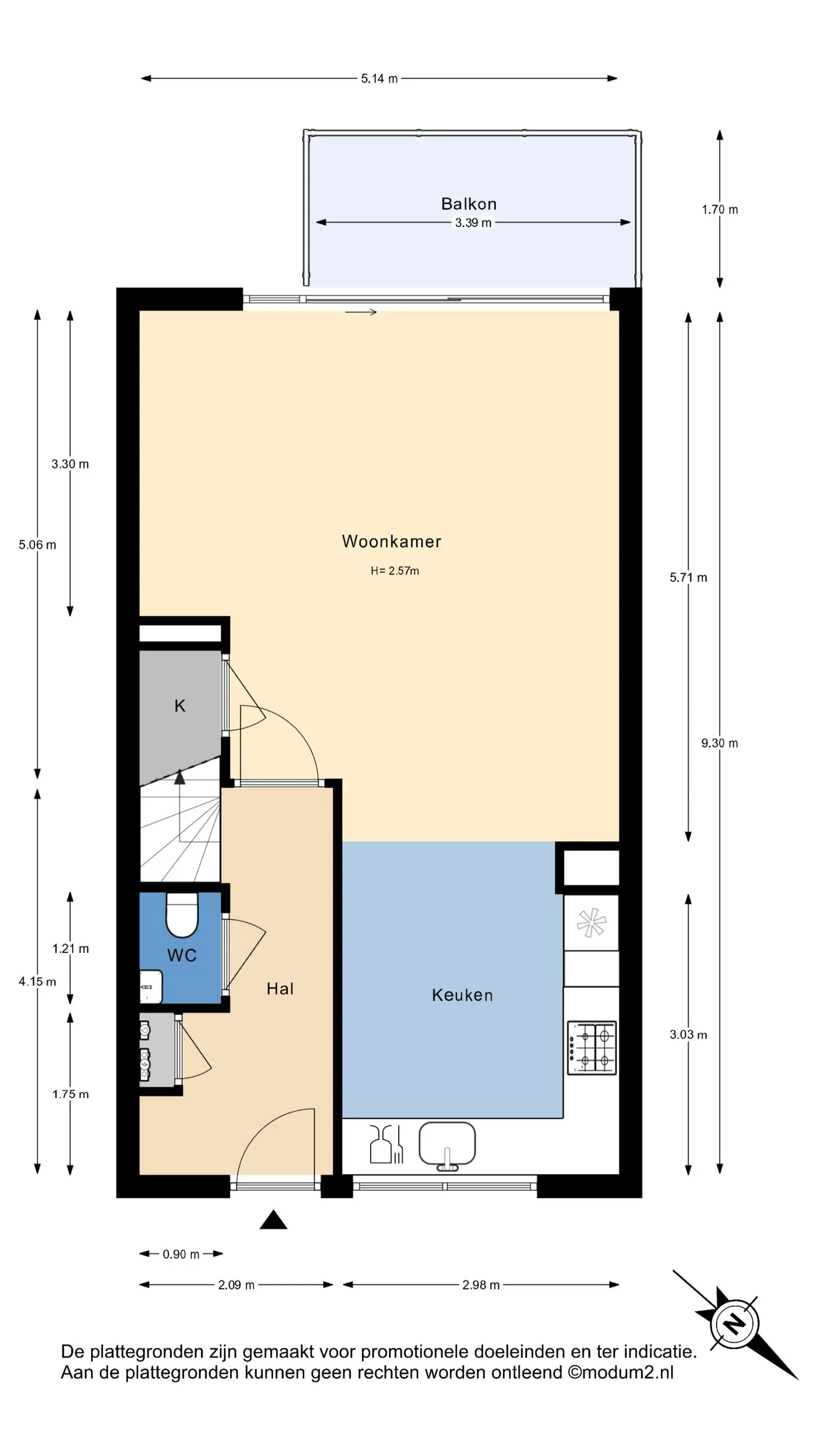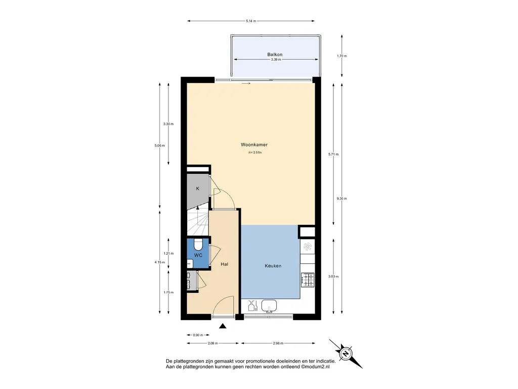Bovenstaande informatie is door ons met de hoogst nodige zorgvuldigheid samengesteld. Door ons wordt echter geen enkele aansprakelijkheid aanvaard voor enige onvolledigheid, onjuistheid of anderszins, dan wel de gevolgen daarvan. Alle opgegeven maten en oppervlakten zijn indicatief. De woning is gemeten met gebruikmaking van de Meetinstructie, die is gebaseerd op de normen zoals vastgelegd in NEN 2580. De Meetinstructie is bedoeld om een meer eenduidige manier van meten toe te passen voor het geven van een indicatie van gebruiksoppervlakte. De Meetinstructie sluit verschillen in meetuitkomsten niet volledig uit, door bijvoorbeeld interpretatieverschillen, afrondingen of beperkingen bij het uitvoeren van de meting. Hoewel wij de woning zorgvuldig hebben opgemeten, wordt noch door ons kantoor, noch door de verkoper enige aansprakelijkheid aanvaard voor afwijkingen in de opgegeven maten. Koper wordt in de gelegenheid gesteld om de opgegeven maten te (laten) controleren.