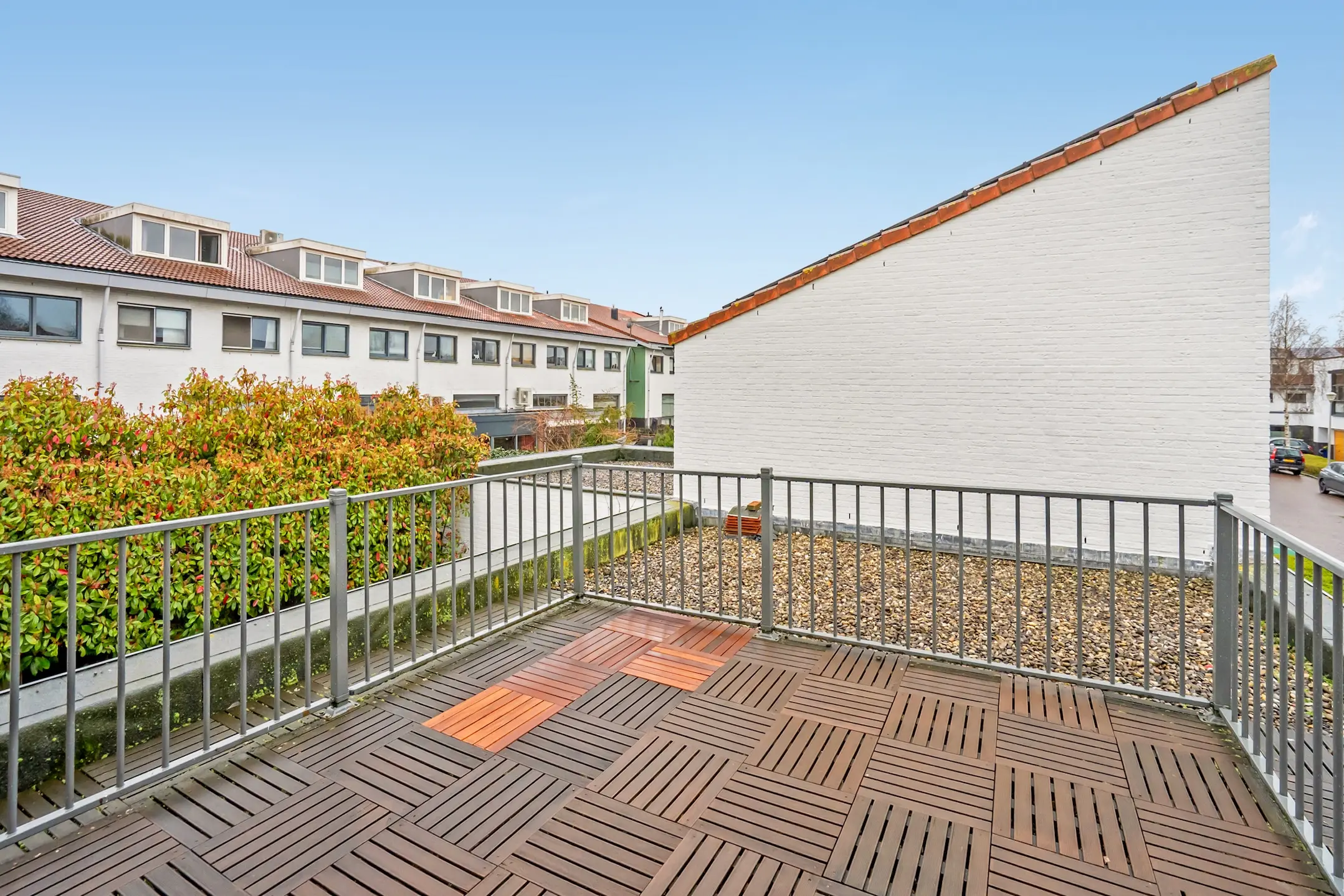 Op de overloop bevinden zich een bergkast, een cv-ketel (Vaillant, 2021), een mechanisch ventilatiesysteem, een rookmelder en een koolstofmonoxidemelder. Er is tevens een aparte bergkast aanwezig. Vanuit hier heeft u toegang tot een ruim dakterras met houten vlonders, gelegen op het zuidwesten.