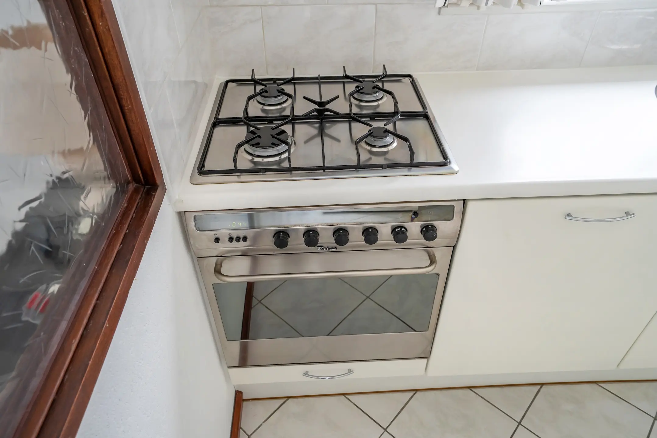 De woning beschikt over een open woonkeuken met veel bergruimte en diverse apparatuur, waaronder een koelkast, vriezer, vaatwasser en een 4-pits gasfornuis met oven. Daarnaast zijn er twee spoelbakken aanwezig.