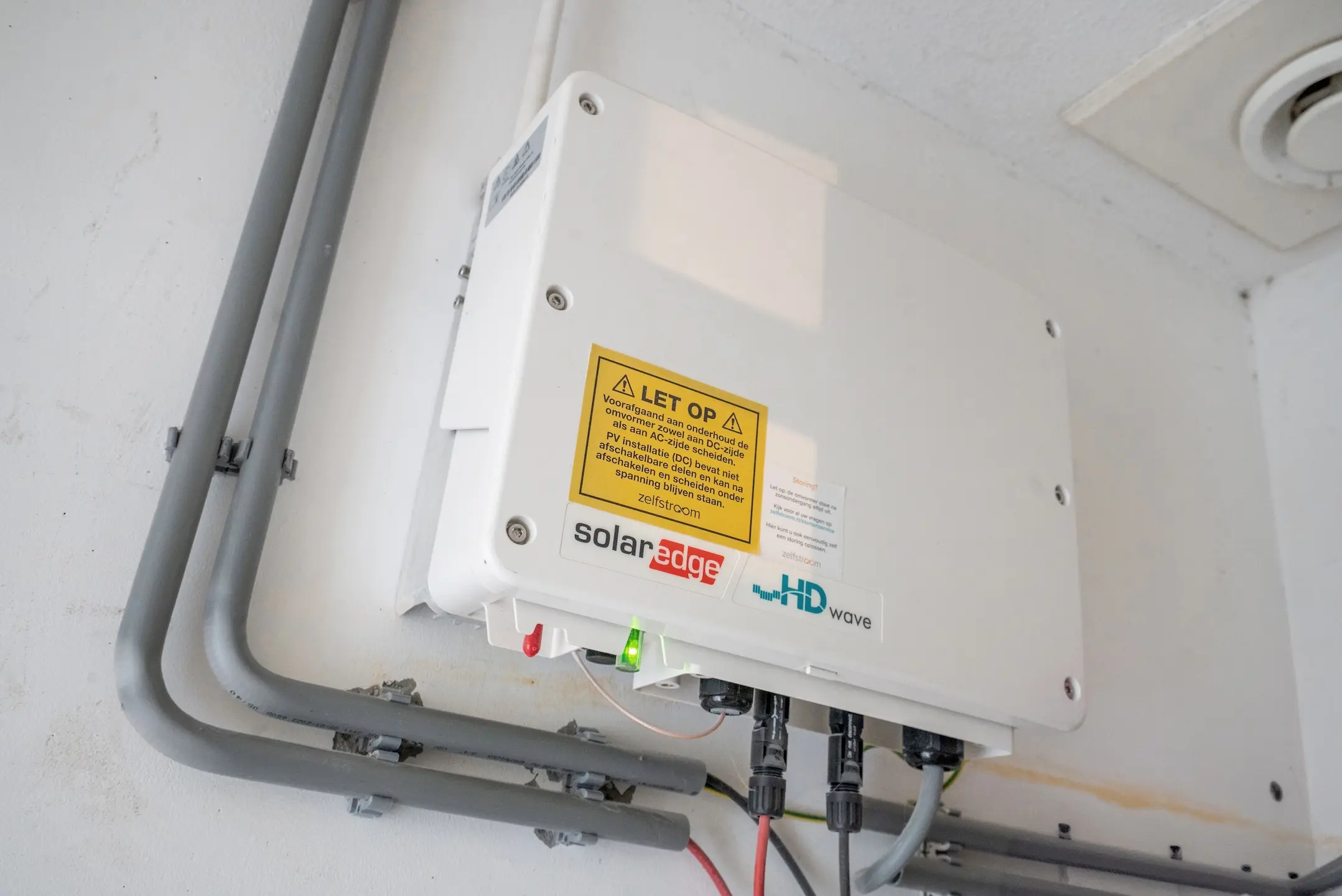Bereikbaar via vaste trap met verlichting. Overloop, wasruimte met opstelplaats voor wasmachine, droger en omvormer van de zonnepanelen.