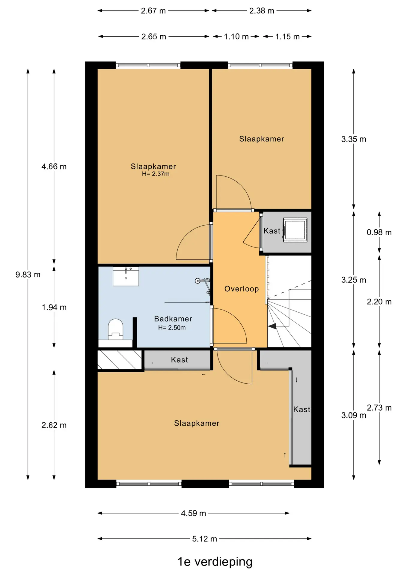 Bovenstaande informatie is met de grootst mogelijke zorgvuldigheid samengesteld. Er wordt echter geen aansprakelijkheid aanvaard voor enige onvolledigheid, onjuistheid of anderszins, noch voor de gevolgen daarvan. Alle opgegeven maten en oppervlakten zijn indicatief. De woning is gemeten met gebruikmaking van de Meetinstructie, gebaseerd op de NEN 2580-norm. Deze instructie is bedoeld om op eenduidige wijze een indicatie van de gebruiksoppervlakte te geven. De Meetinstructie sluit verschillen in meetuitkomsten niet volledig uit, bijvoorbeeld door interpretatieverschillen, afrondingen of beperkingen bij het uitvoeren van de meting. Hoewel wij de woning zorgvuldig hebben opgemeten, aanvaarden noch ons kantoor, noch de verkoper aansprakelijkheid voor eventuele afwijkingen in de opgegeven maten. Koper wordt in de gelegenheid gesteld de opgegeven maten te (laten) controleren