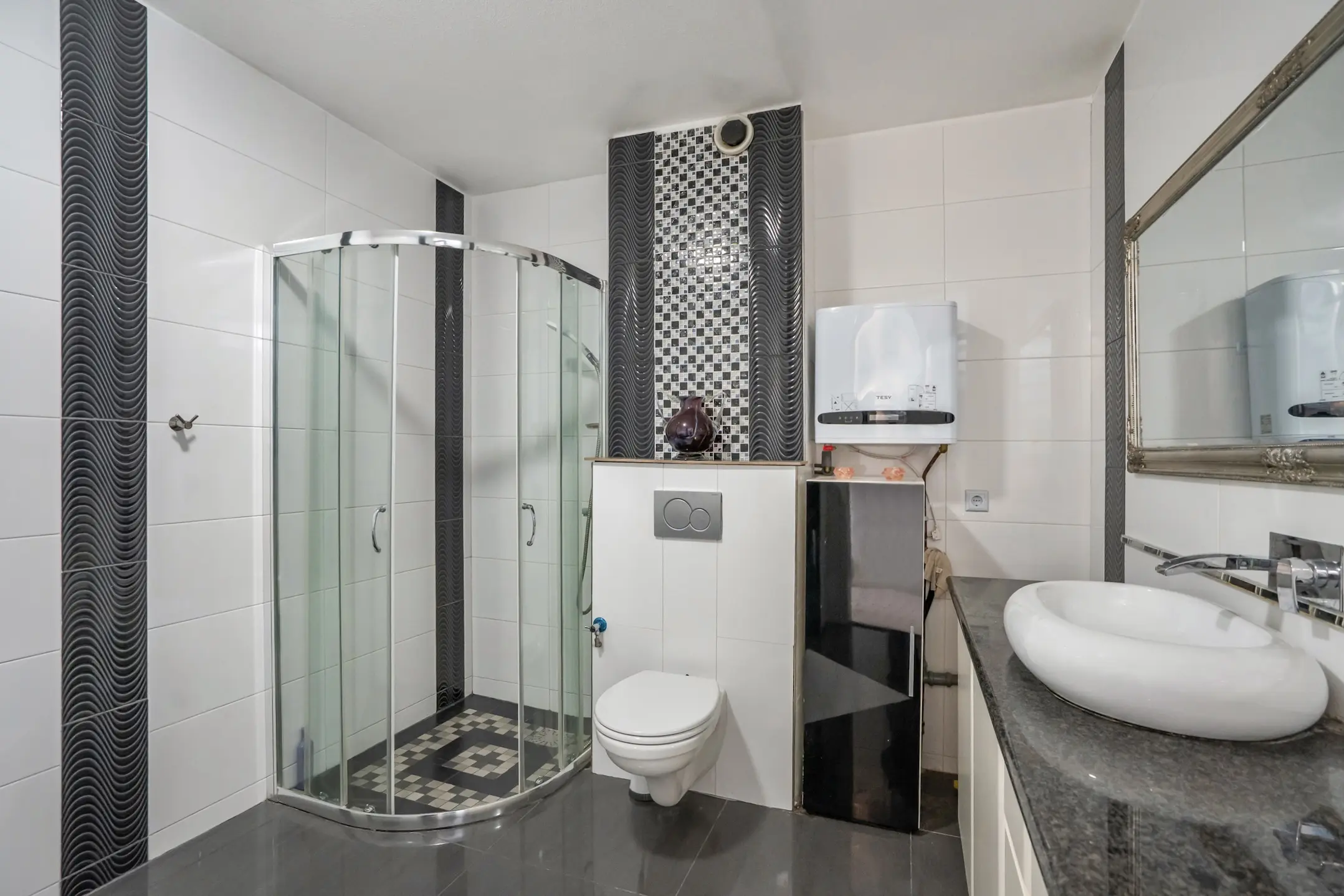 - Elektrische boiler in badkamer;
