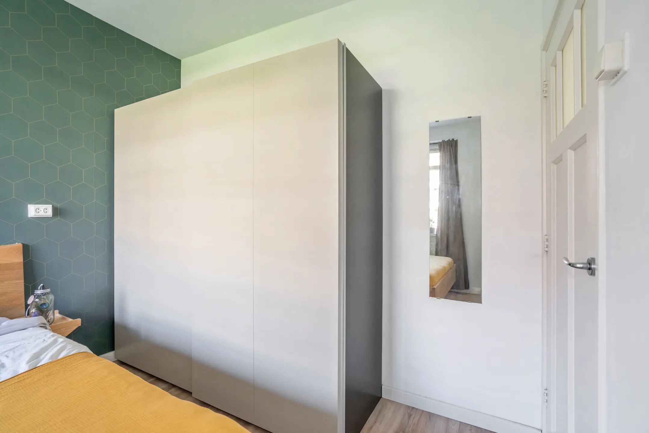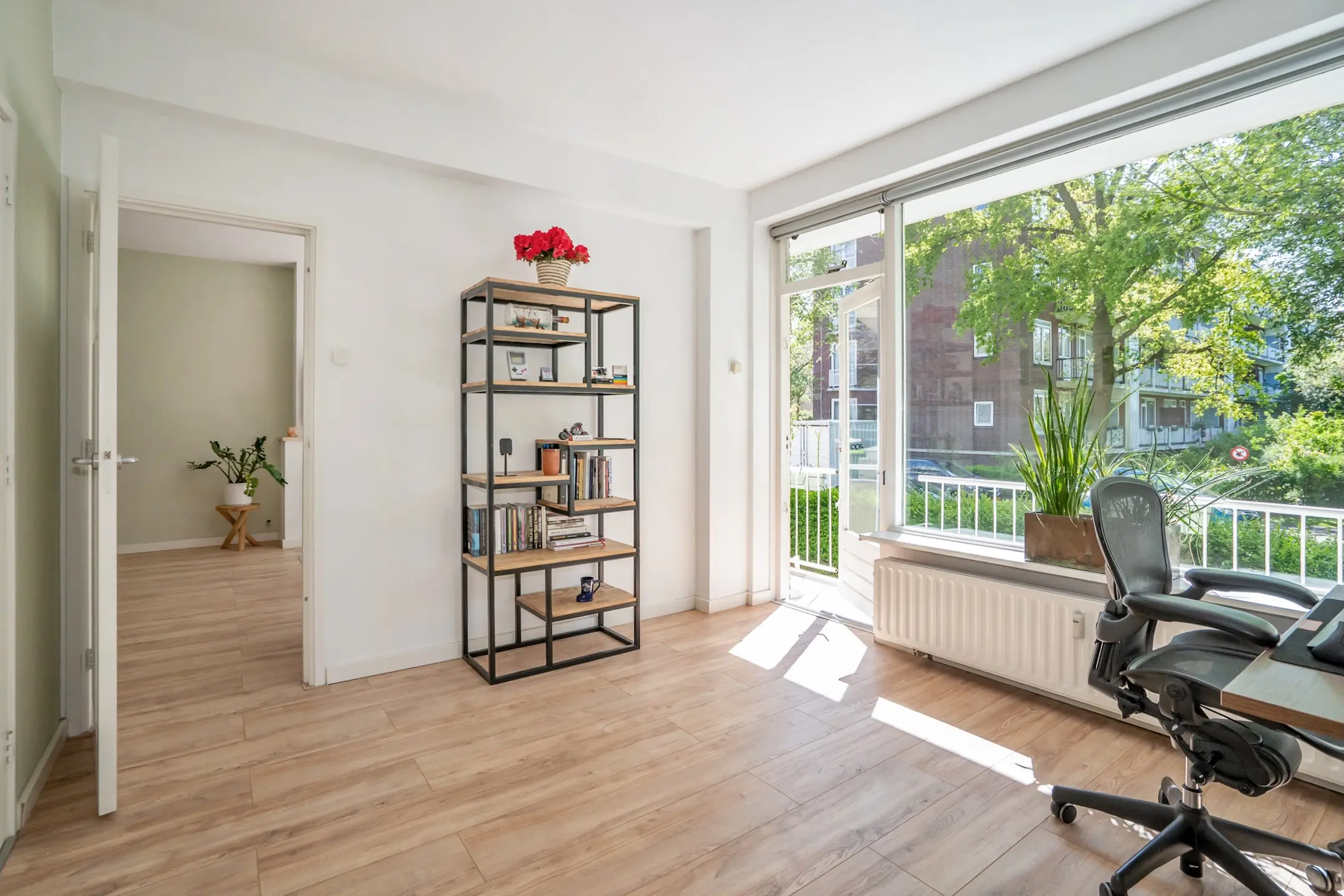Grenzend aan de woonkamer bevindt zich een tweede ruime slaapkamer, eveneens voorzien van een vaste kast en met directe toegang tot het balkon. Deze ruimte is flexibel in te delen, bijvoorbeeld als werk-, logeer- of hoofdslaapkamer.