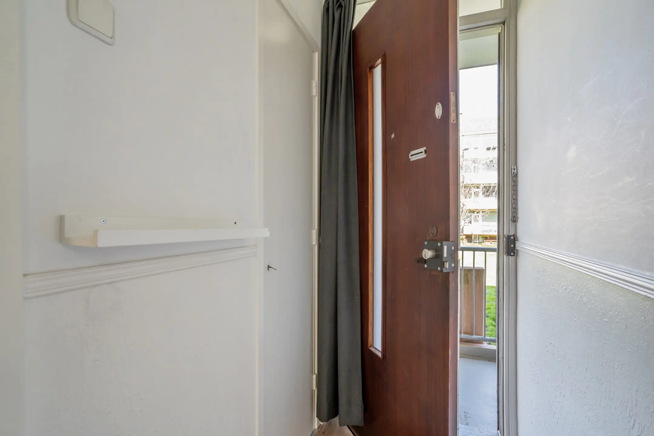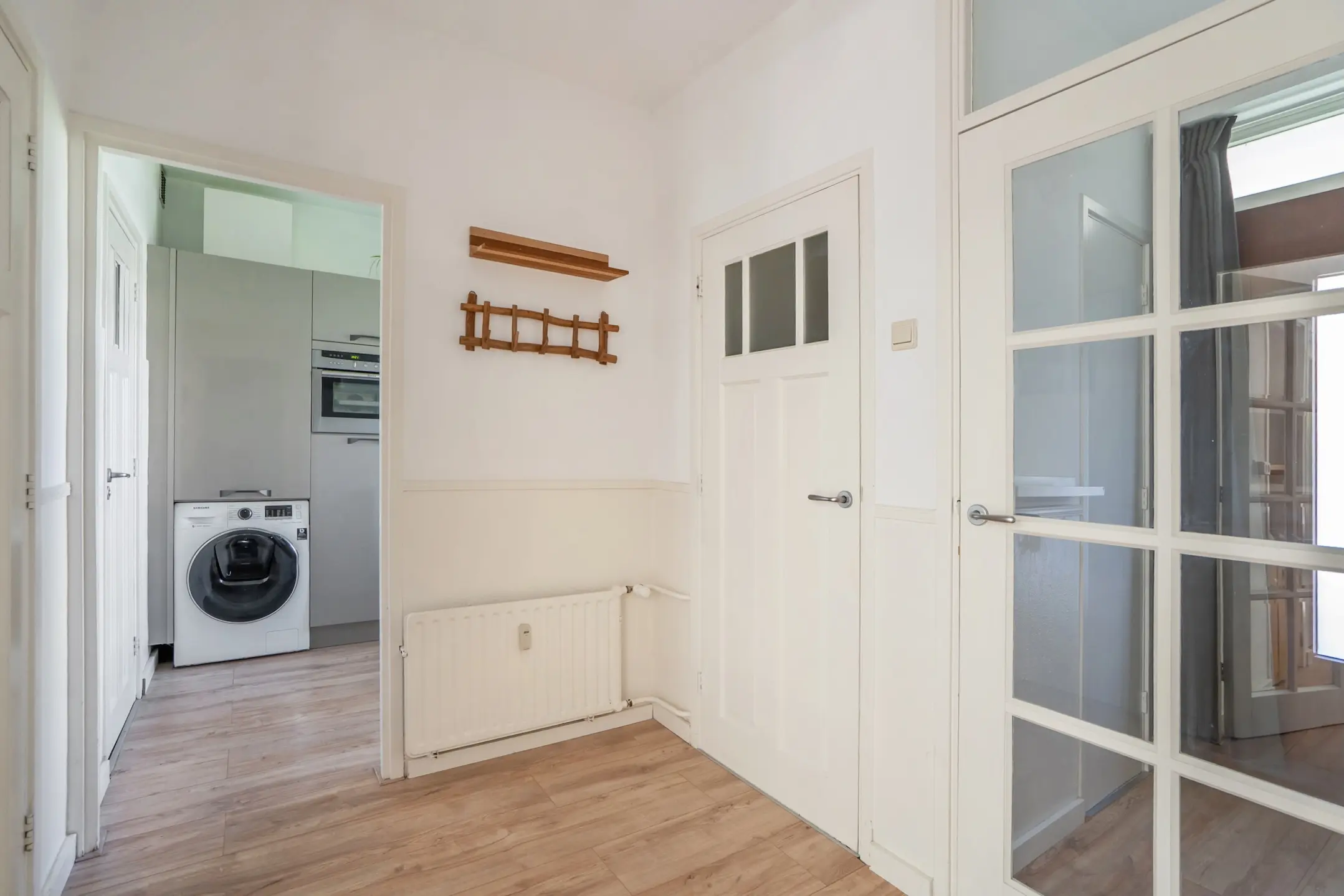 Via de galerij stap je de woning binnen in het tochtportaal met meterkast. De hal voelt direct ruim aan en beschikt over een royale vaste kast en een net separaat toilet. Aan de voorzijde van de woning bevindt zich een ruime slaapkamer, heerlijk licht en prettig van formaat.