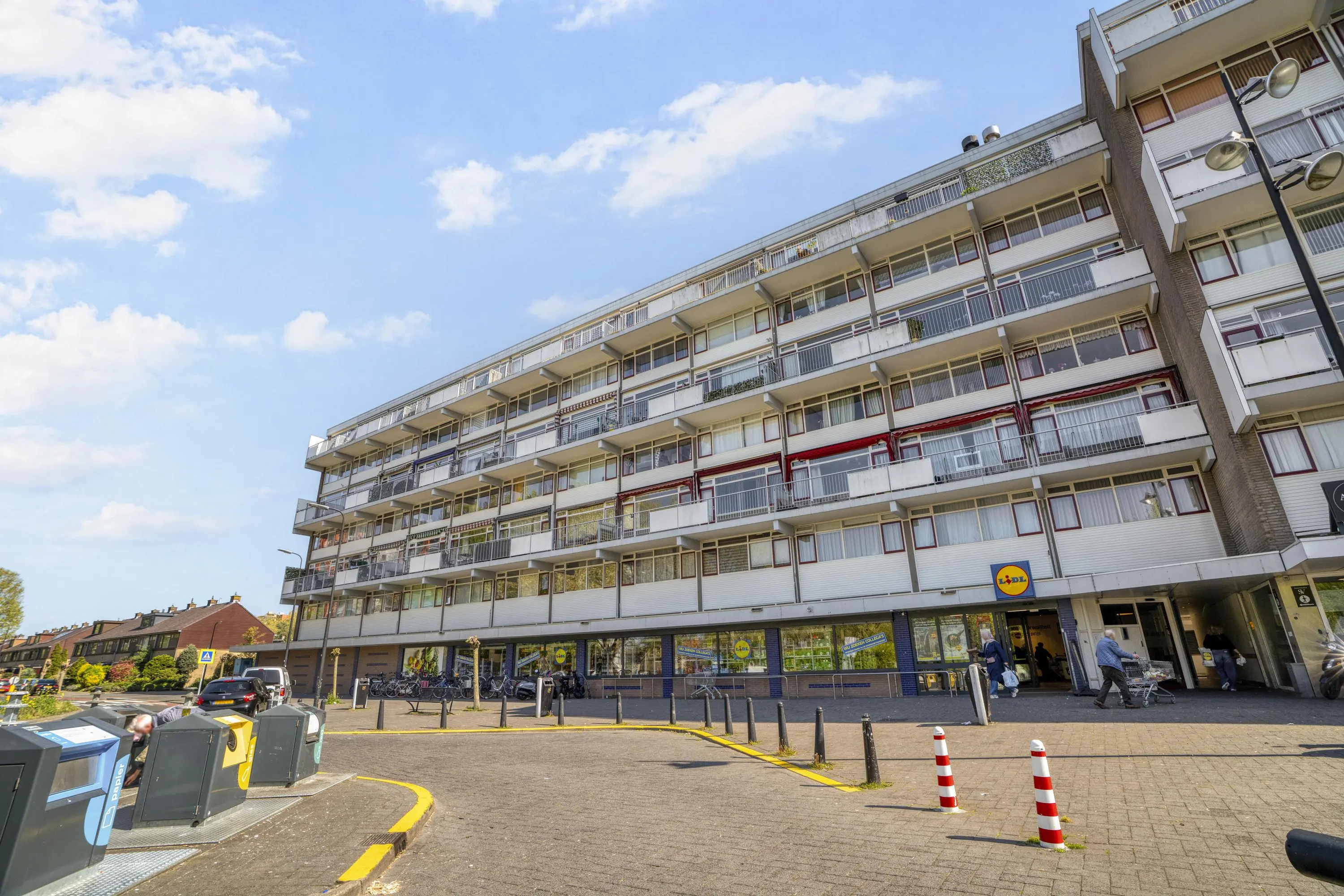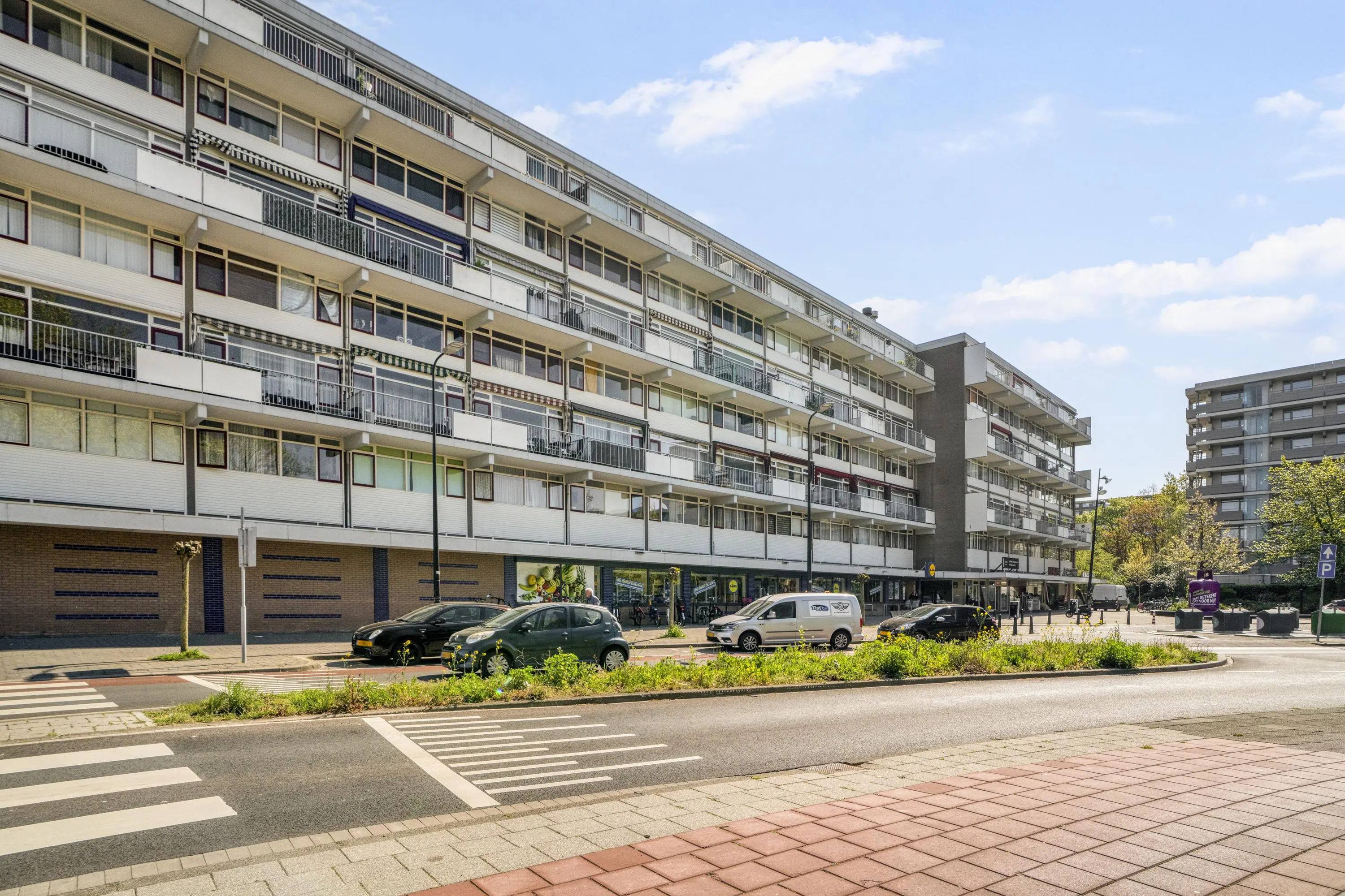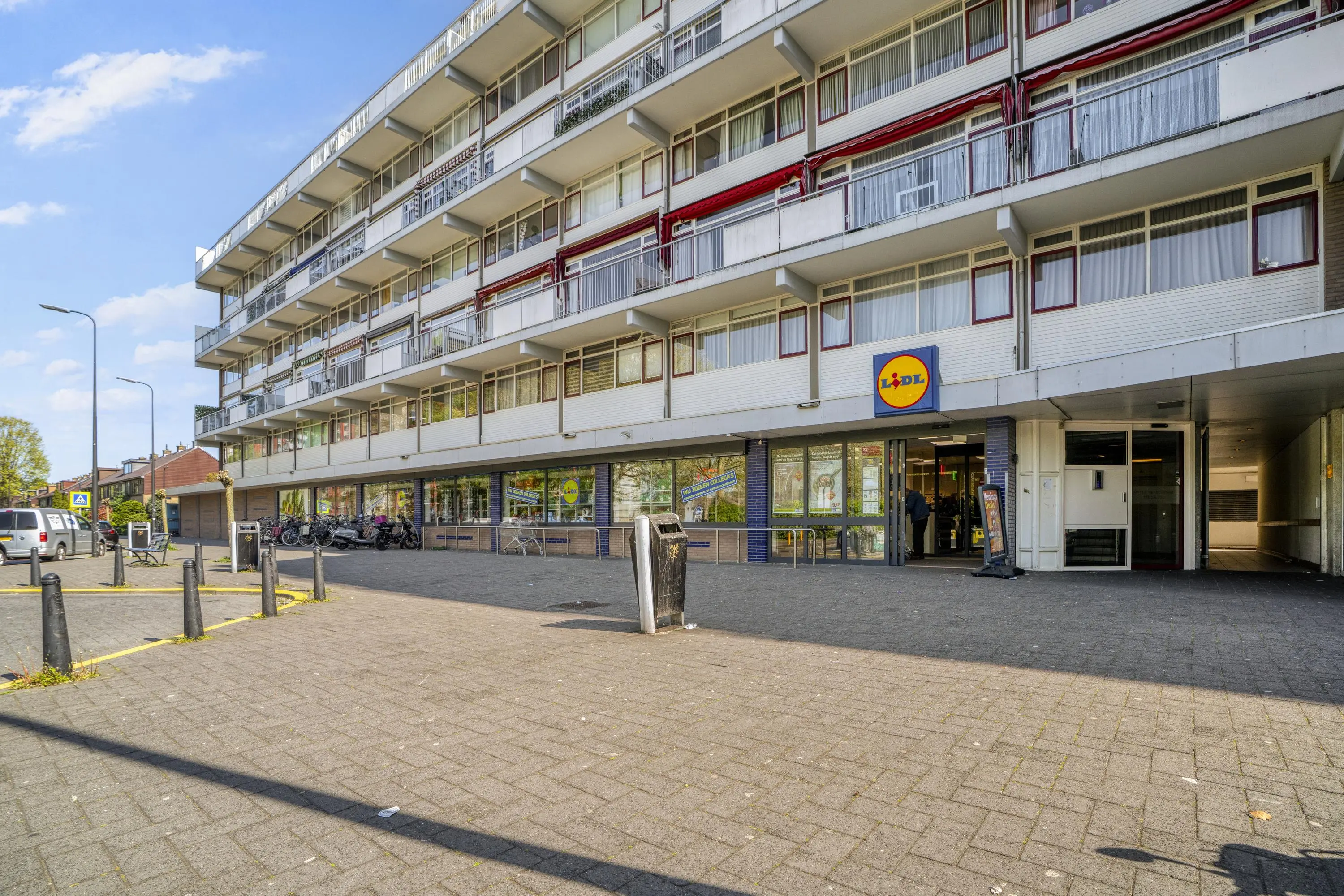 Het appartementencomplex is gunstig gelegen boven een kleinschalig winkelcentrum en biedt voldoende parkeergelegenheid op het achtergelegen parkeerterrein en de omliggende straten.