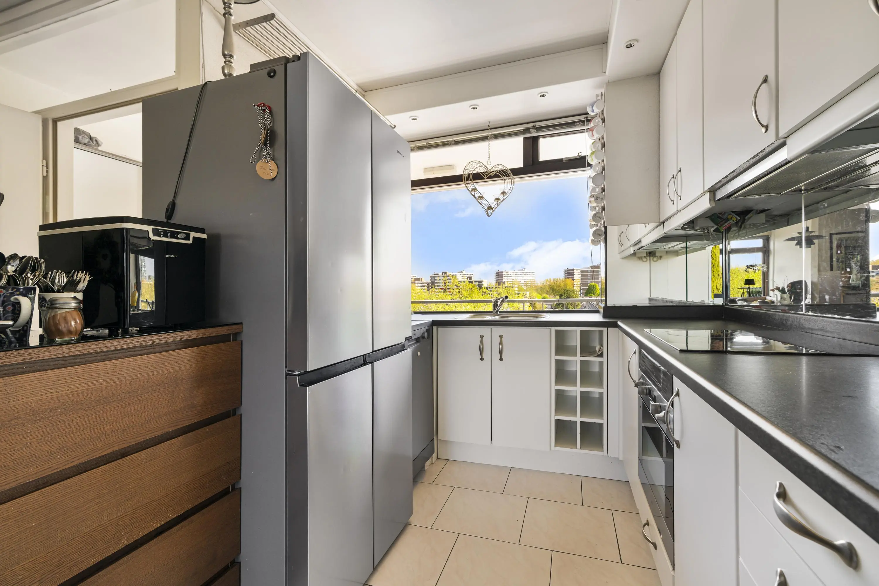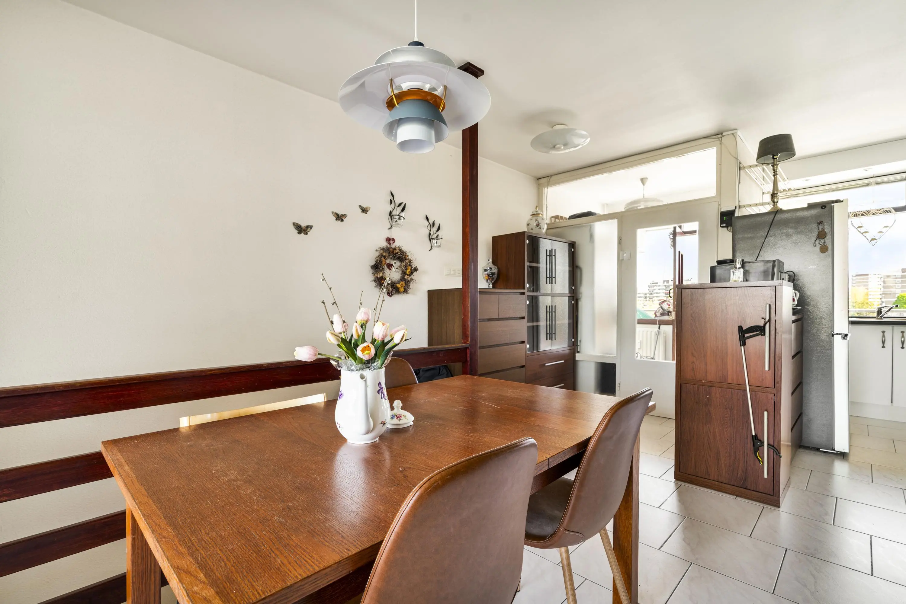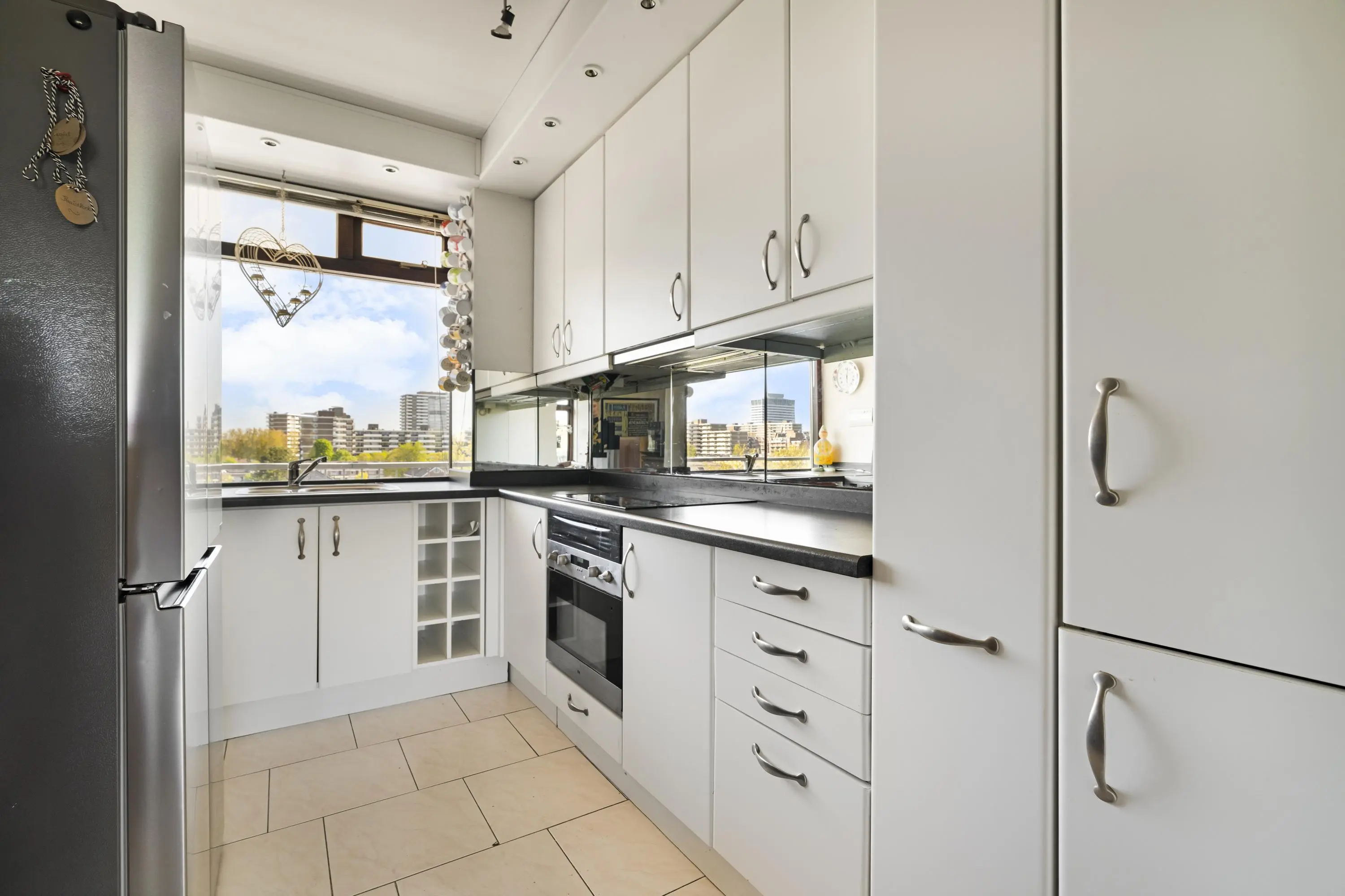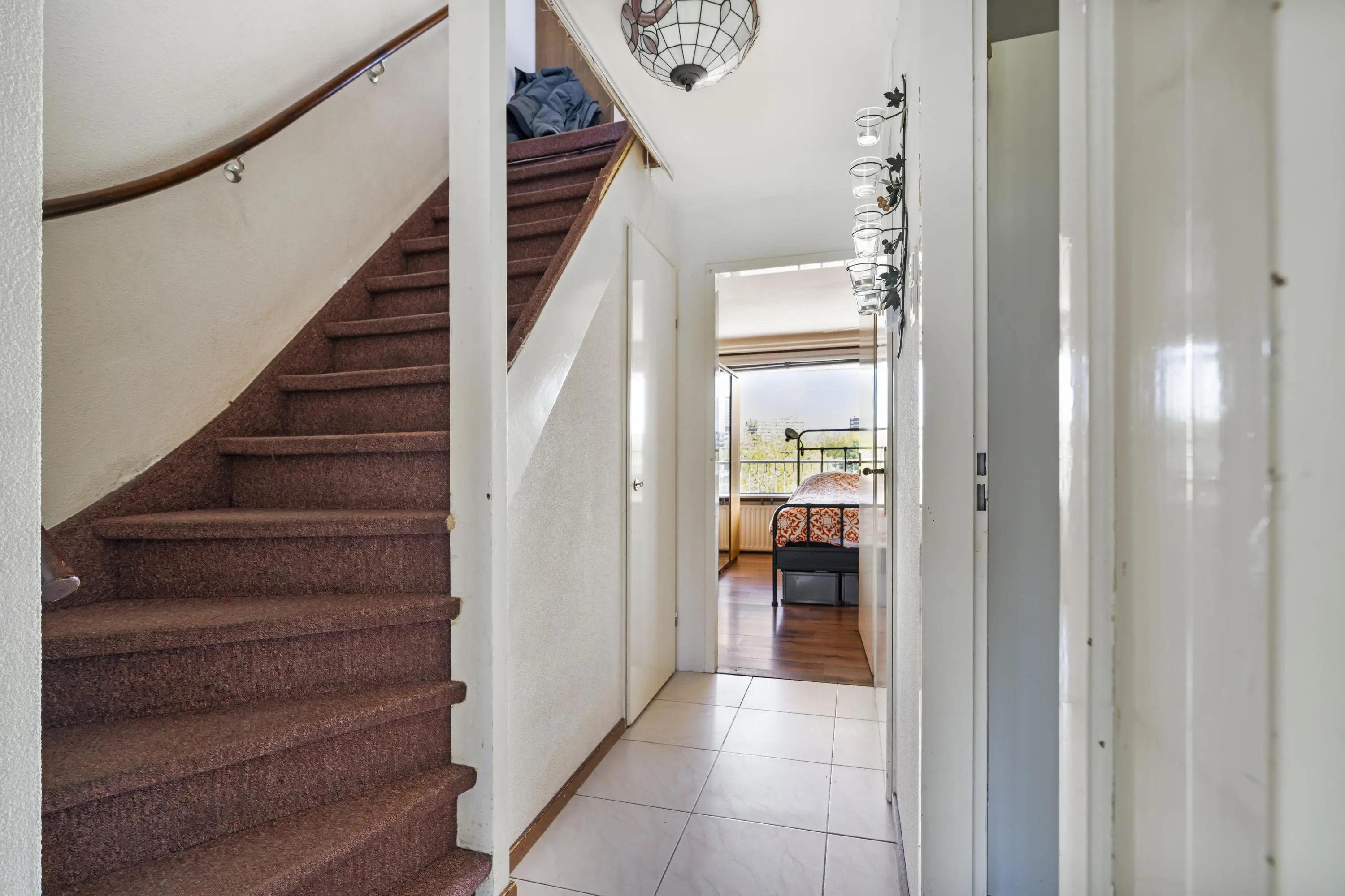 Deze zonnig gelegen woning ligt op de derde en vierde verdieping en heeft een weids uitzicht.