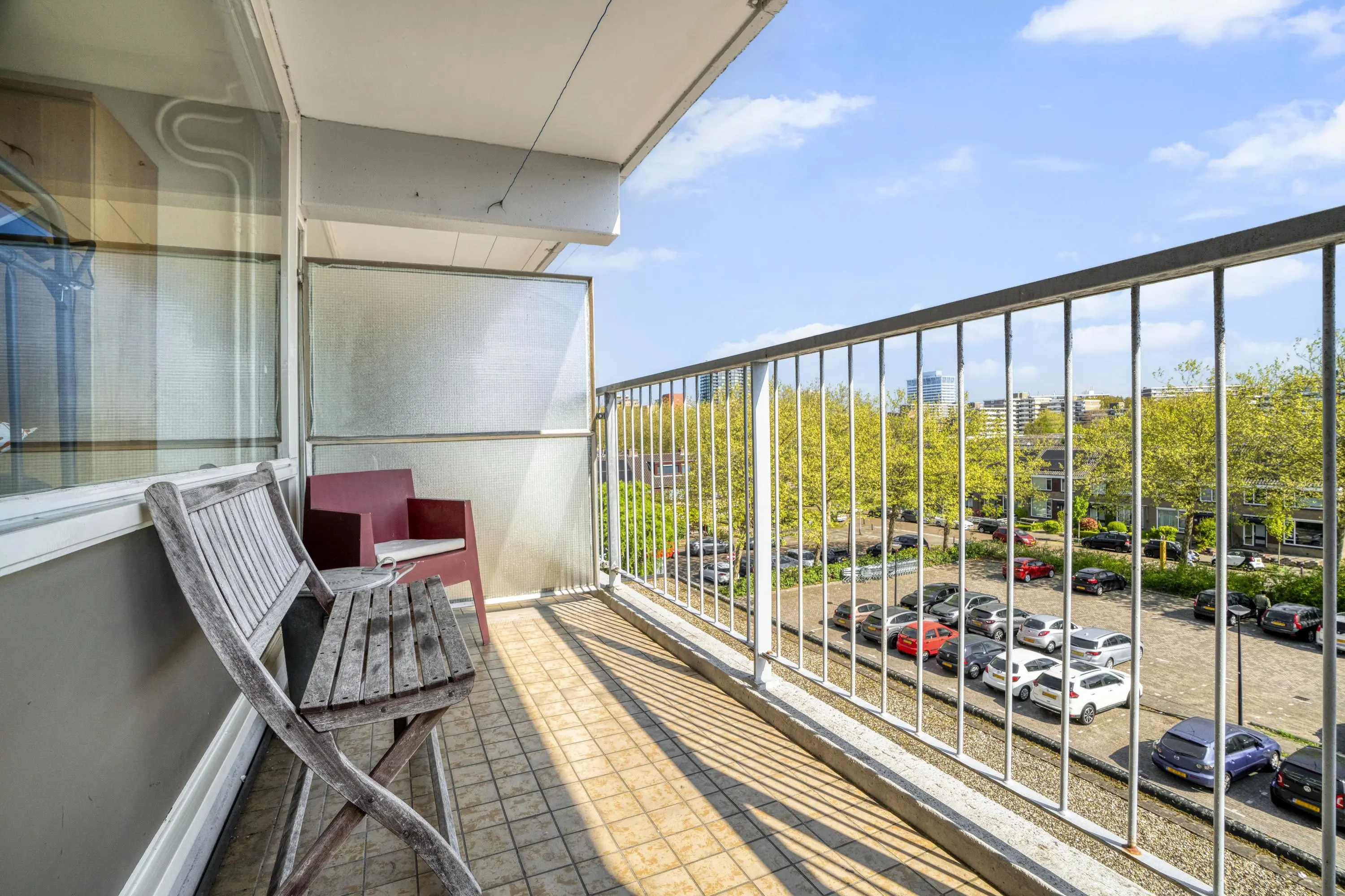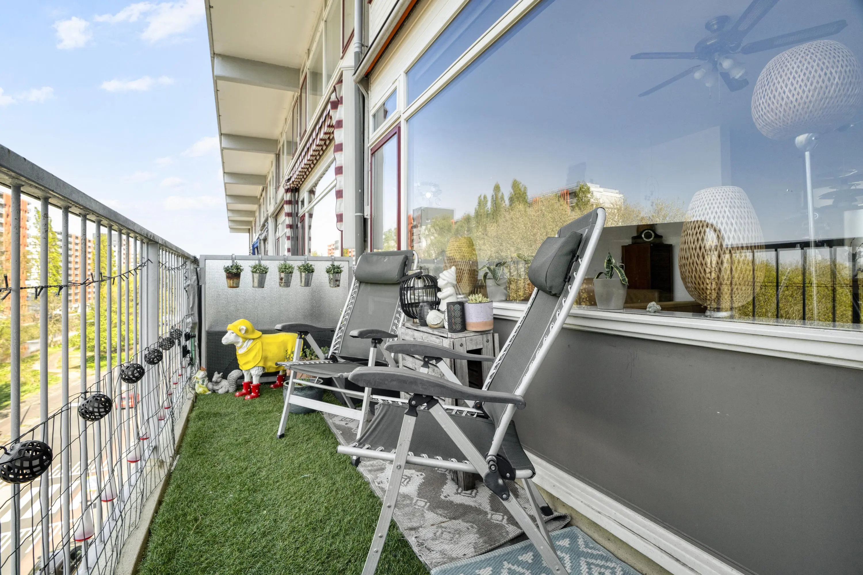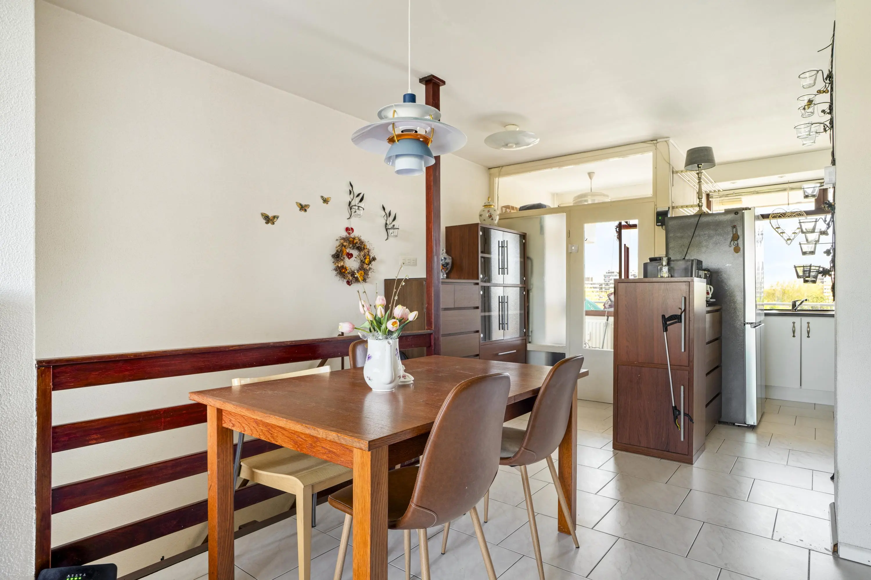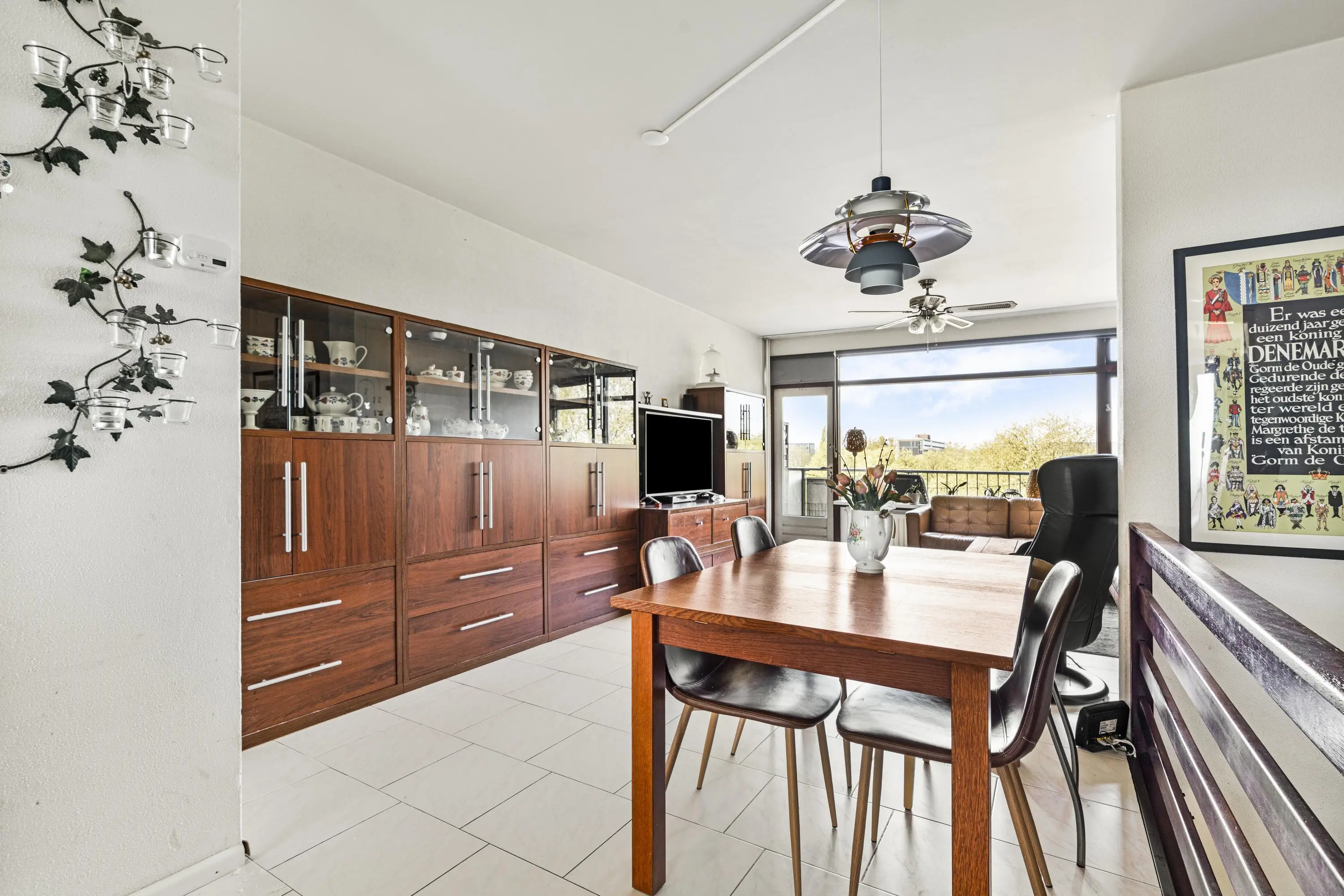 Deze zonnig gelegen woning ligt op de derde en vierde verdieping en heeft een weids uitzicht.