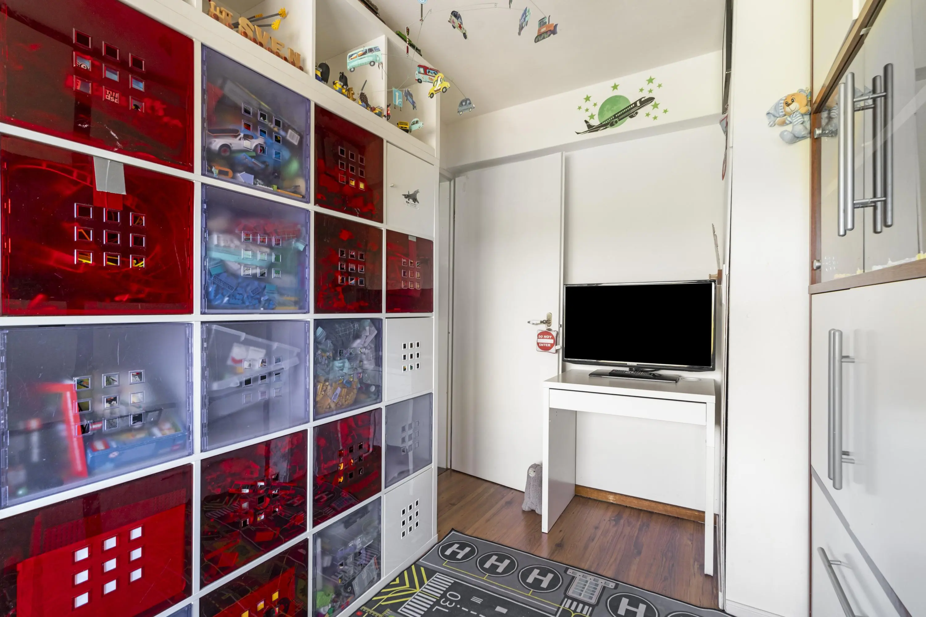 Verder op deze verdieping een middelgrote slaapkamer en een derde slaapkamer, eventueel zijn deze kamers samen te voegen tot een grote slaapkamer.