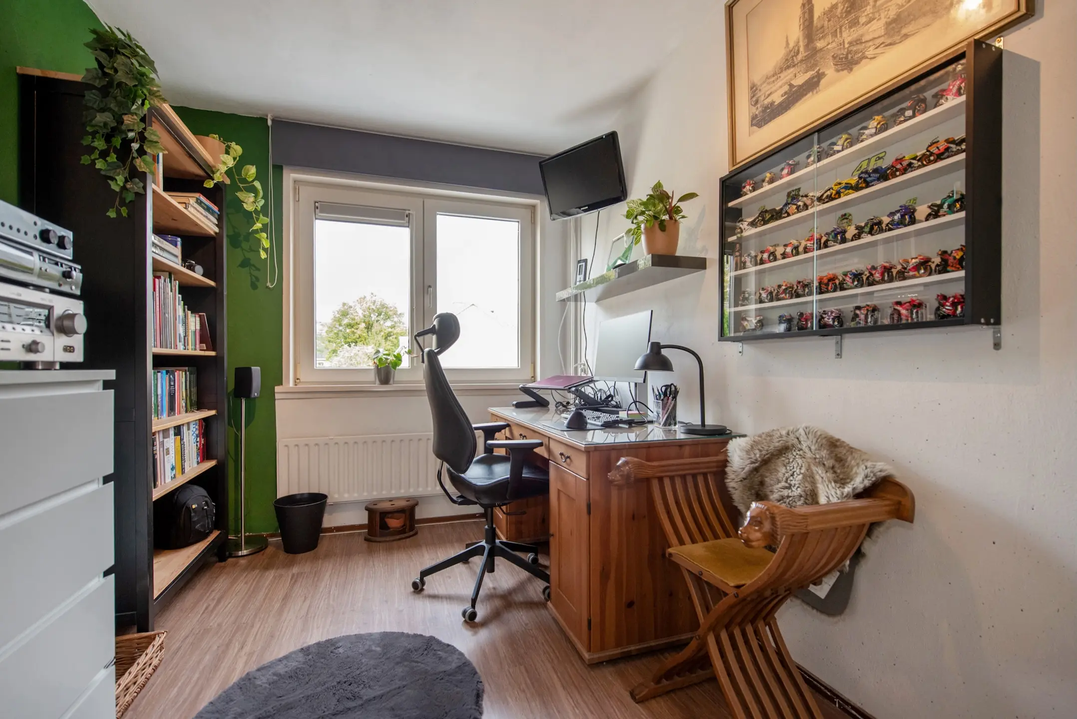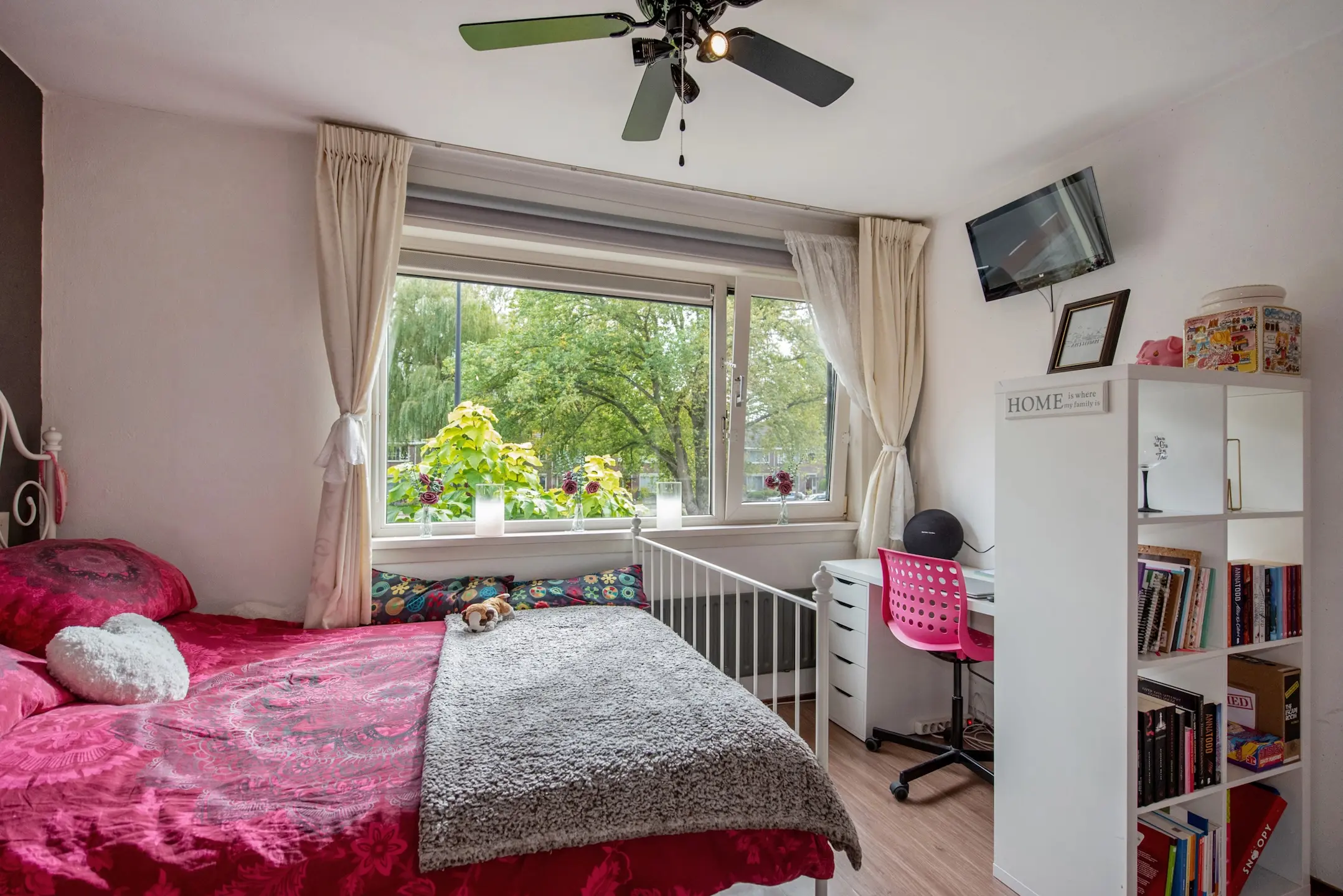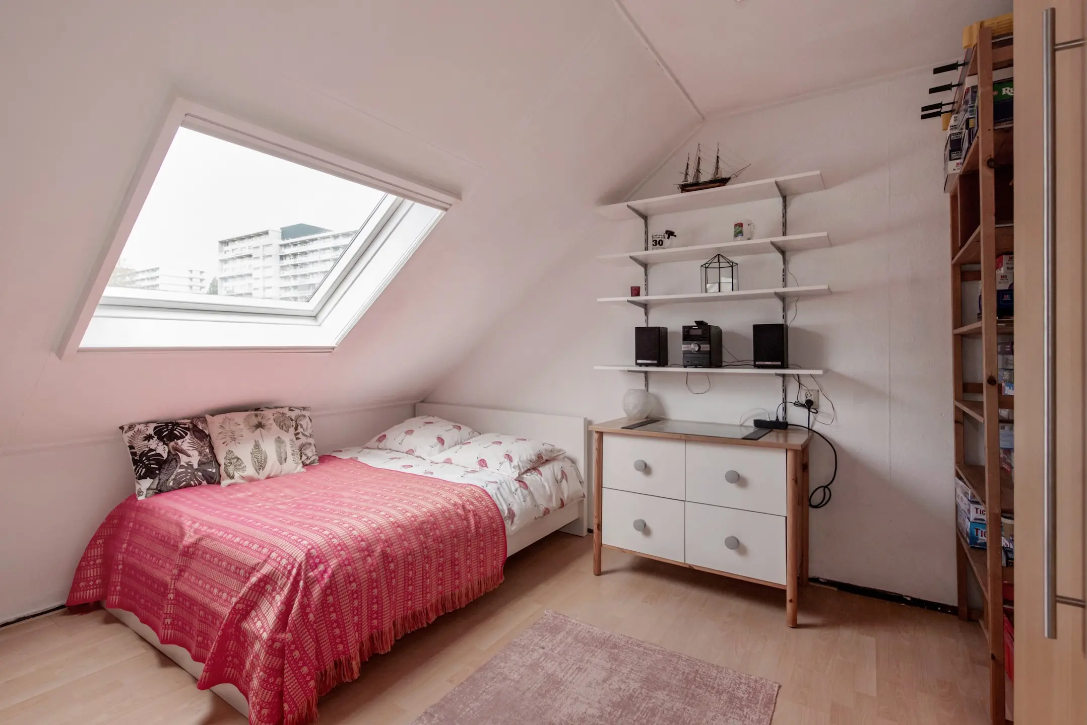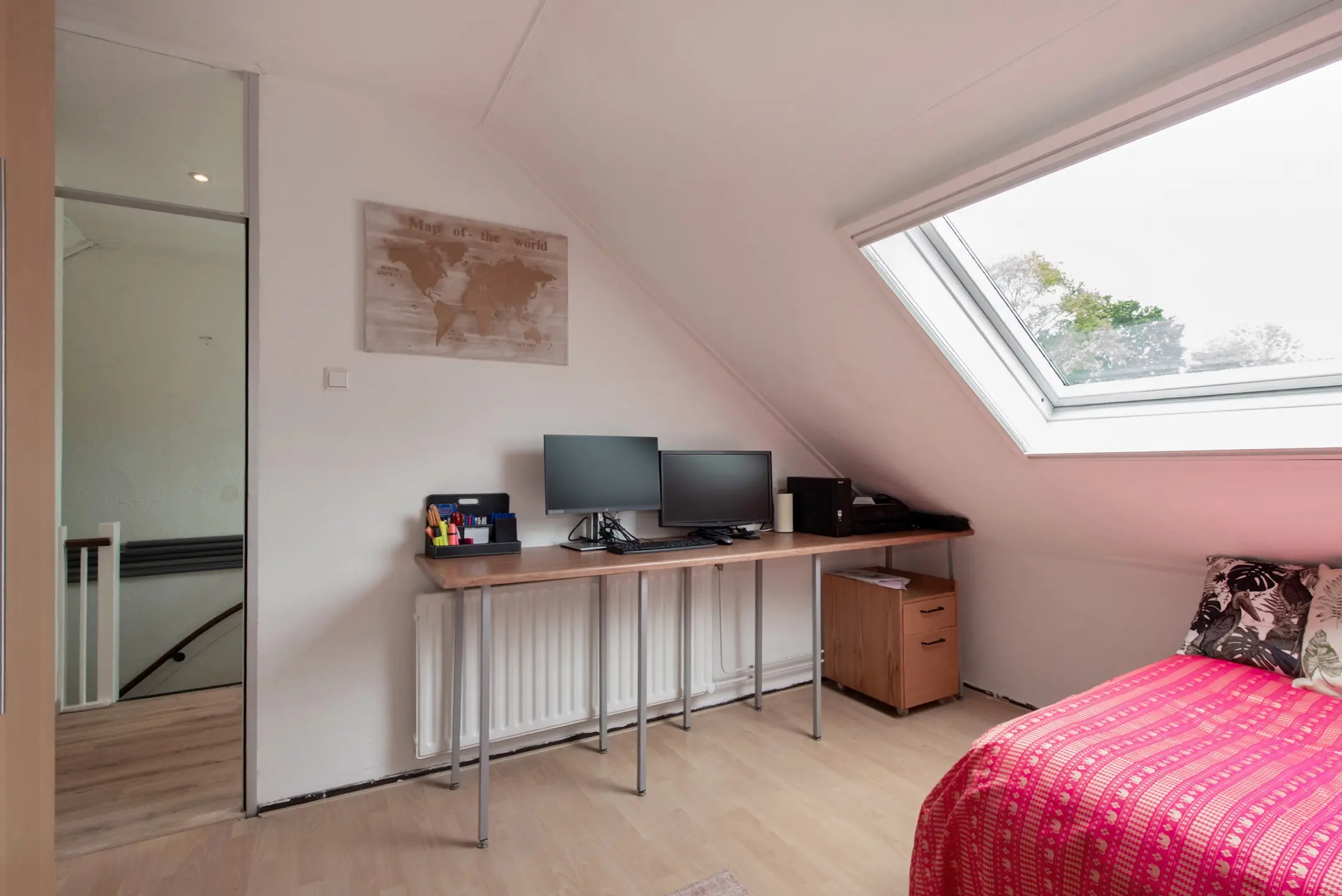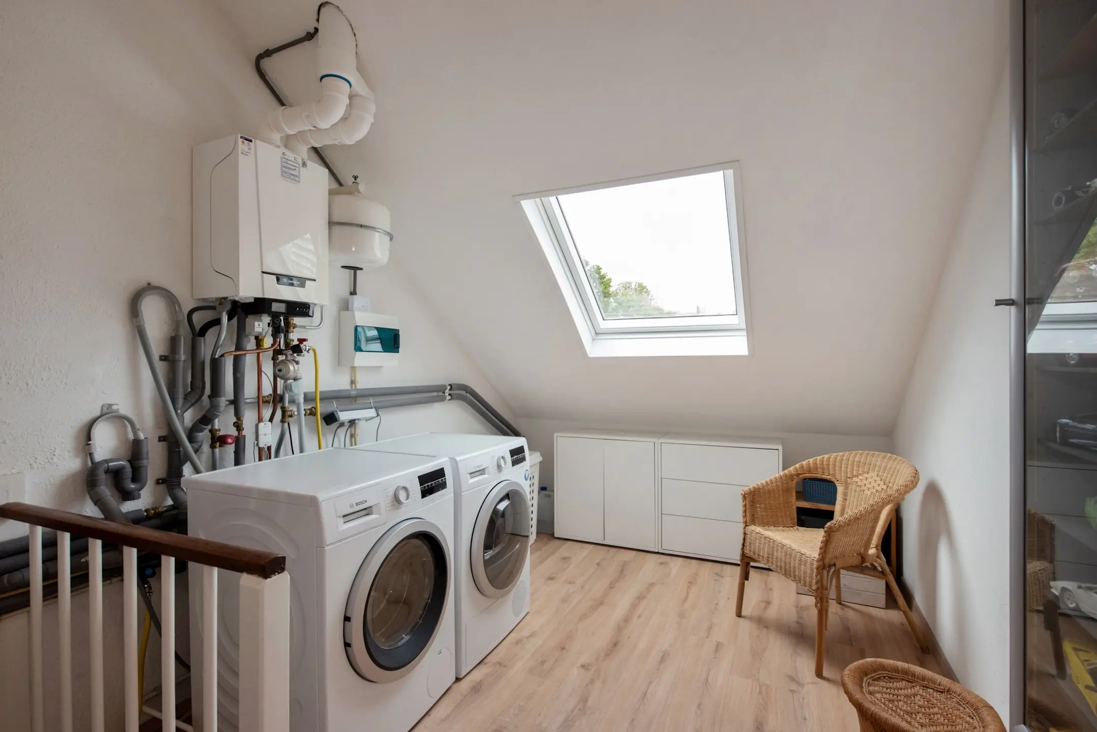 Tweede verdieping: royale multifunctionele ruimte met een vernieuwd kantelraam, opstelplaats van de wasmachine, wasdroger, cv-combi ketel (Remeha 2019) en de omvormer van de zonnepanelen. Ruime slaapkamer eveneens voorzien van een dakraam alsmede een separate bergkamer.
